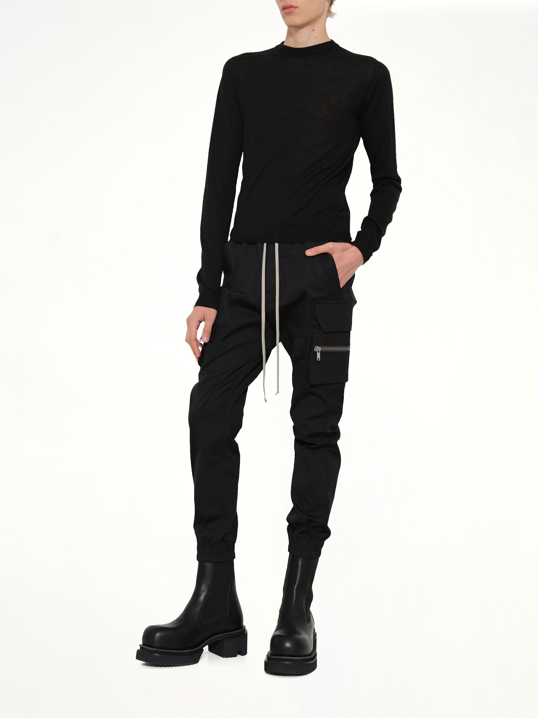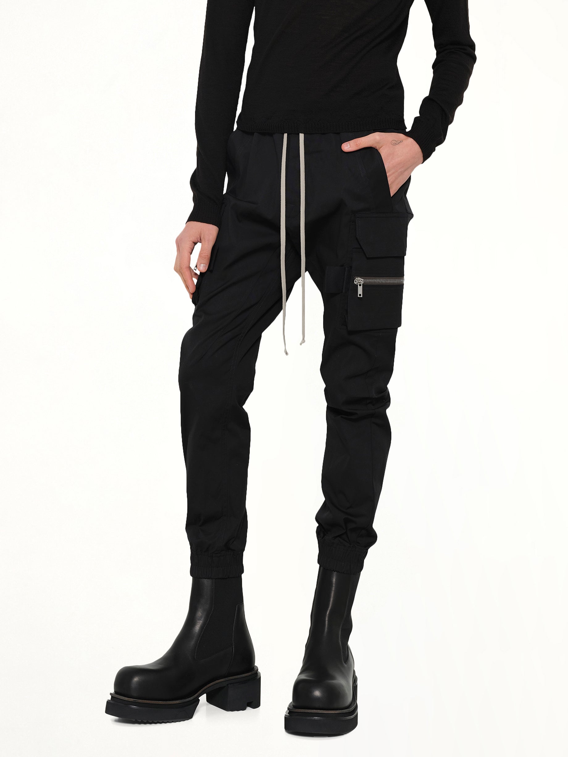 Rick Owens's Mastodon Cargo in Black is a bold and avant-garde piece that embodies the designer's signature aesthetic. This cargo pant combines functionality with a distinctive, edgy style.