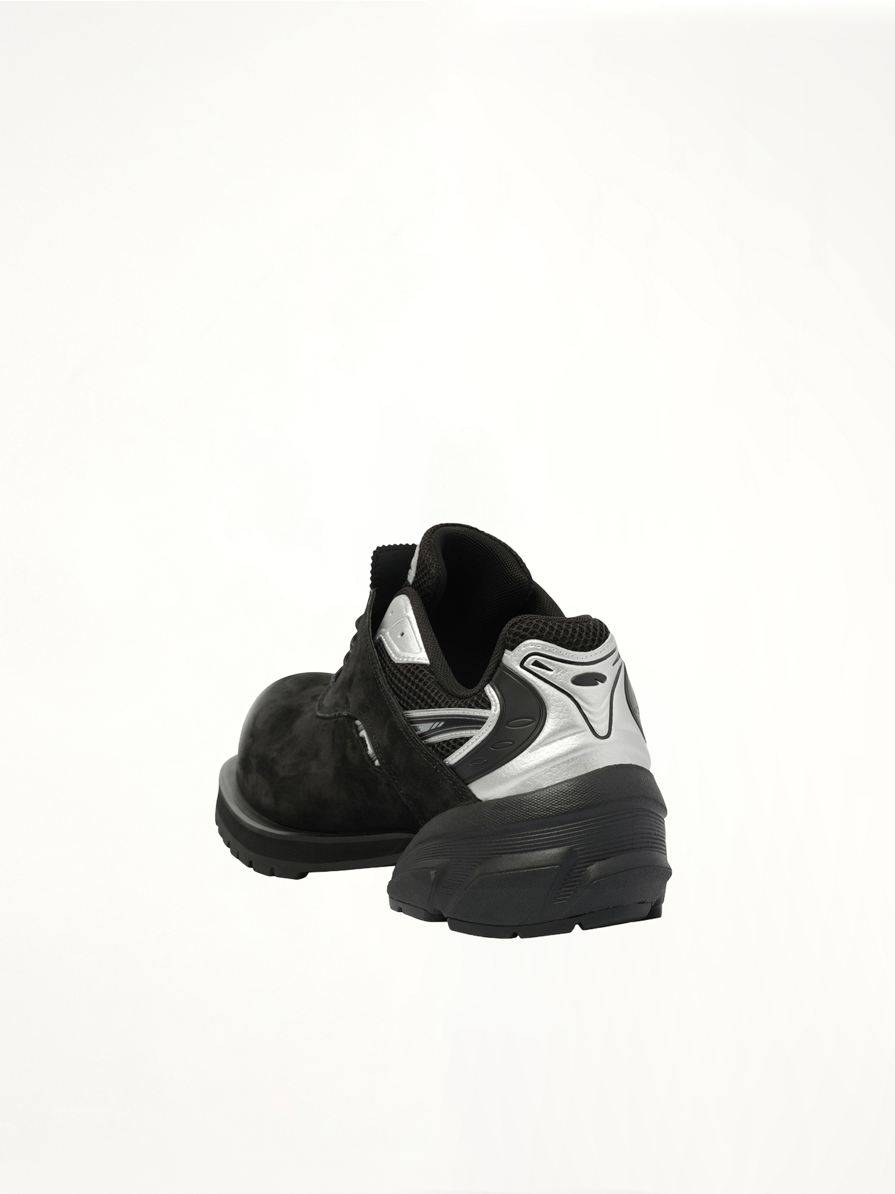 As an expert in hybrid derbies, we offer our Starting Bigger model in a sleek black, white, and silver design. Our shoe combines the durability of a derby with the comfort of a hybrid, providing a durable and comfortable option for all-day wear.