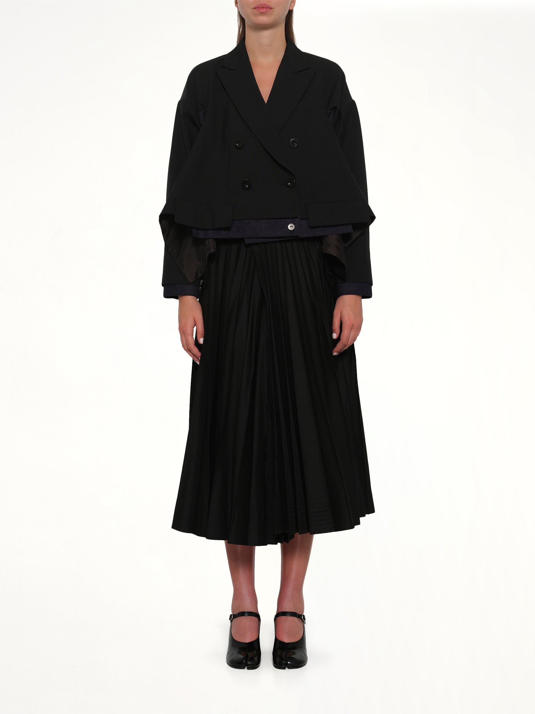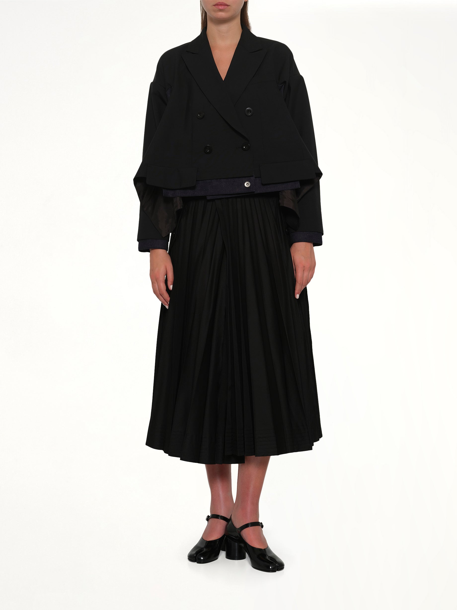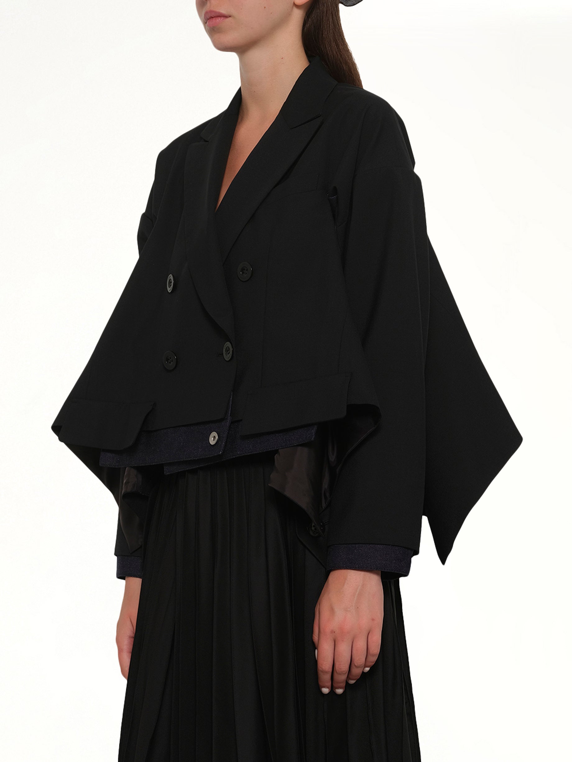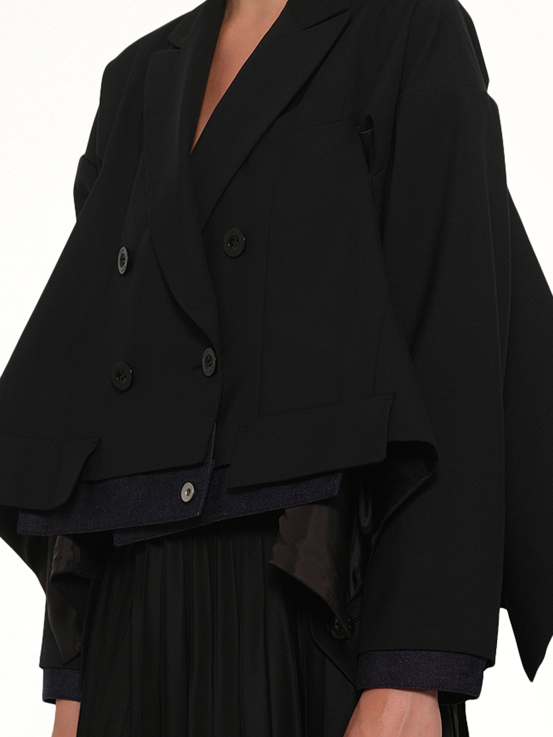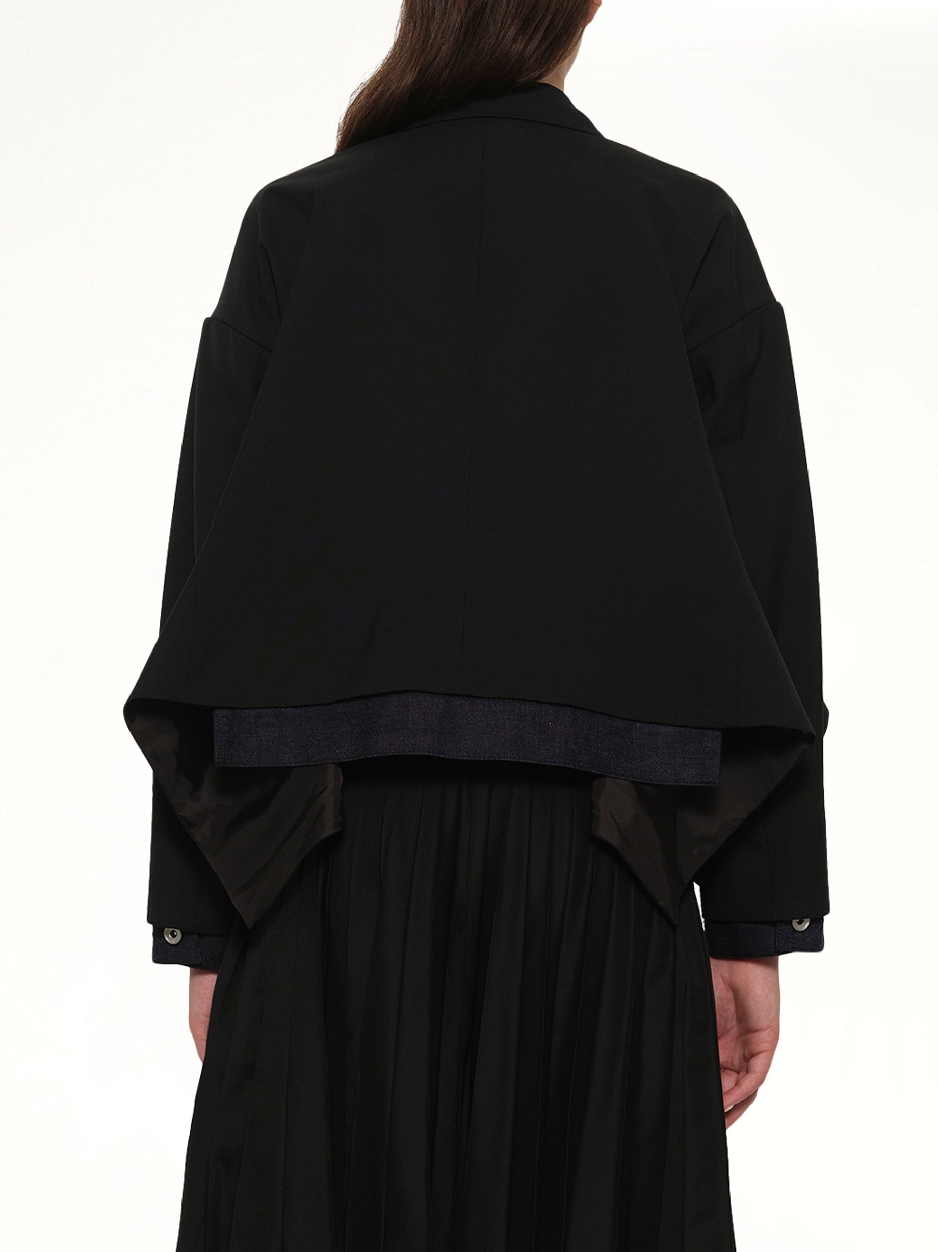 Sacai's Suiting x Denim Jacket in Black/Indigo is a unique fusion of classic tailoring and casual style. This jacket offers a modern twist on traditional outerwear, perfect for versatile styling.