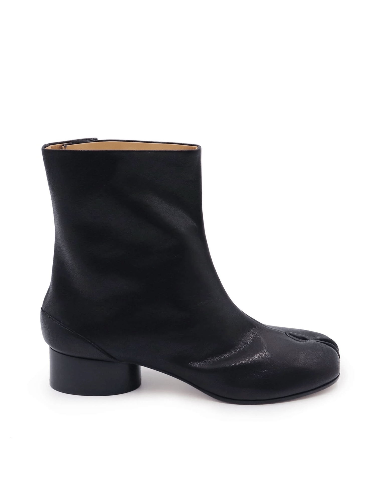 Step out in style with these Tabi Ankle Boots in black. Crafted from soft Nappa leather, these ankle boots feature a unique 3cm cylindrical heel and the iconic Tabi split-toe shape. Inspired by the traditional Japanese sock from the 15th century, these boots capture the avant-garde and rebellious spirit of the Maison Margiela.