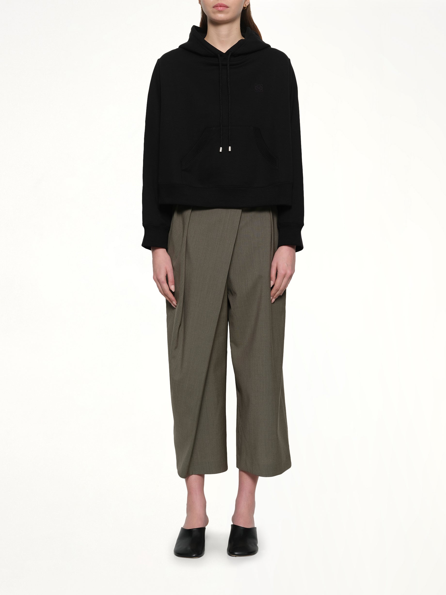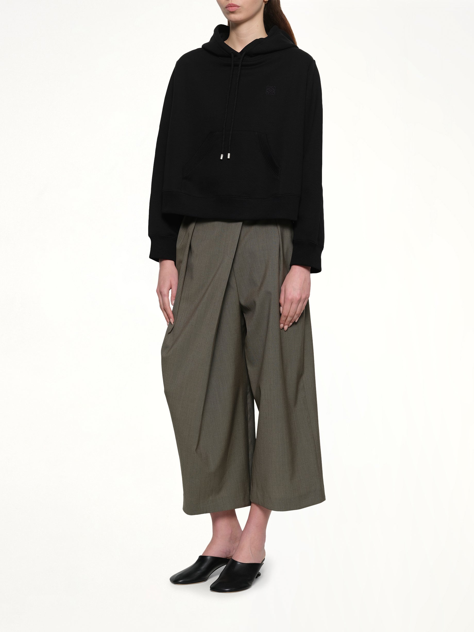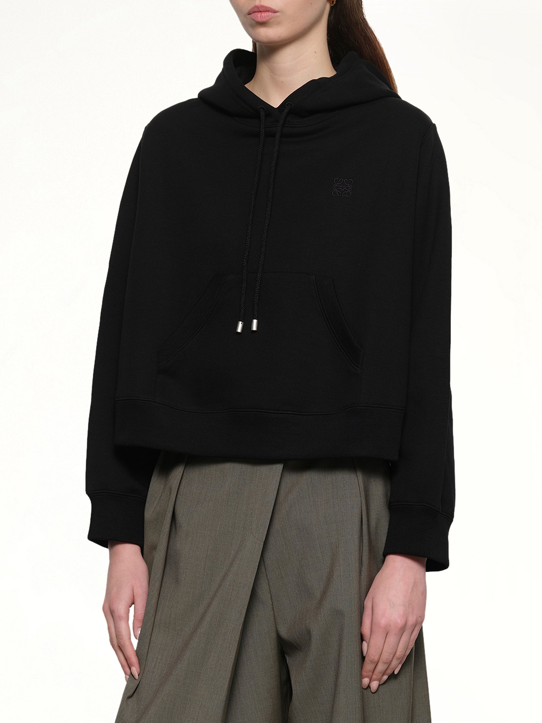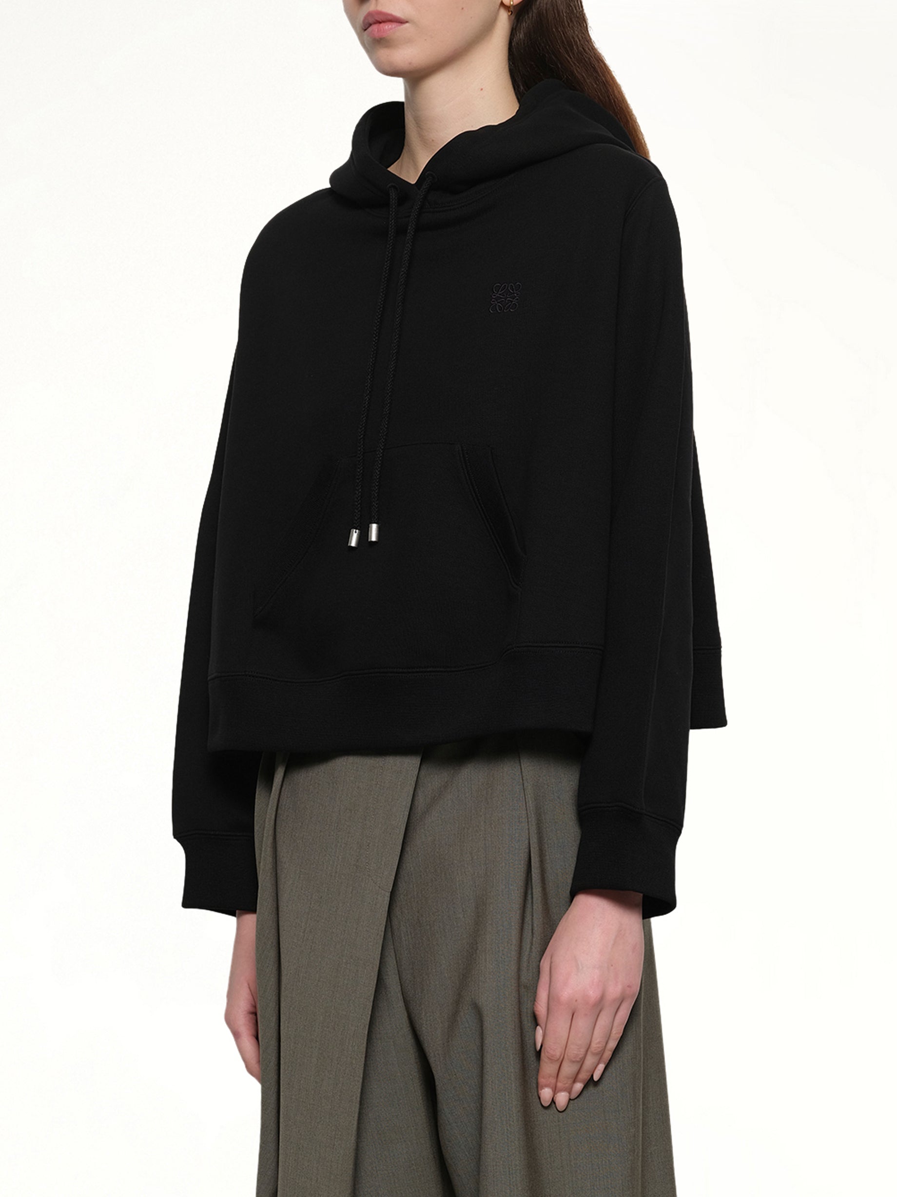 Loewe's Trapeze Hoodie in Black is a stylish and versatile piece that combines comfort with a modern silhouette. Perfect for casual outings or layering, this hoodie offers a unique twist on a classic design.