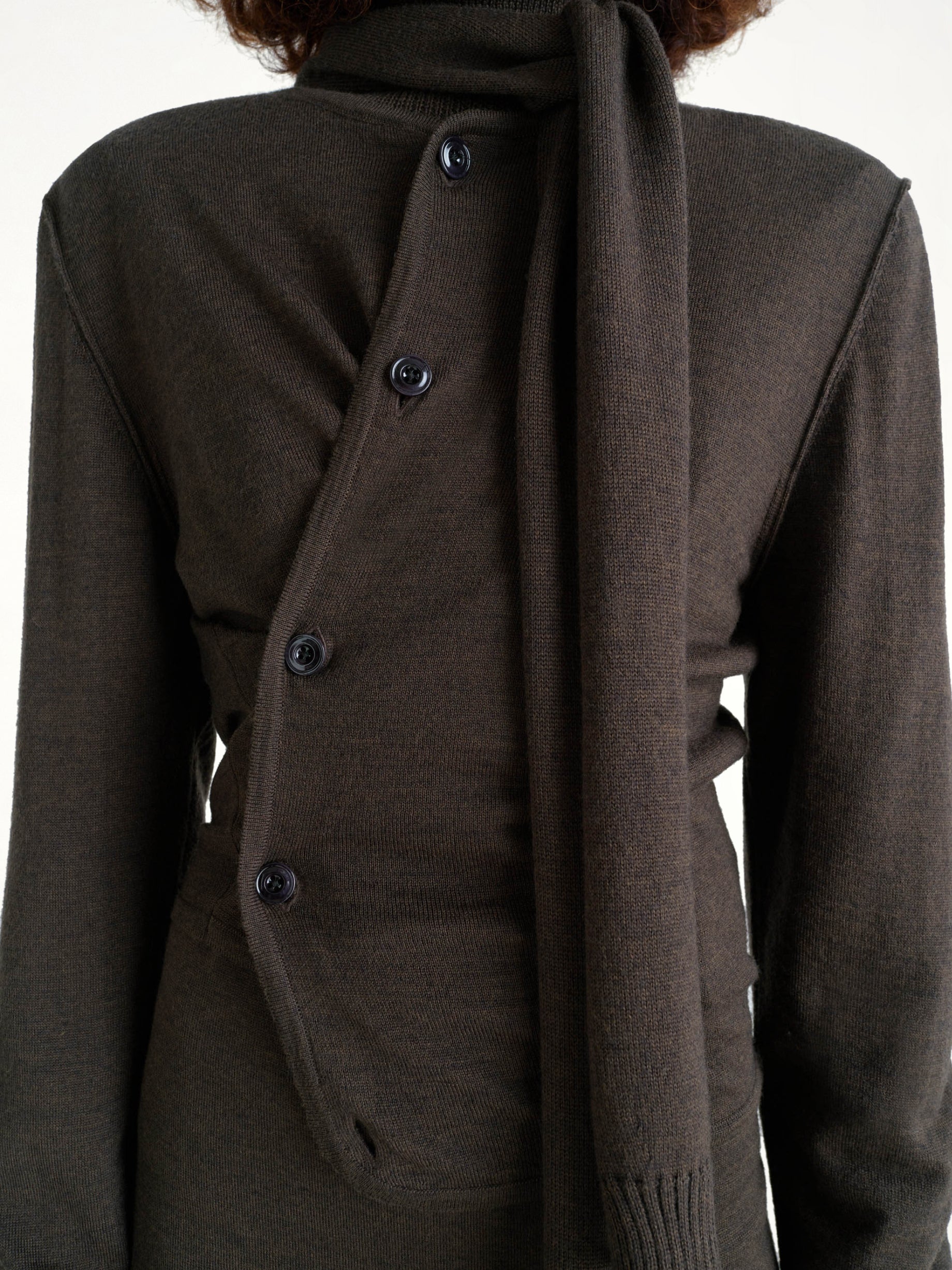 Twisted Cardigan With Scarf in Dark Cacao