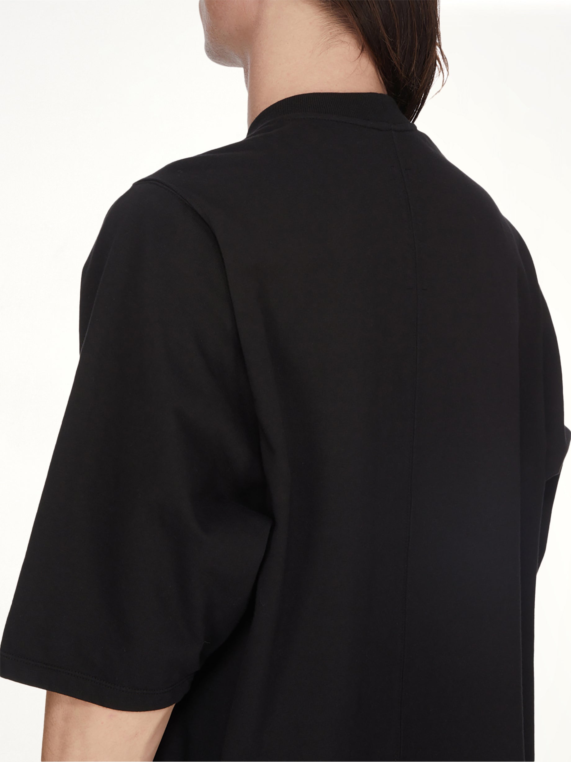 Rick Owens DRKSHDW's Urinal Jumbo SS T-Shirt in Black/Milk is a bold statement piece that combines avant-garde design with everyday wearability. This oversized t-shirt features a striking contrast of black and milk hues, making it a standout addition to any wardrobe.