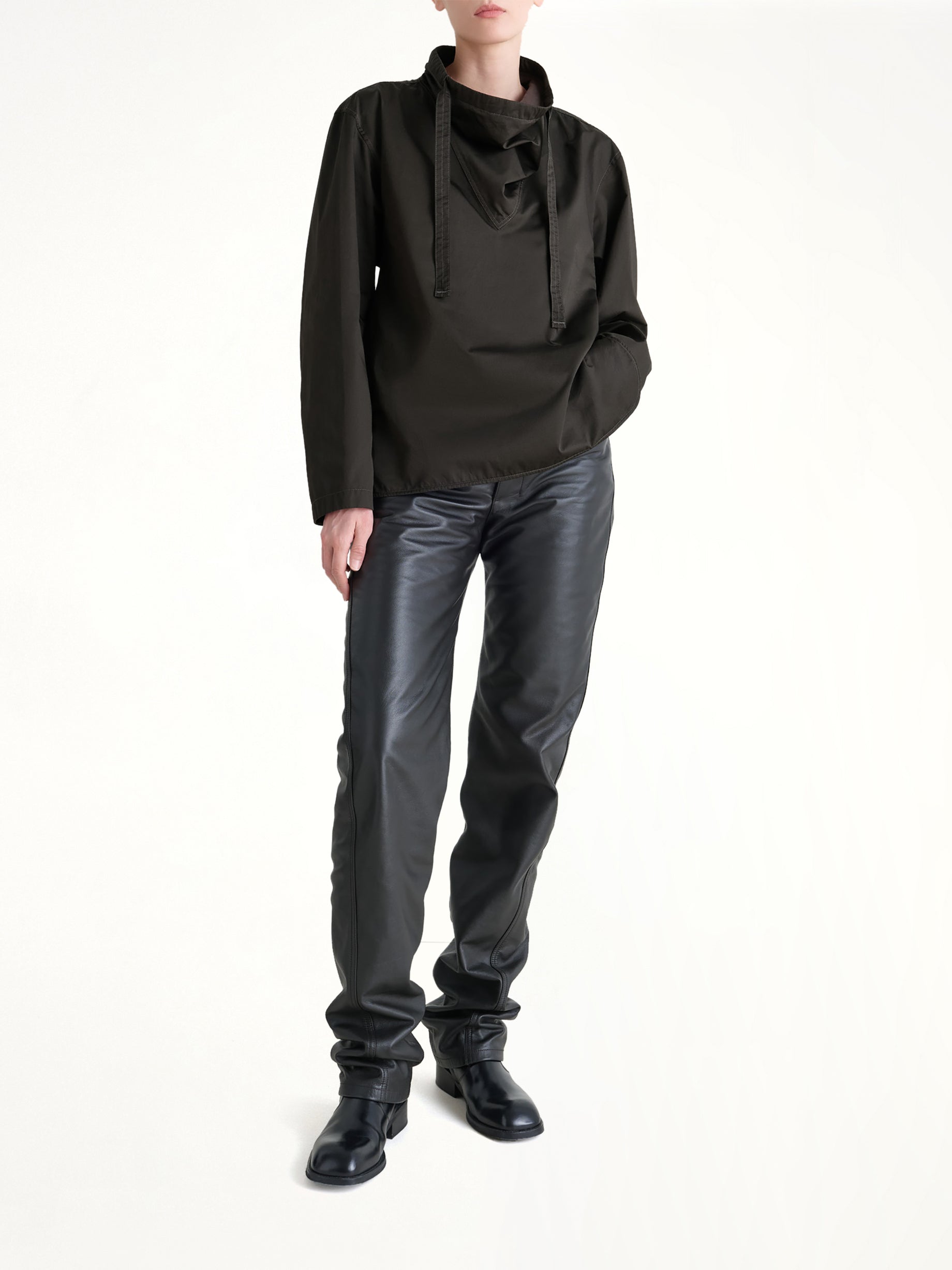 Lemaire's Vareuse Top in Dark Espresso is a sophisticated and versatile piece that effortlessly elevates any wardrobe. Its relaxed silhouette and rich color make it a timeless addition to your collection.