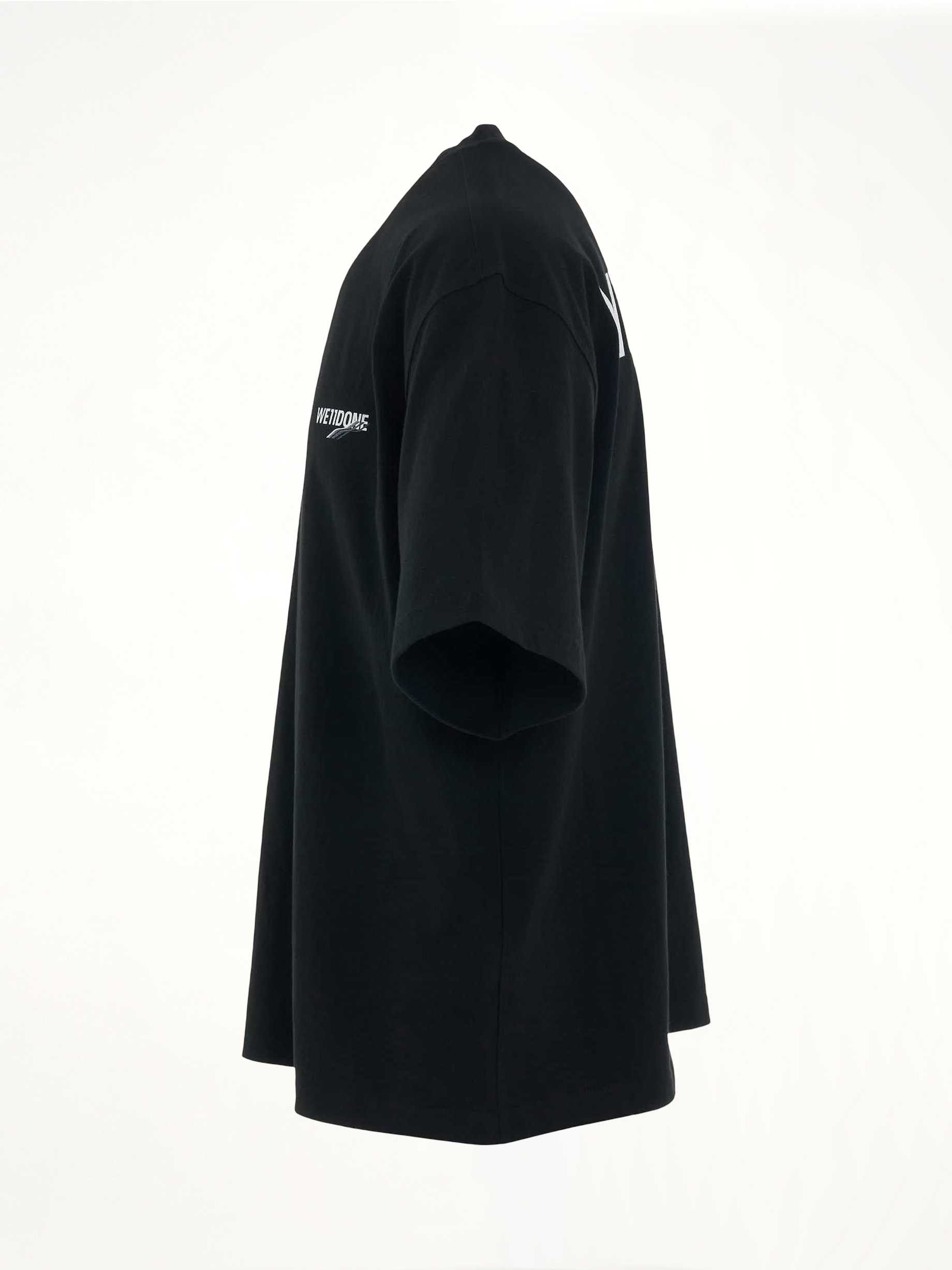 We11done's Wave Logo Short Sleeve T-Shirt in Black is a stylish and contemporary piece that effortlessly combines comfort with a modern aesthetic. This t-shirt features a distinctive wave logo that adds a unique touch to any casual outfit.