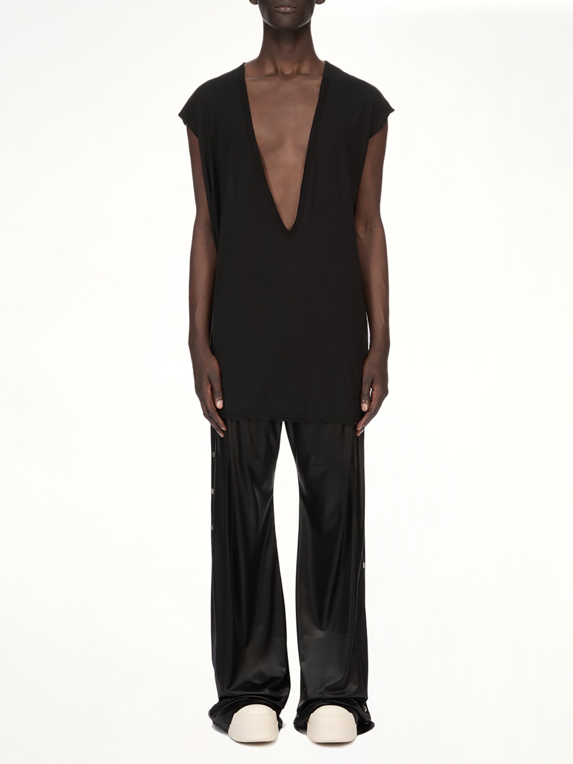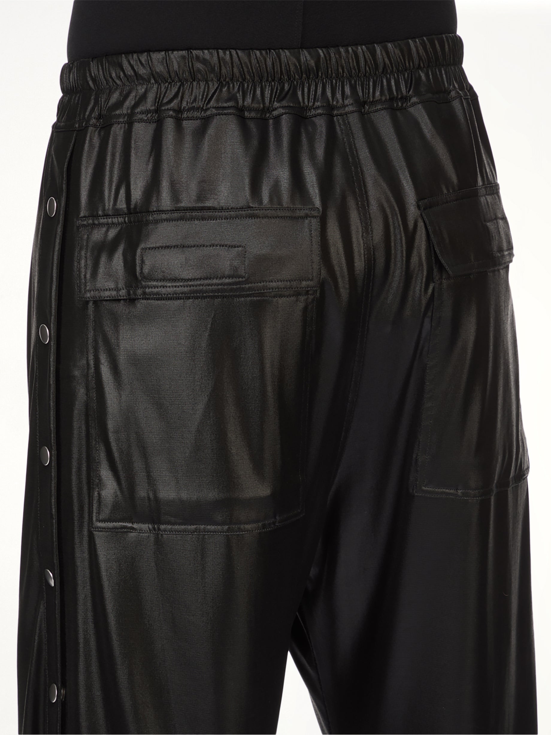 Rick Owens DRKSHDW's Wide Pusher Pants in Black is a bold statement piece that combines avant-garde design with everyday functionality. These pants feature a wide-leg silhouette, offering both comfort and a distinctive style.