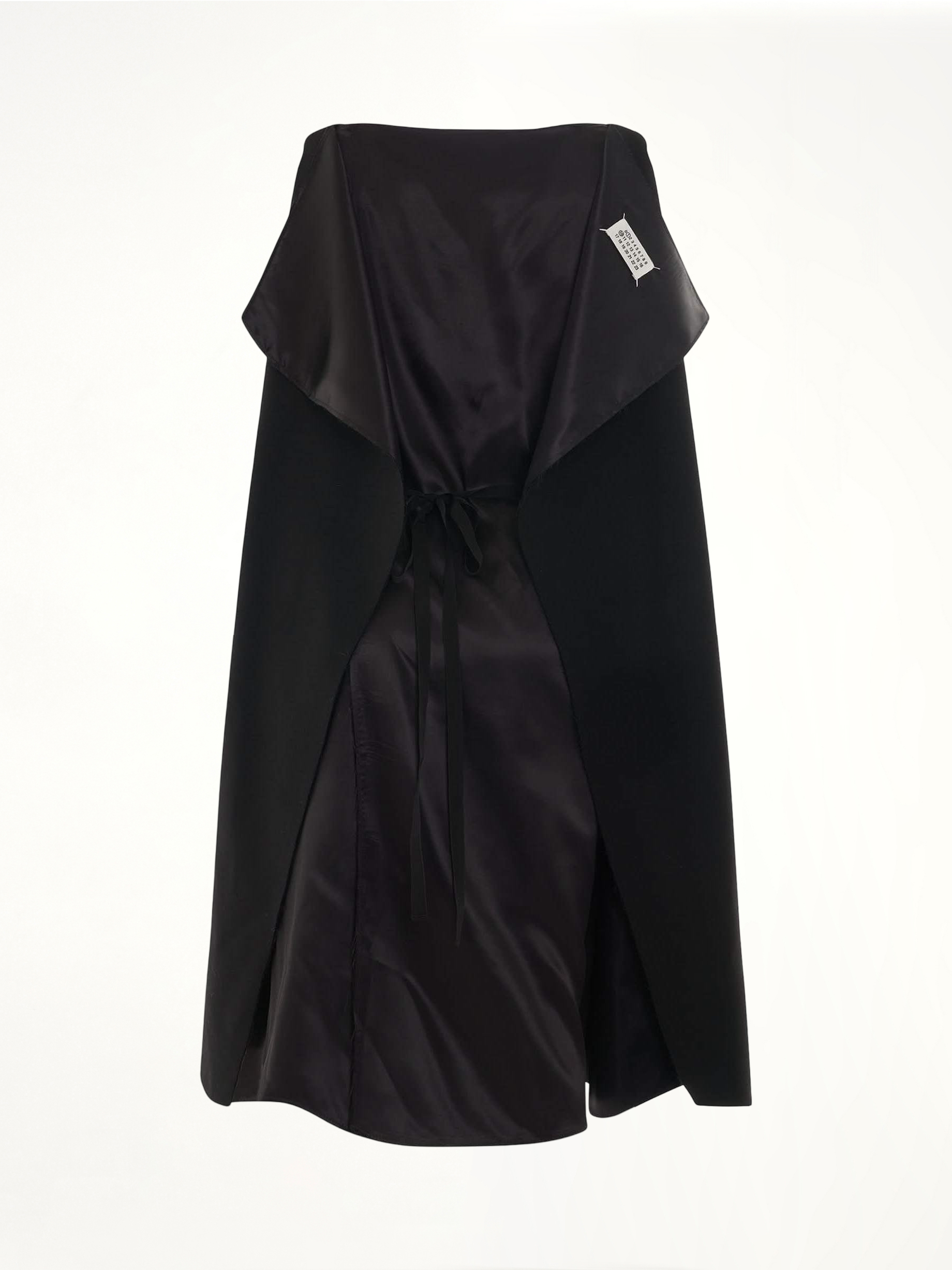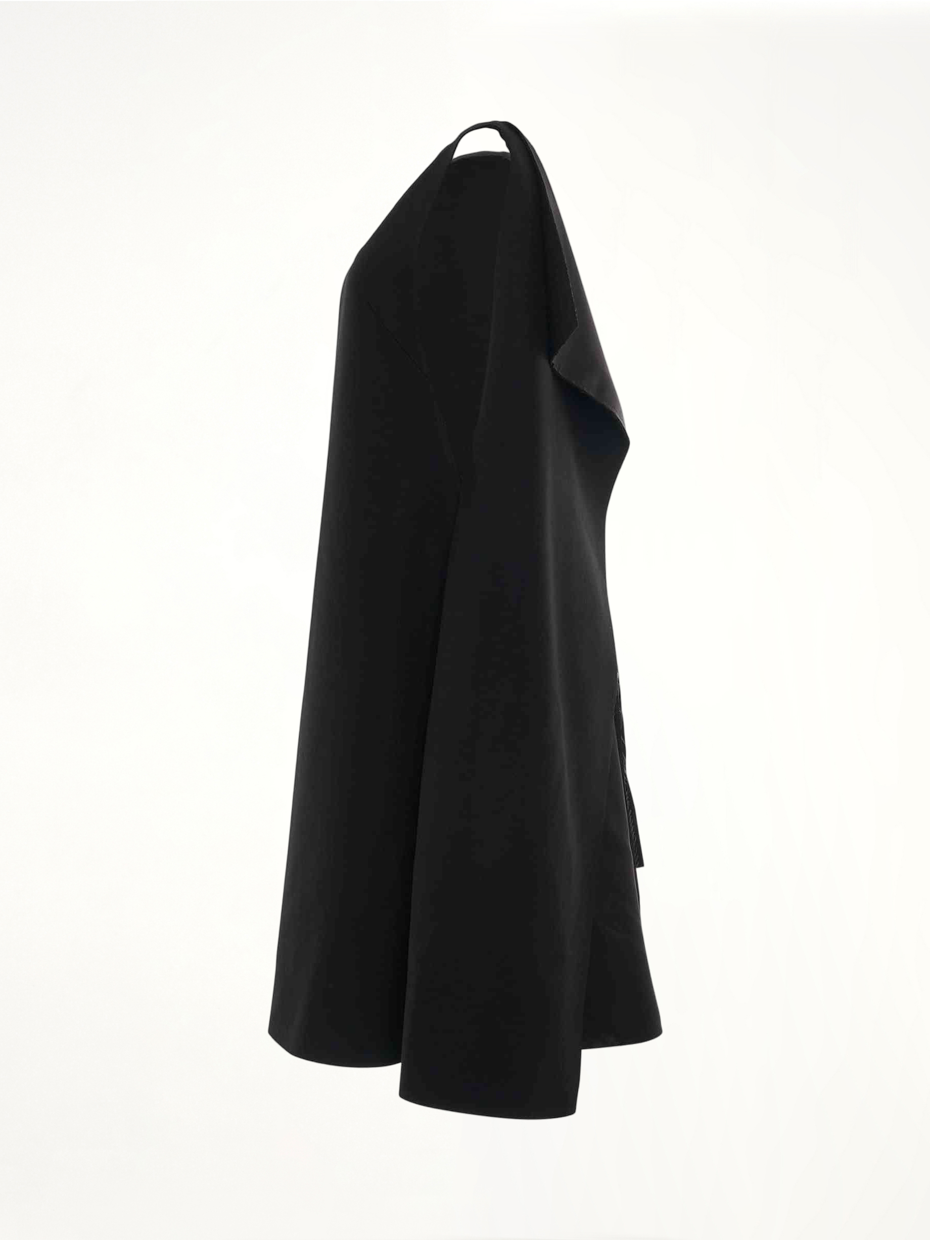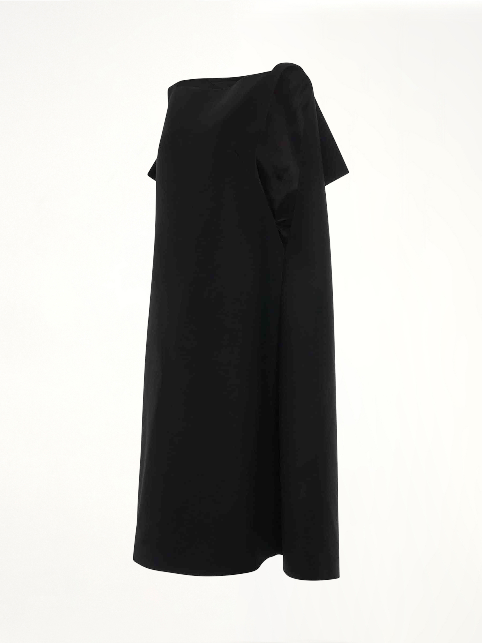 Wool sleeveless dress in black with wool blend construction, elegant A-line shape, and brand's signature four-stitch logo to the rear