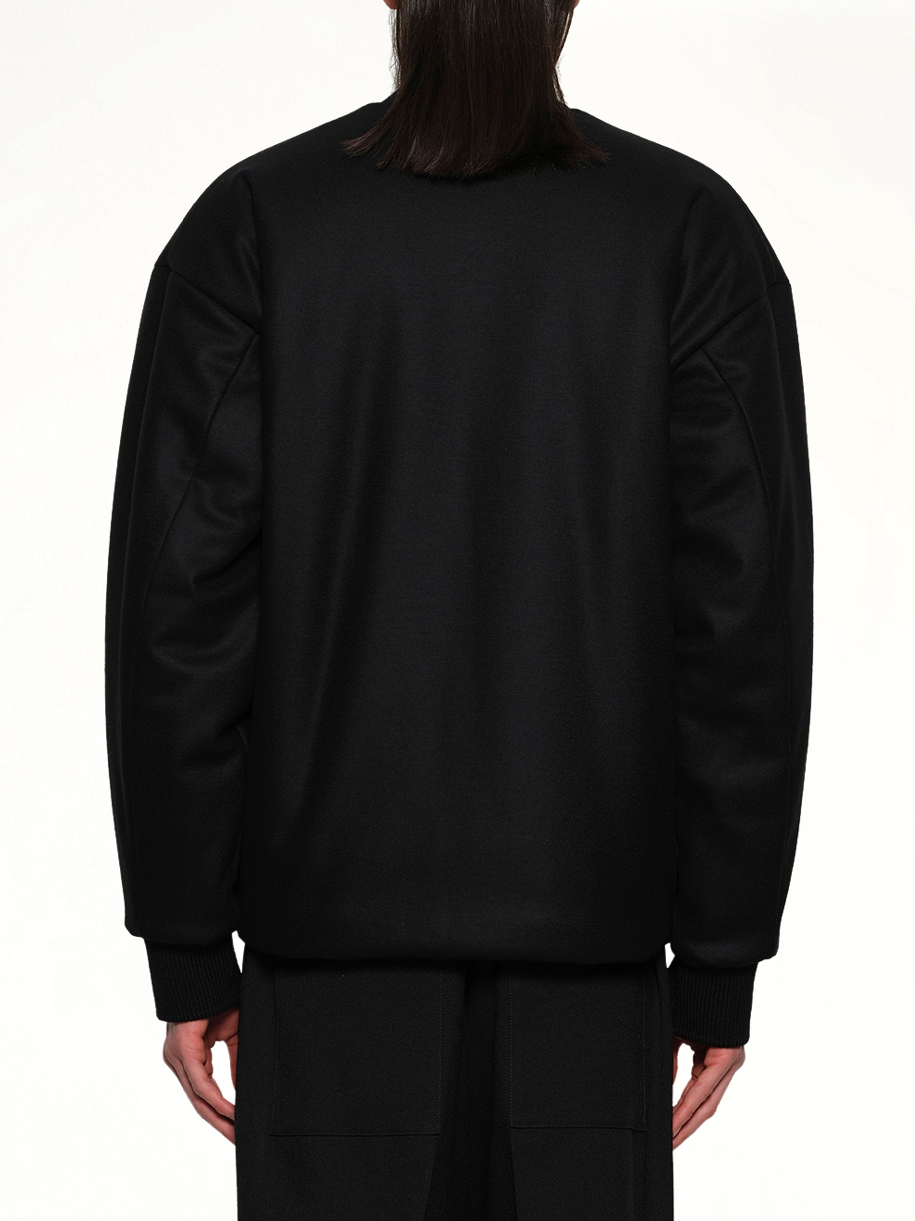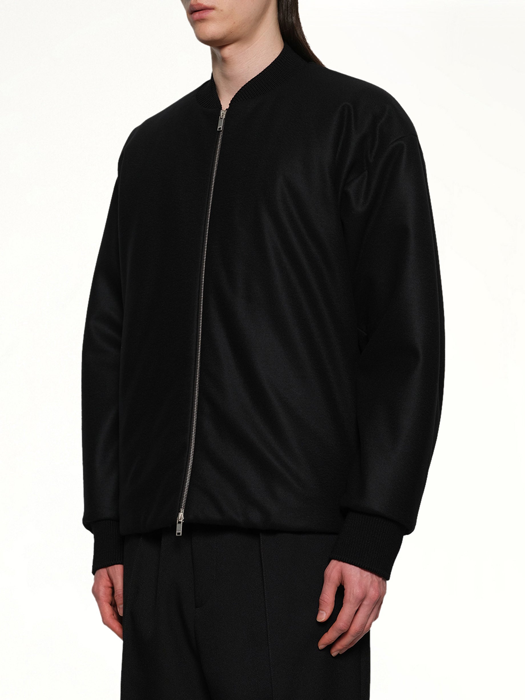 Jil Sander's Zip Up Padded Bomber Jacket in Black is a sleek and versatile outerwear piece designed for both style and comfort. This jacket combines a classic bomber silhouette with modern detailing, making it a must-have for any wardrobe.