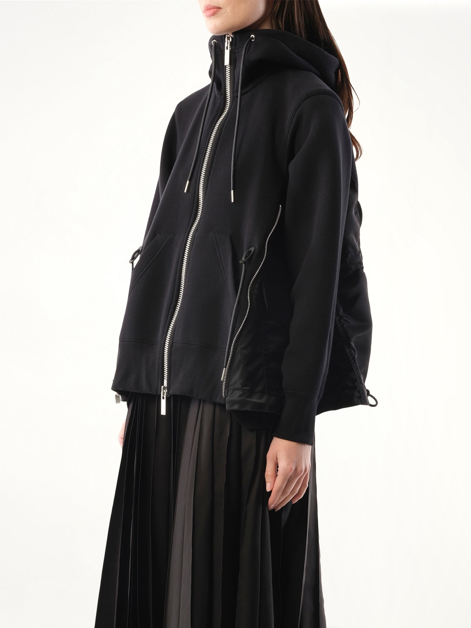 Stay warm and stylish with our Sponge Sweat x Nylon Twill Hoodie in Black. Combining the softness of sponge sweat fabric with the durability of nylon twill, this versatile hoodie is perfect for everyday wear.