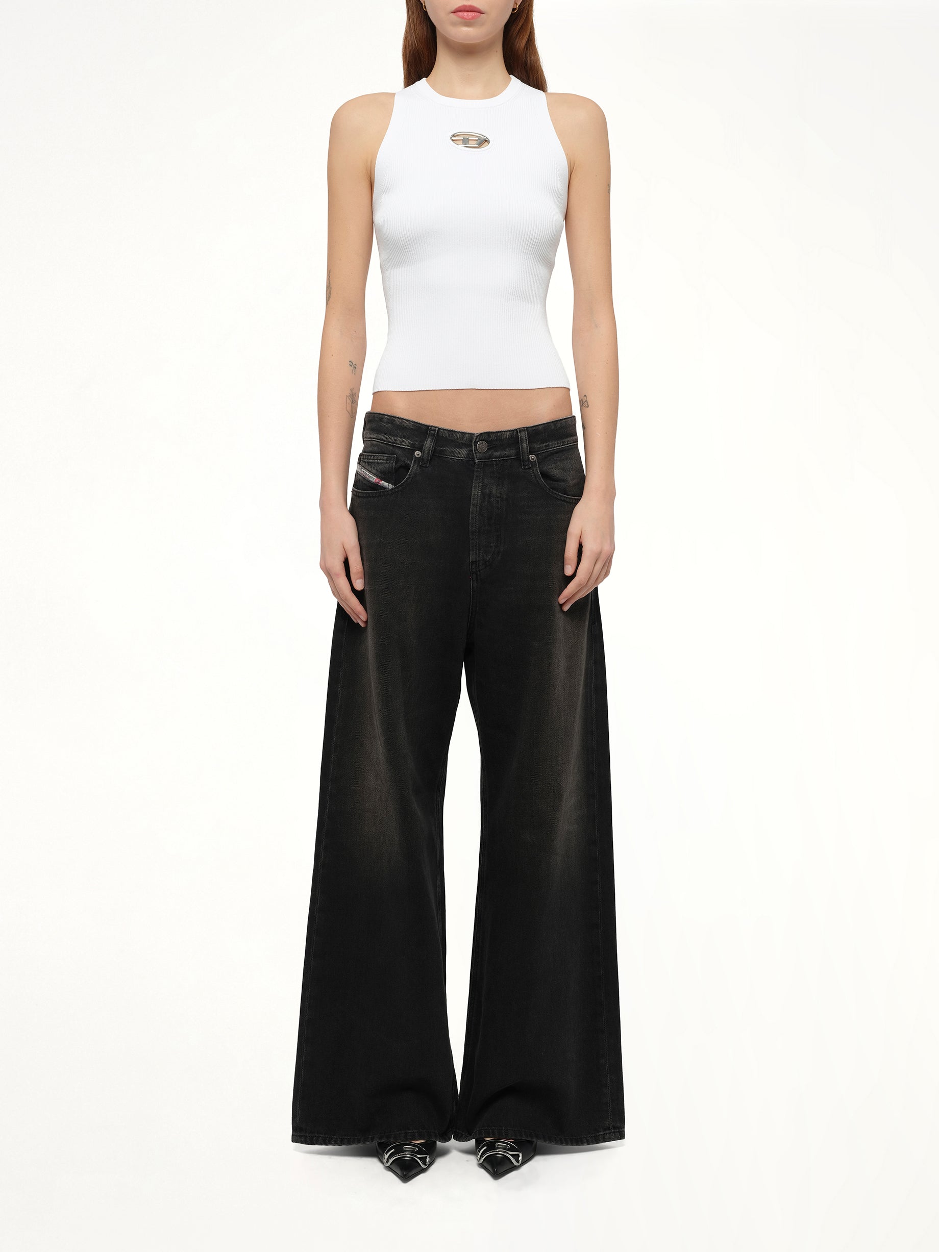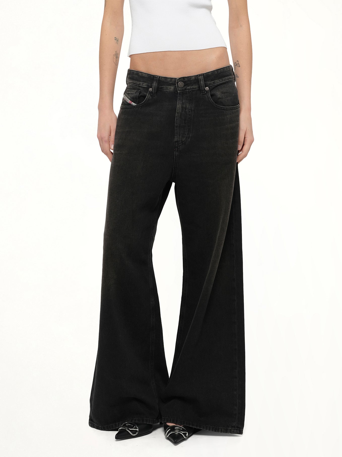 Diesel's 1996 D-SIRE Wide Jeans in Black/Dark Grey is a stylish and versatile addition to any wardrobe. These jeans offer a modern wide-leg fit, perfect for a contemporary look.