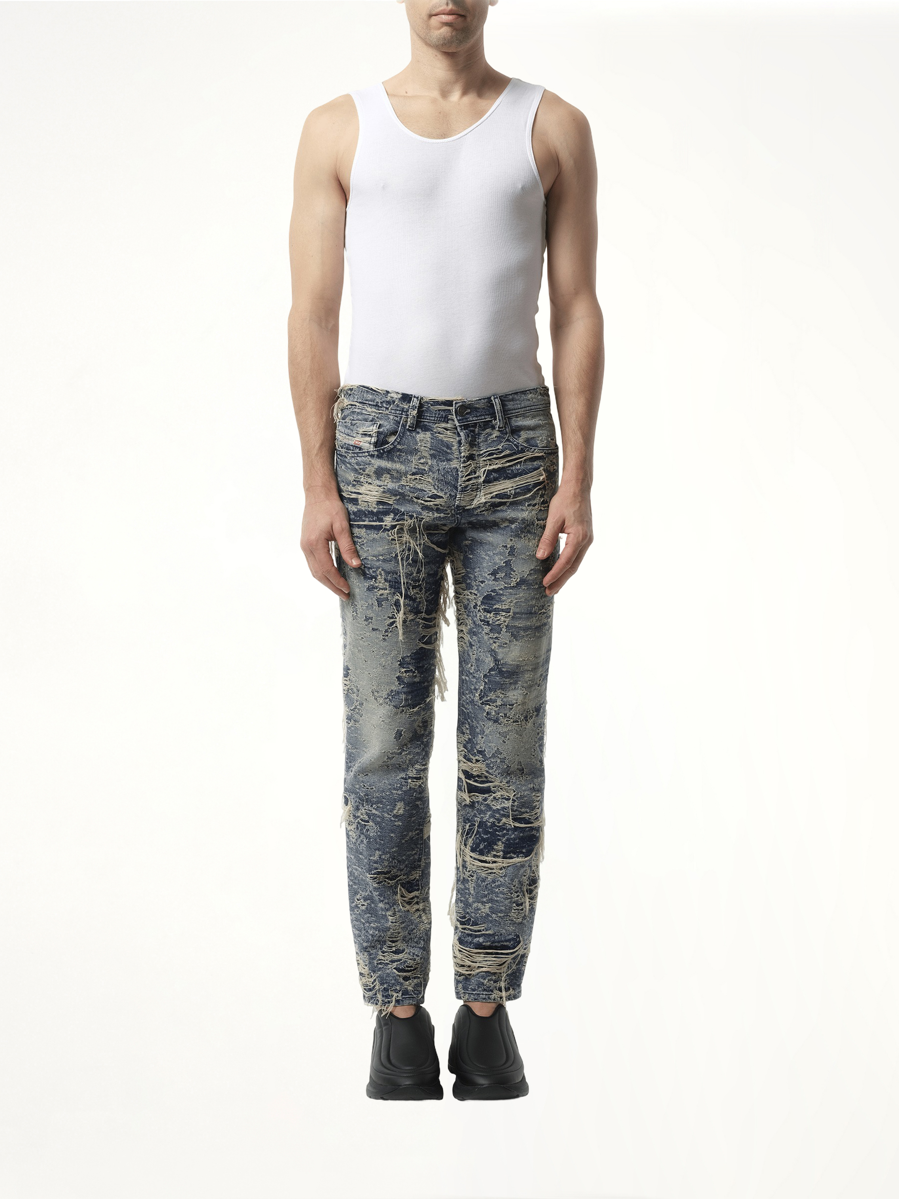 Diesel's 2023 D-Finitive Distressed Jeans in Blue offer a bold, edgy look with their distressed detailing and modern fit. The blue wash gives them a rugged, lived-in feel, perfect for adding character to any casual ensemble.