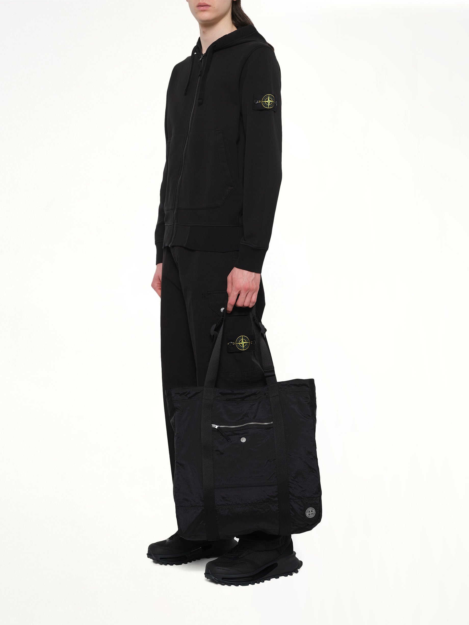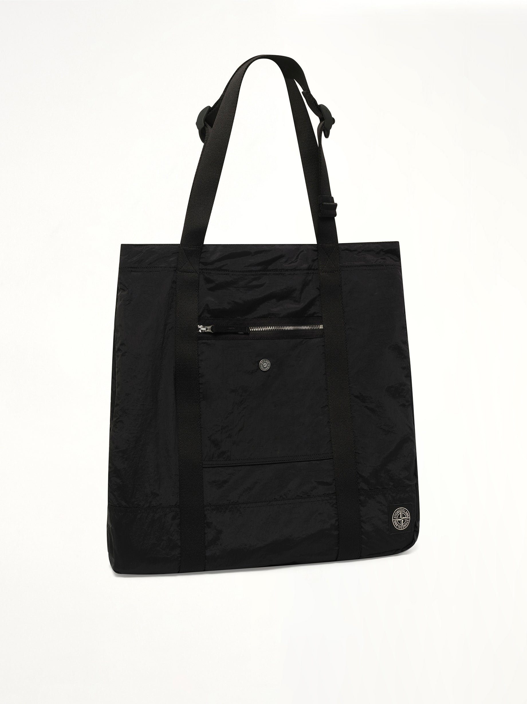 Stone Island's 920001 Coated Nylon Tote Bag in Black is a versatile and stylish accessory designed for both functionality and fashion. Its sleek design and durable construction make it an ideal choice for everyday use.