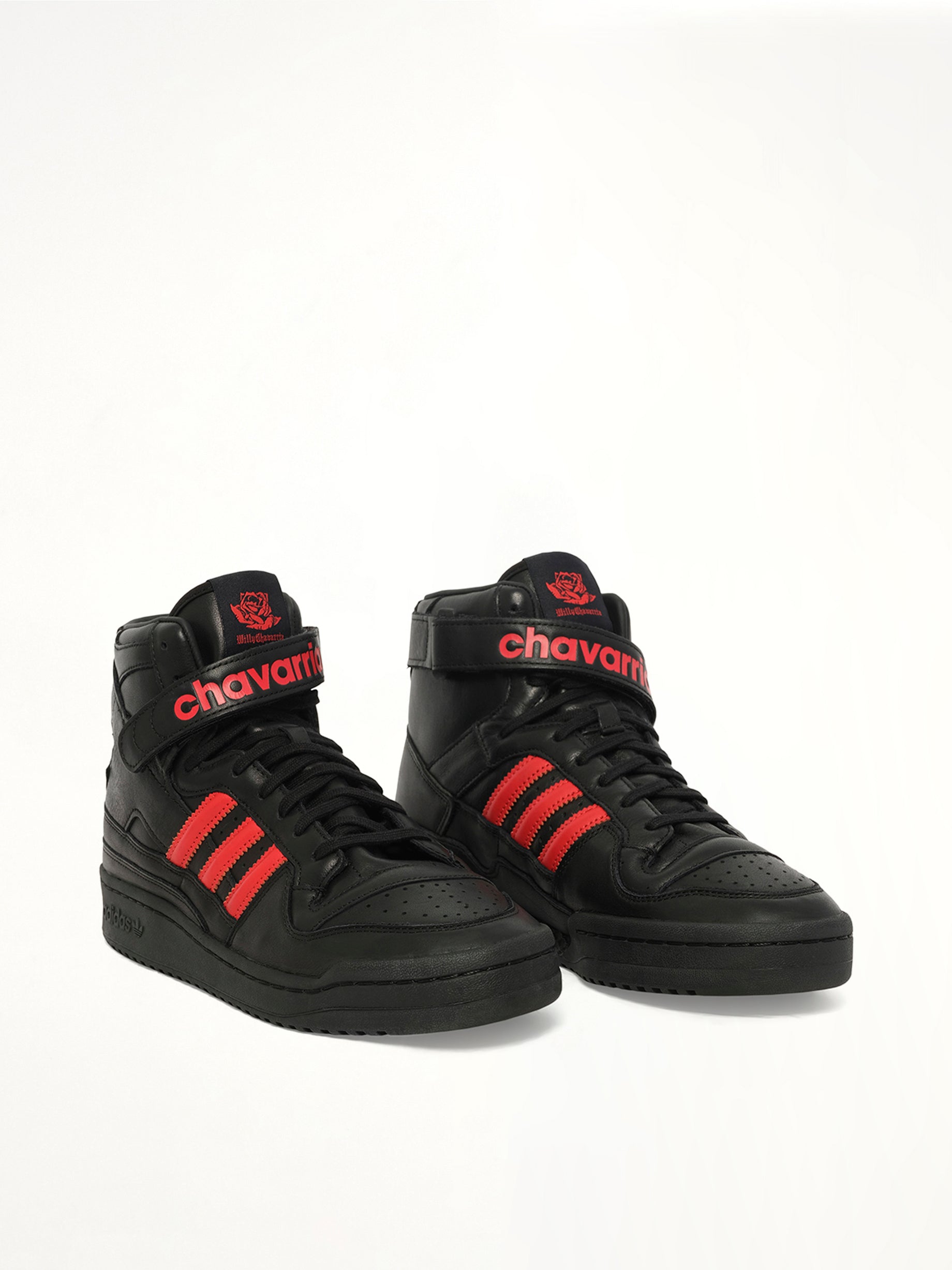 Adidas x Willy Chavarria's Adidas X Chavarria Forum High in Black/Red is a bold reinterpretation of a classic silhouette, merging streetwear aesthetics with high-fashion elements. This collaboration brings a fresh, modern twist to the iconic Forum High, making it a standout piece for any sneaker enthusiast.