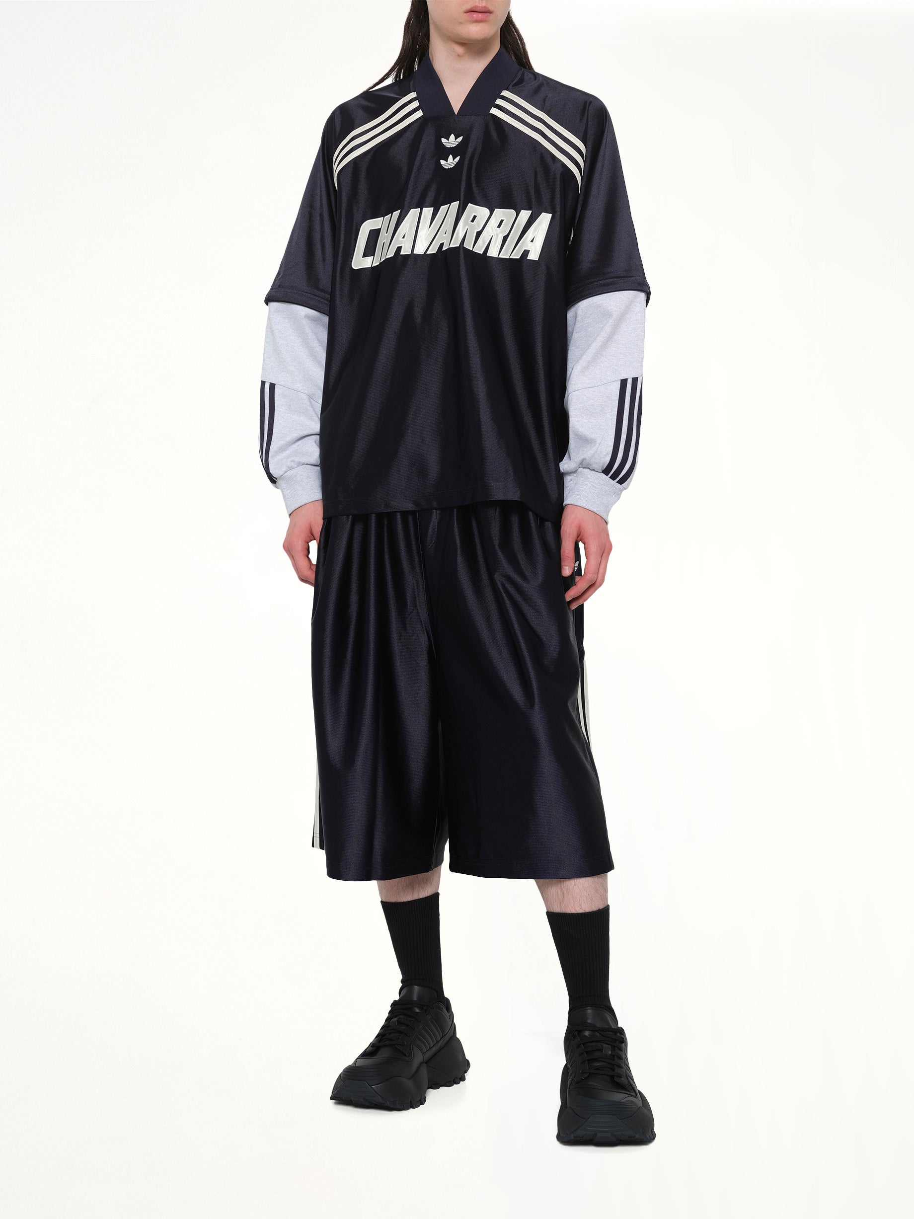 Adidas x Willy Chavarria's Adidas x WC Dazzle Shorts in Legend Ink is a stylish and versatile addition to your athletic wardrobe. These shorts combine modern design with classic comfort, perfect for both casual wear and active pursuits.