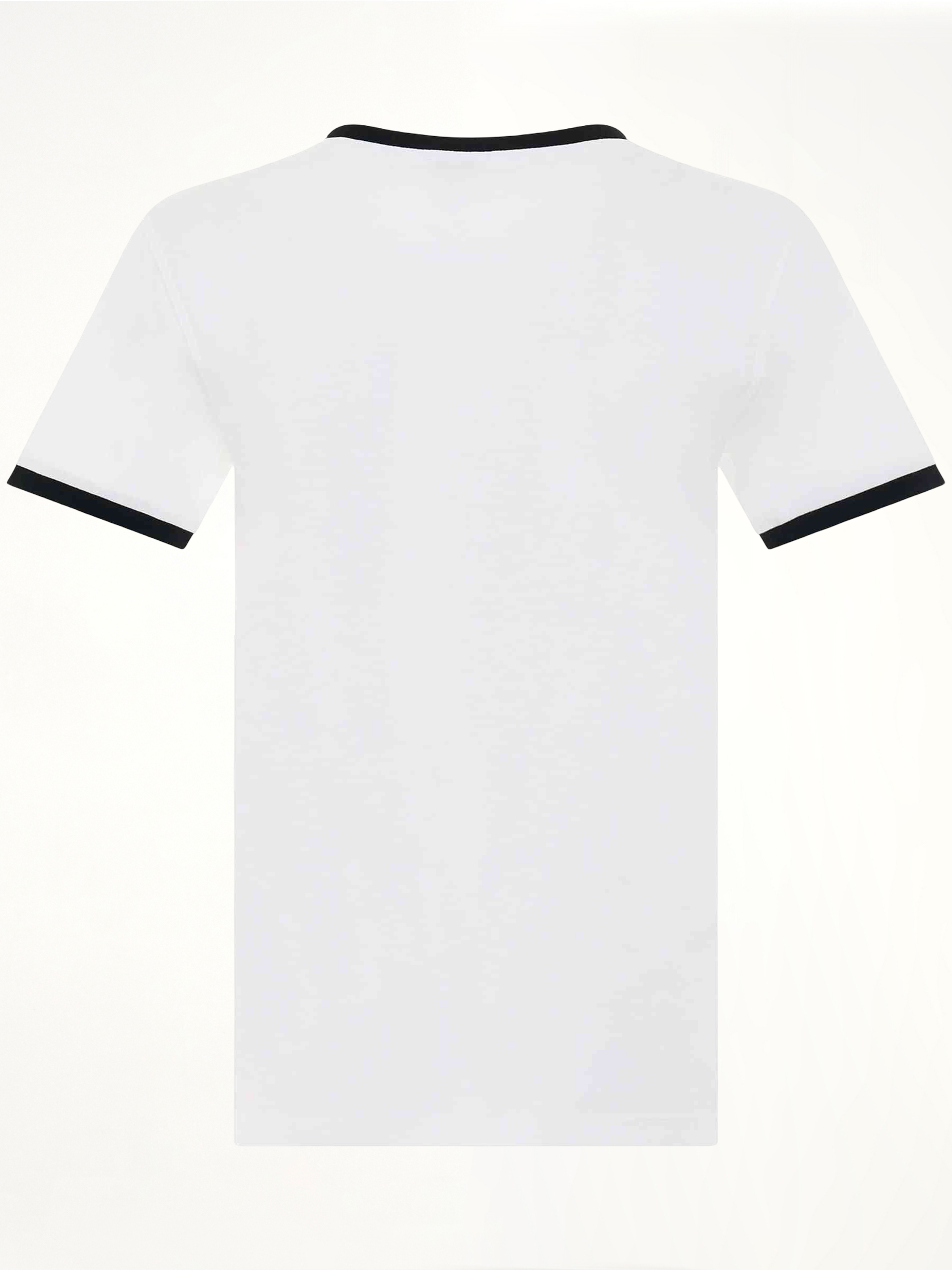 Short sleeves anagram cotton t-shirt in white with signature embroidered anagram motif, contrasting collar, contrasting cuffs and straight hem