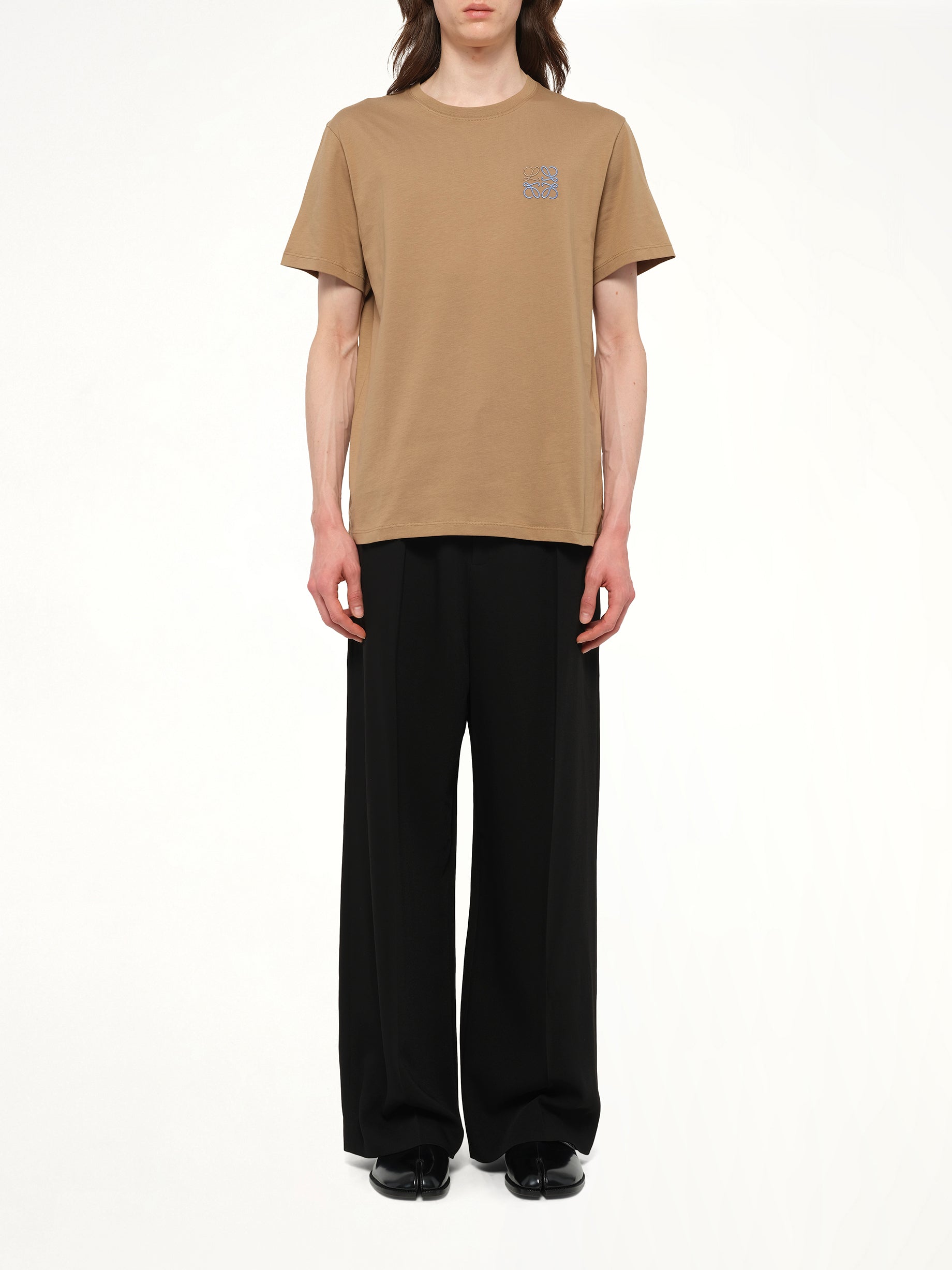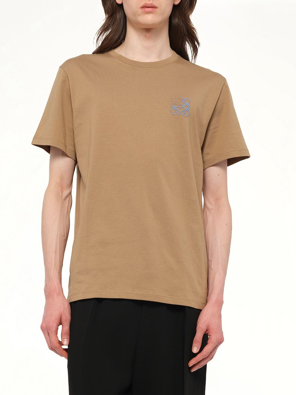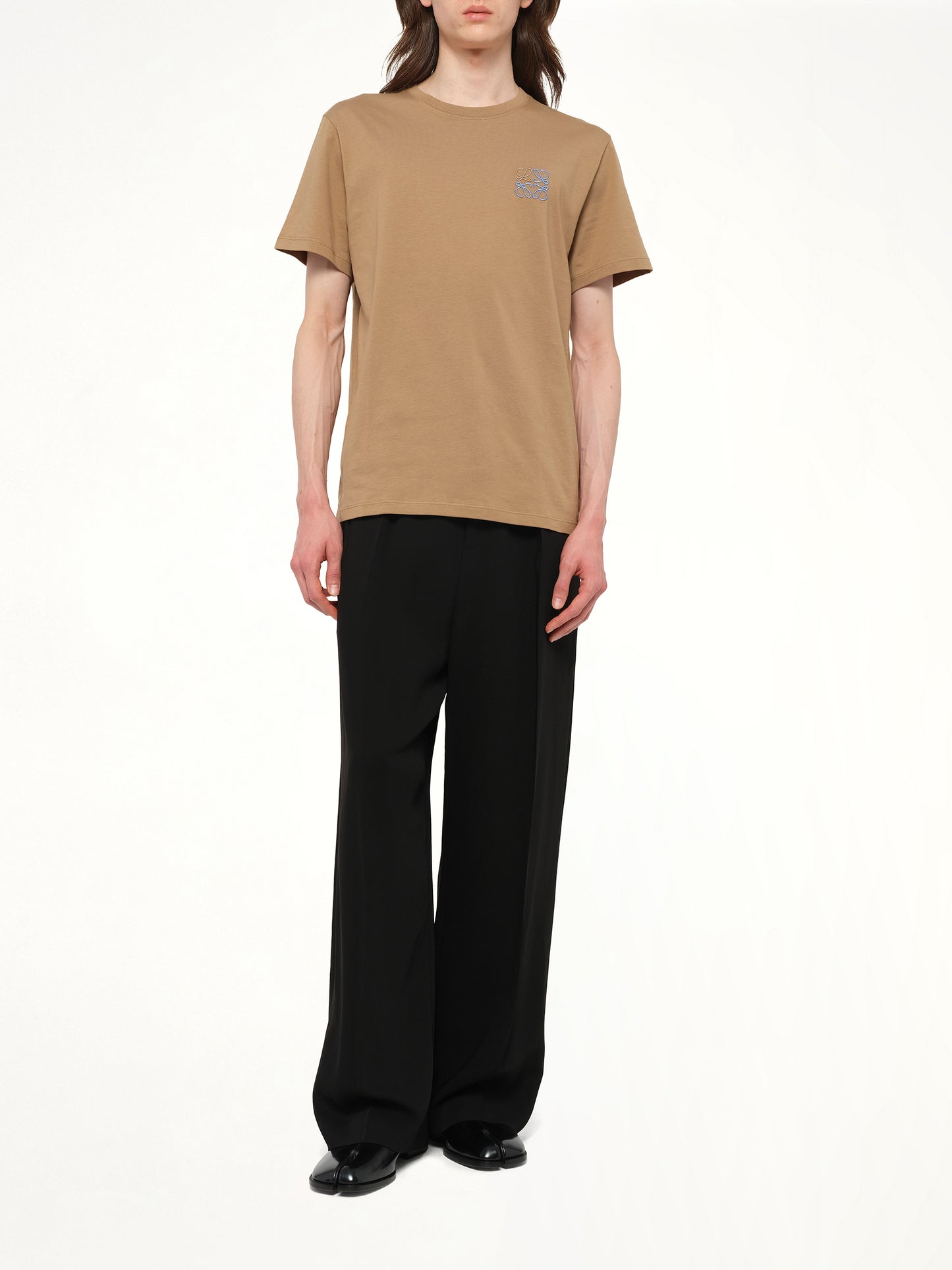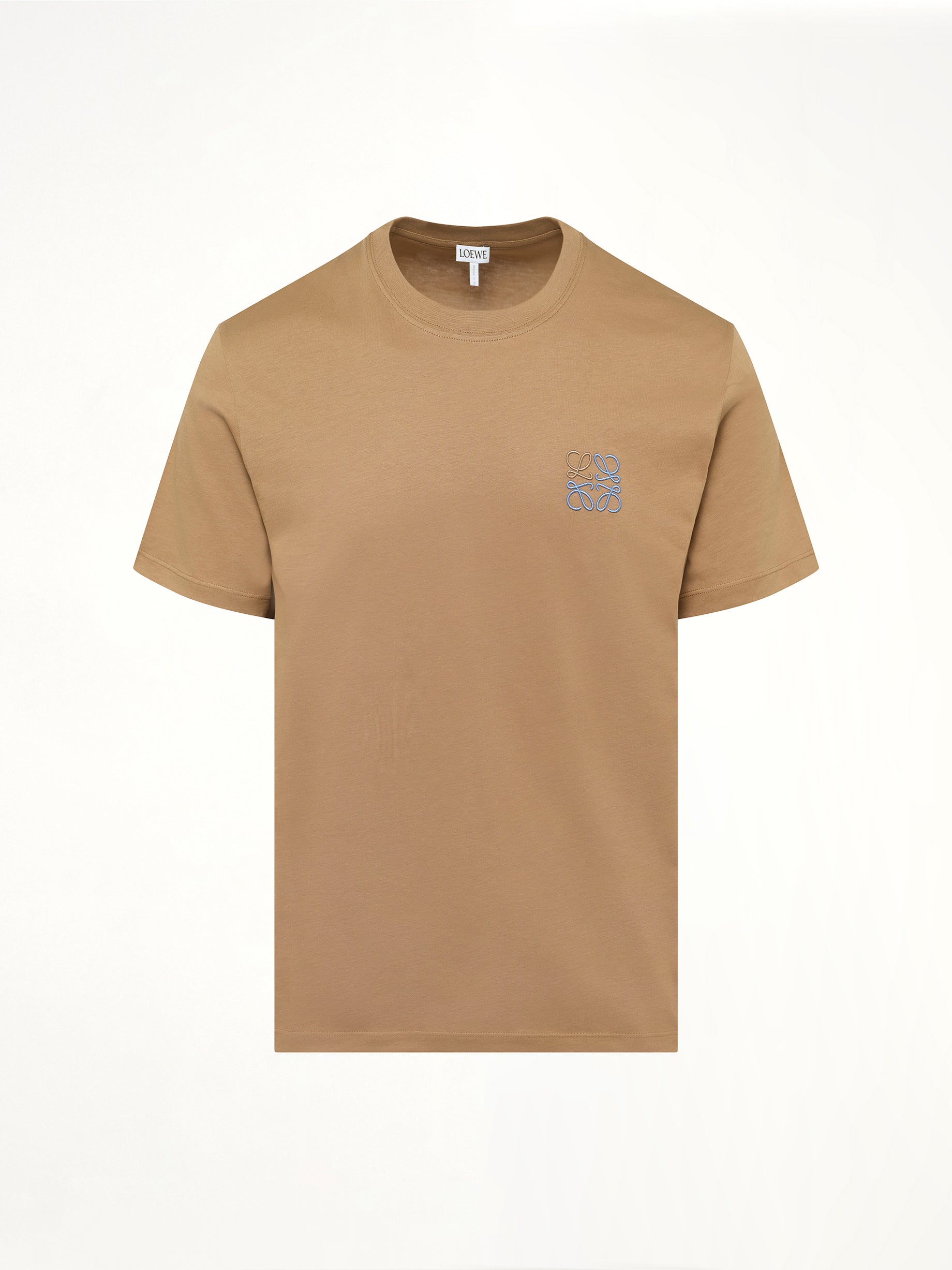 LOEWE's Anagram Logo T-Shirt in Camel is a stylish and versatile addition to any wardrobe. Perfect for casual outings or layering, this t-shirt combines comfort with a touch of luxury.