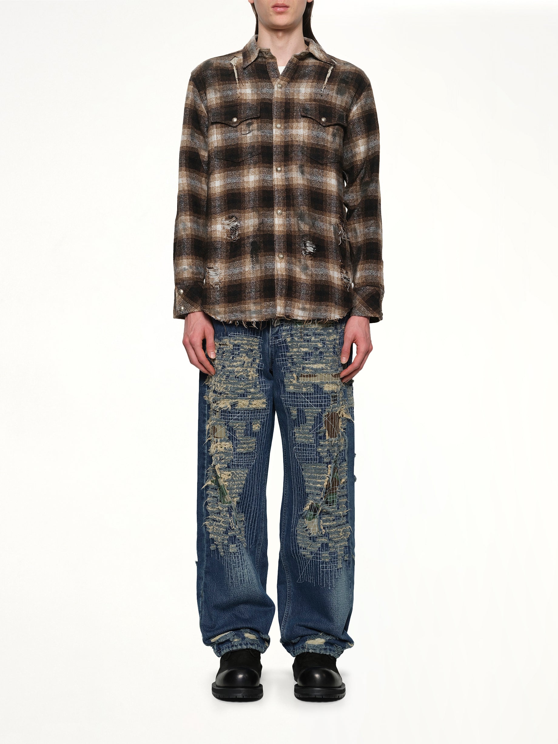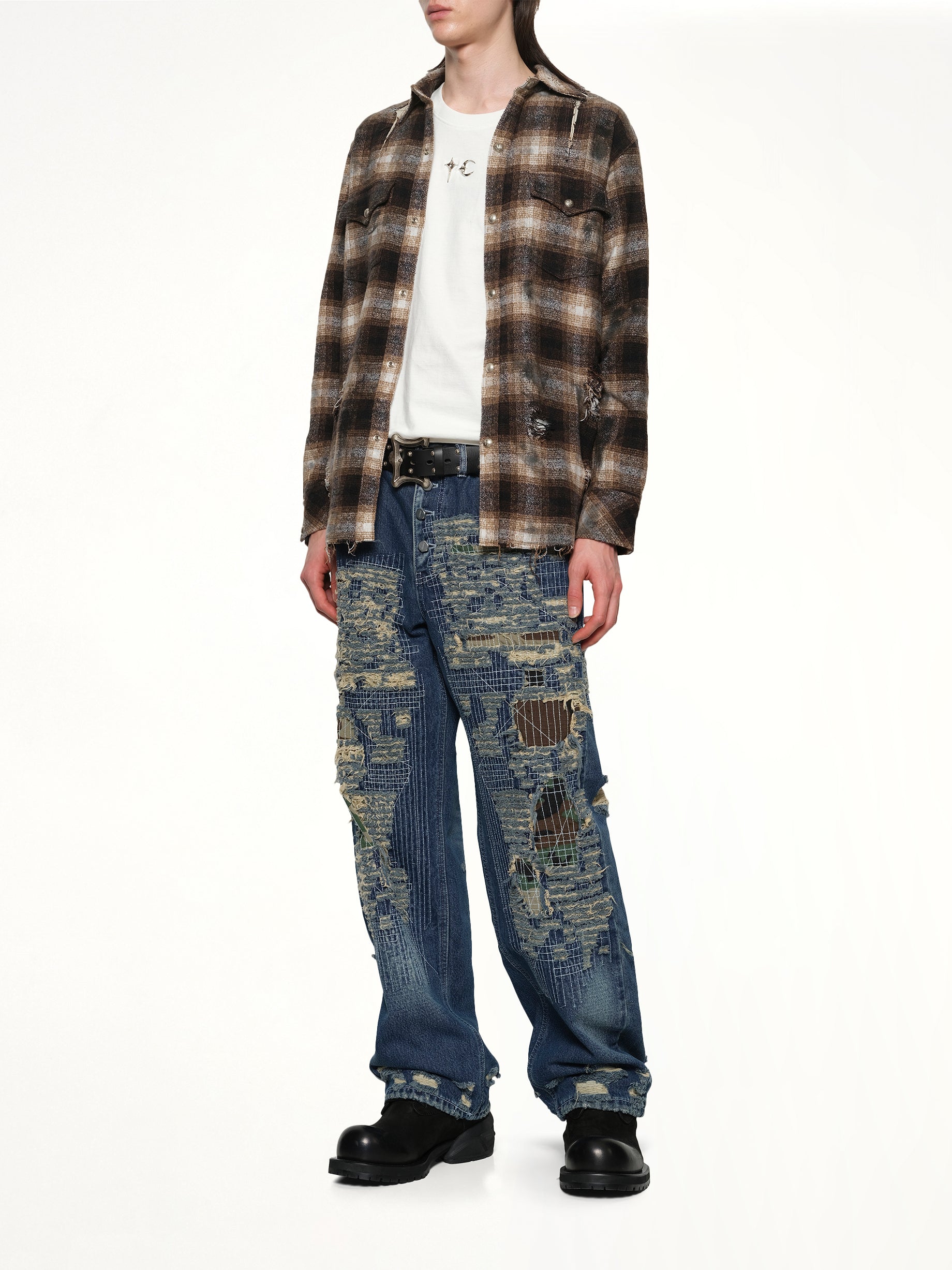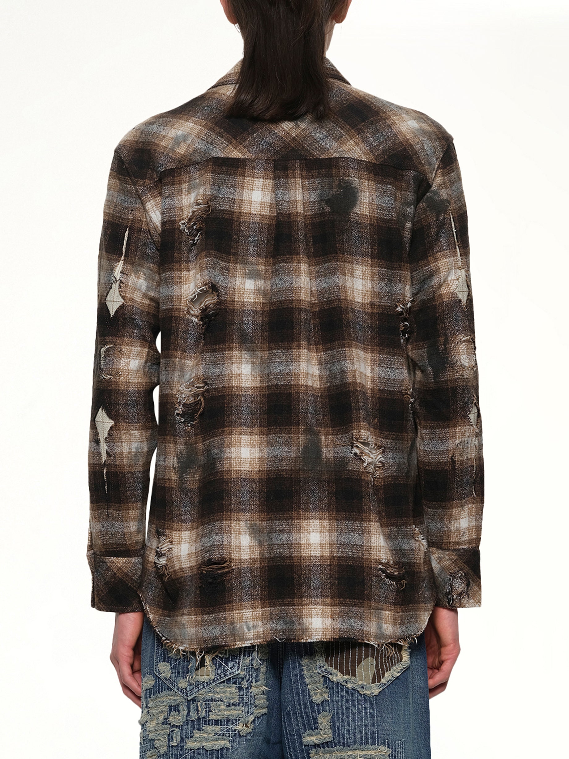 Thug Club's Angels Damaged Shirt in Brown is a unique piece that combines edgy style with a distressed aesthetic. This shirt is perfect for those looking to make a bold fashion statement.