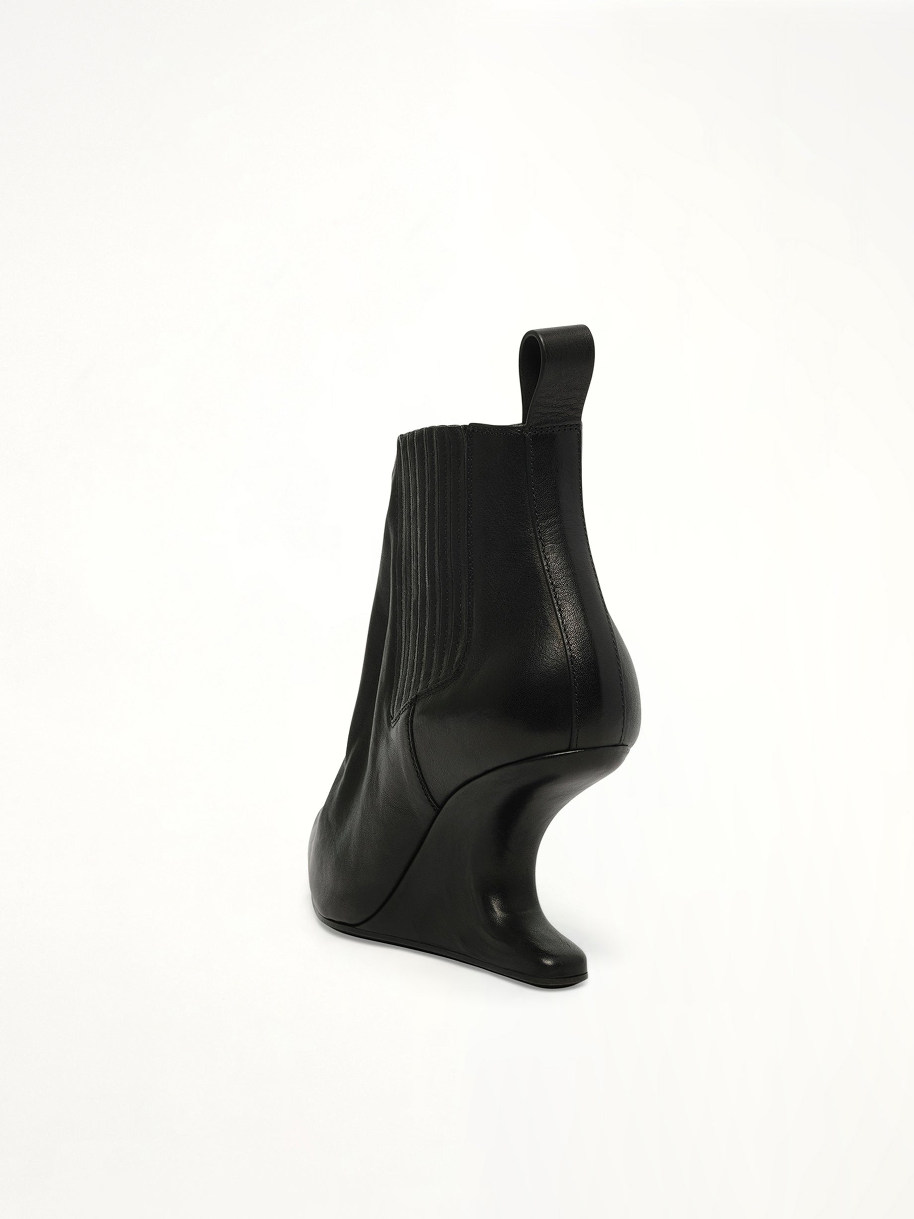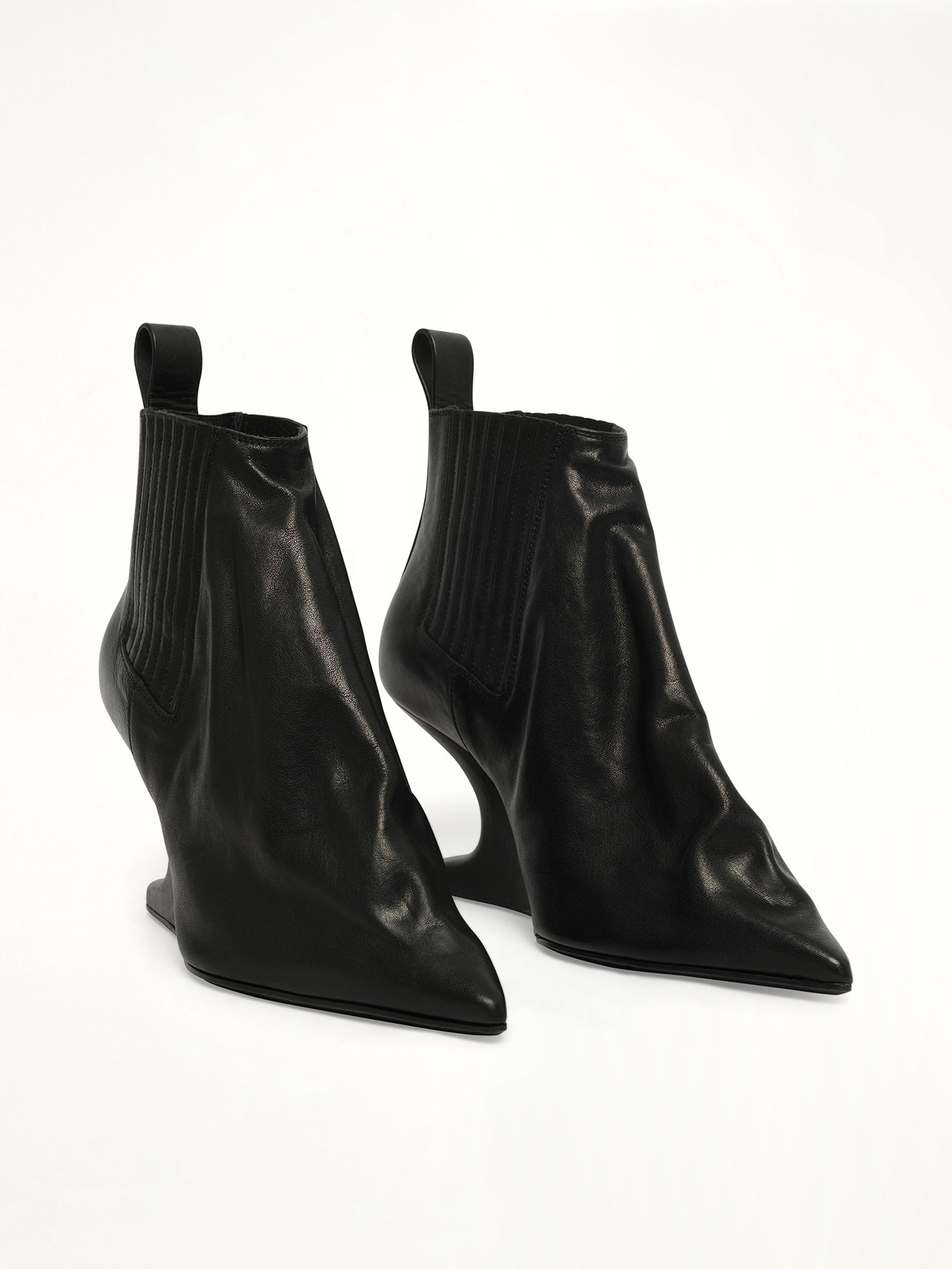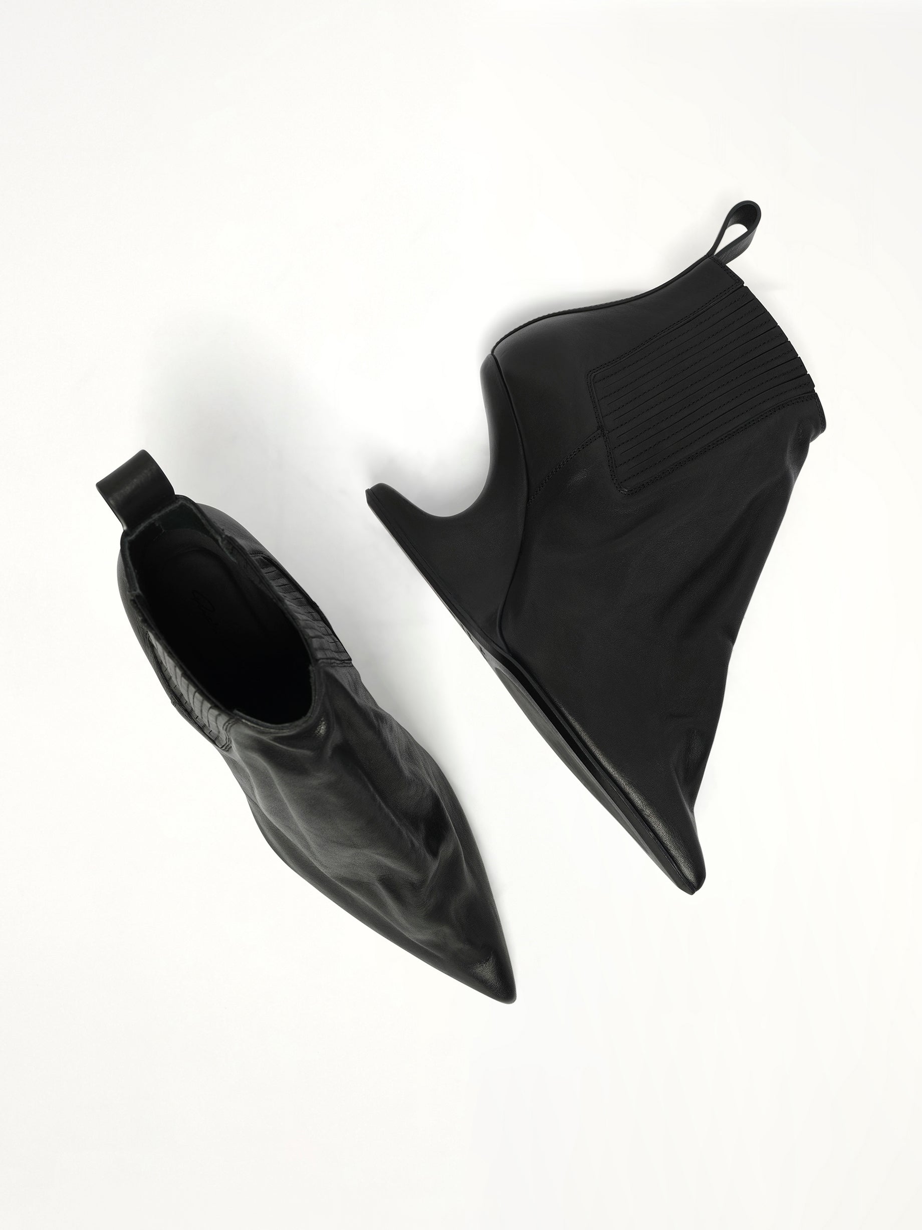 Rick Owens's Ankle Taco in Black is a bold and avant-garde footwear choice that combines unique design with high fashion. This striking piece is perfect for those looking to make a statement with their footwear.