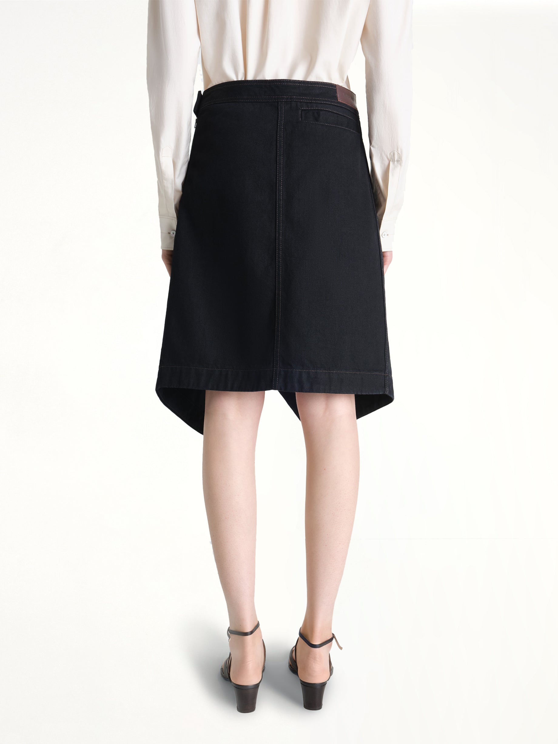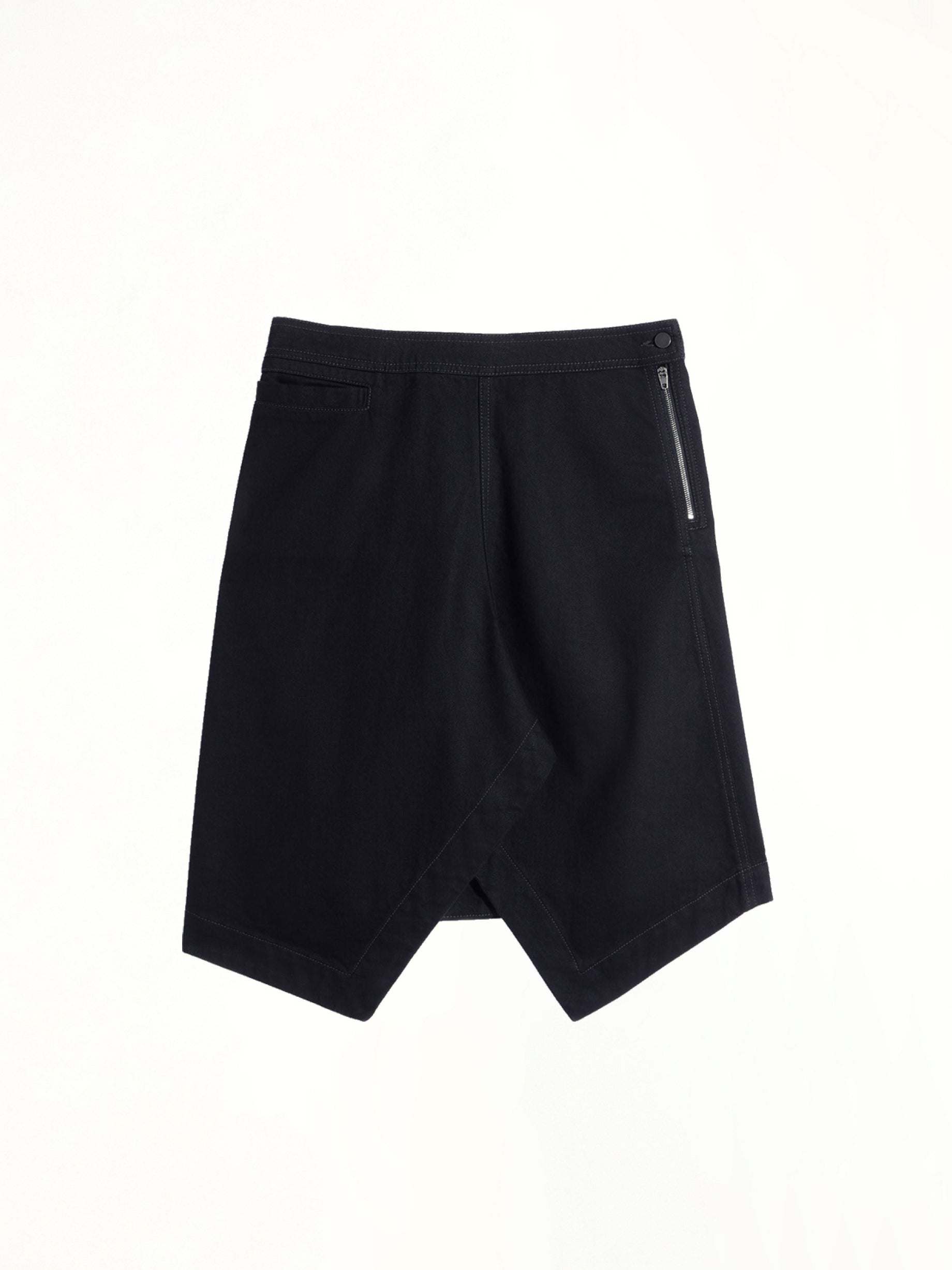 Lemaire's Asymmetric Short Skirt in Black is a modern and stylish piece that adds a unique twist to any wardrobe. Its asymmetrical design and sleek silhouette make it a versatile choice for various occasions.