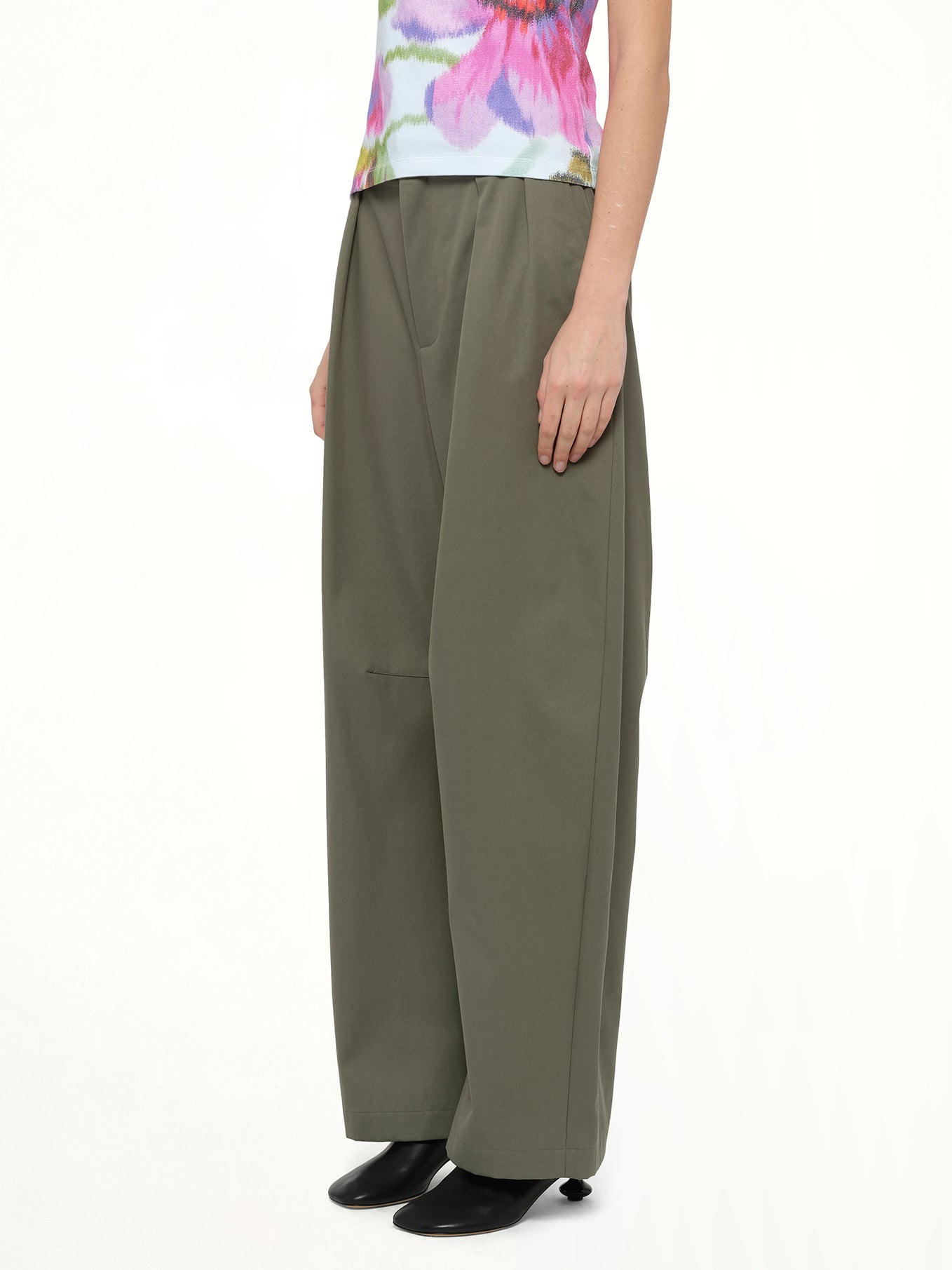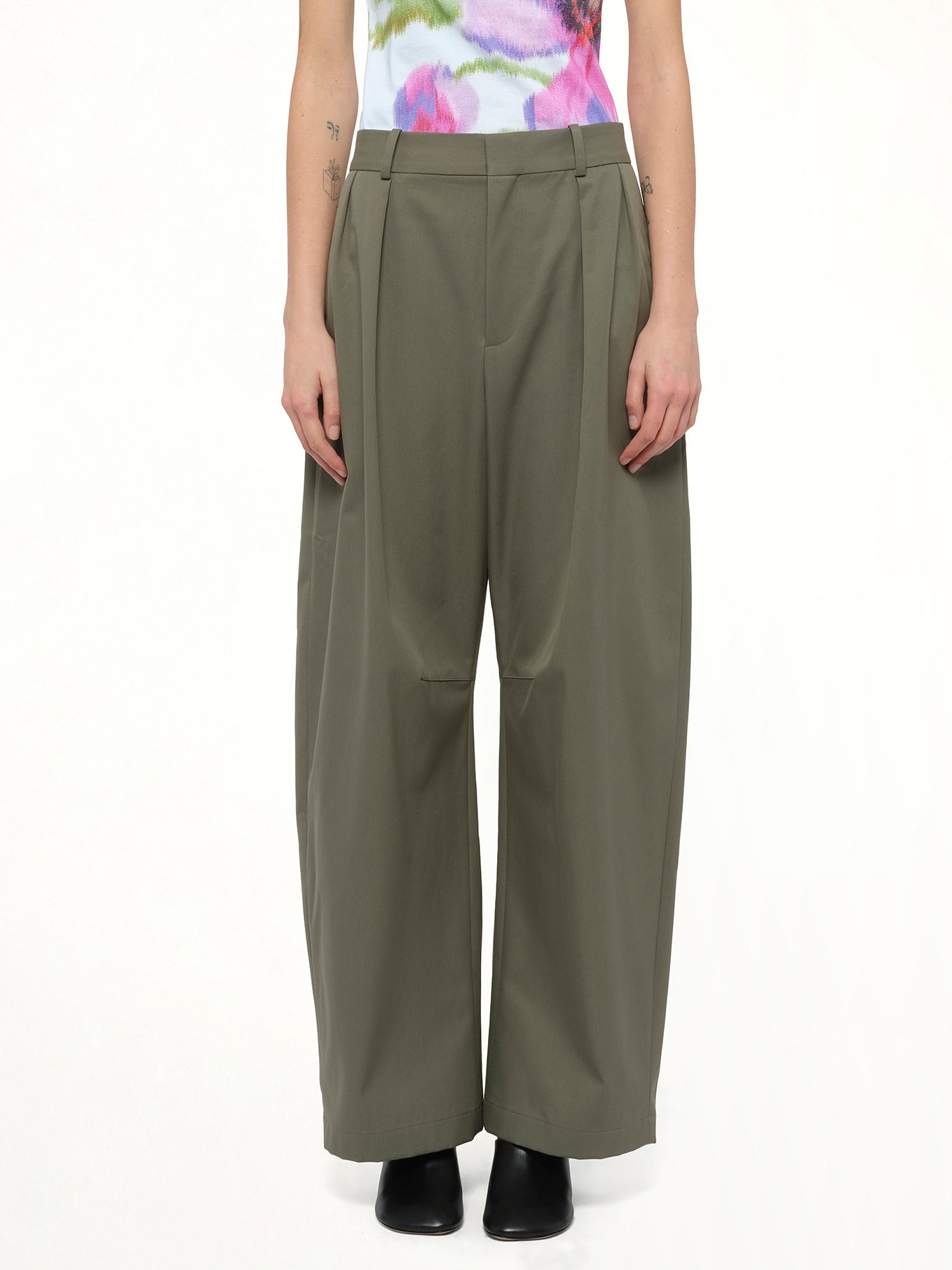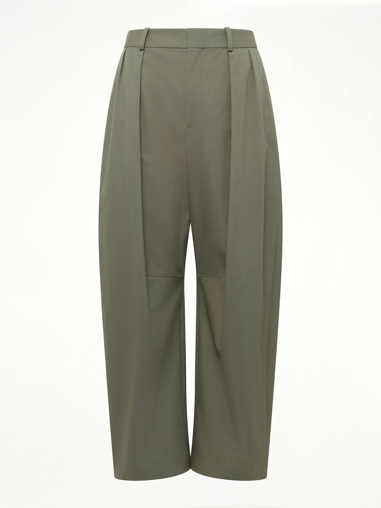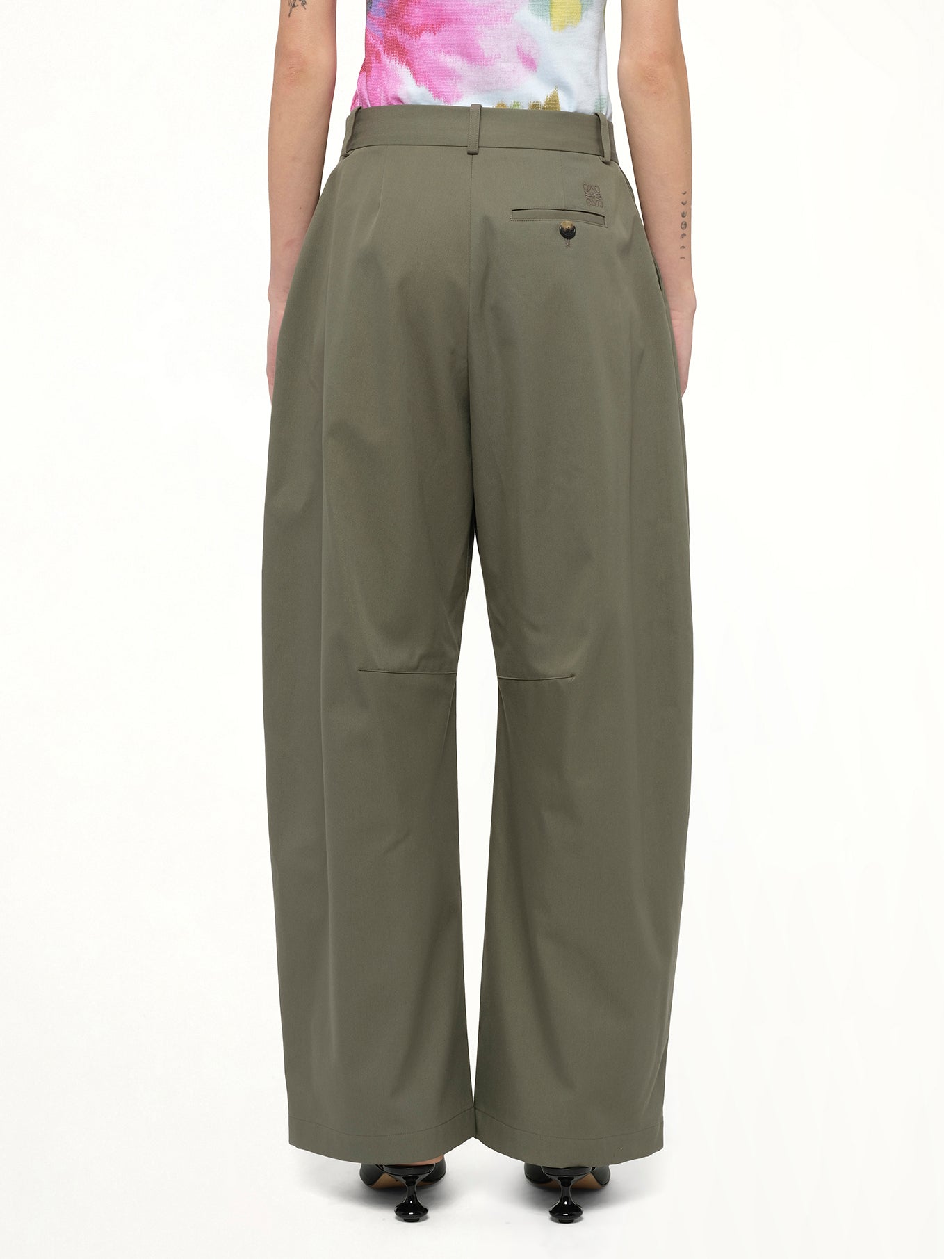 LOEWE's Barrel Trouser AF in Khaki Green offers a contemporary twist on classic tailoring, featuring a relaxed fit with a distinctive barrel silhouette. Perfect for both casual and formal occasions, these trousers are a versatile addition to any wardrobe.