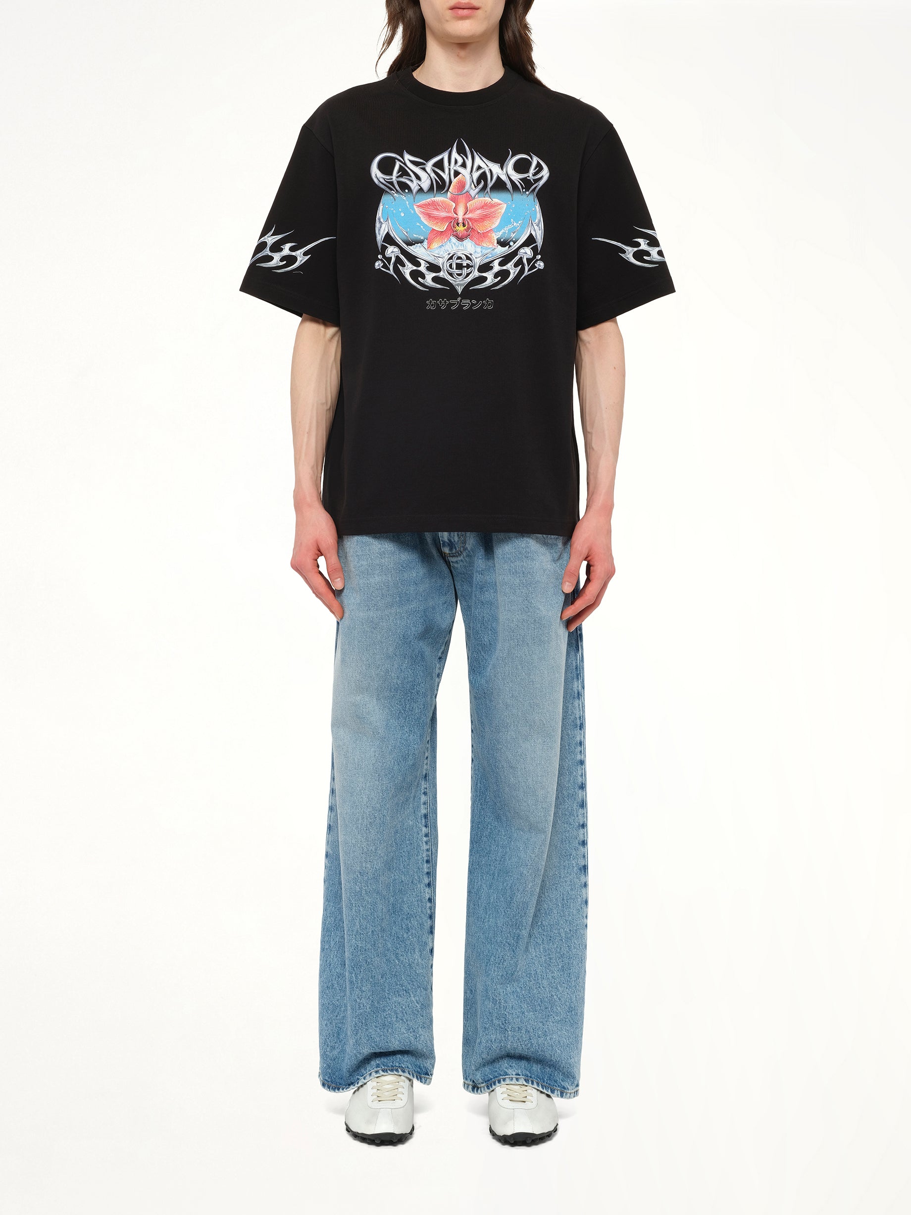 Casablanca's Blades Printed Oversized T-Shirt in Black is a stylish and contemporary piece that combines comfort with a bold design. Perfect for casual outings, this t-shirt features a unique blade print that adds an edge to any outfit.