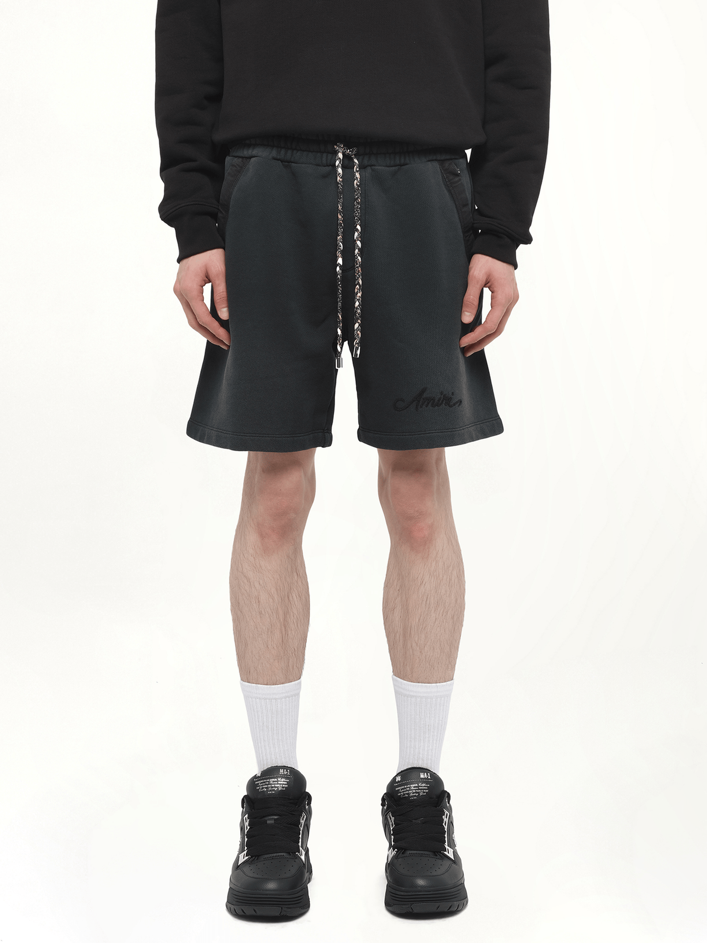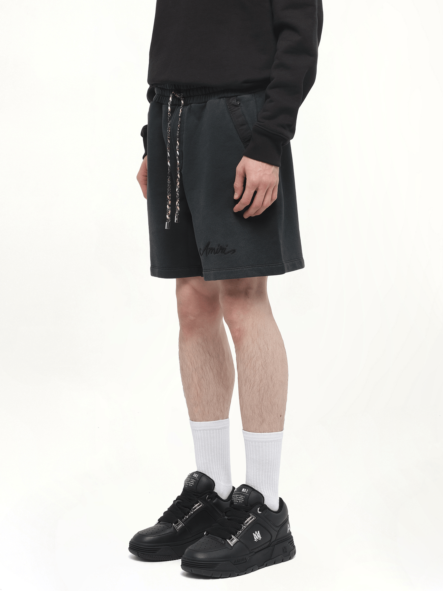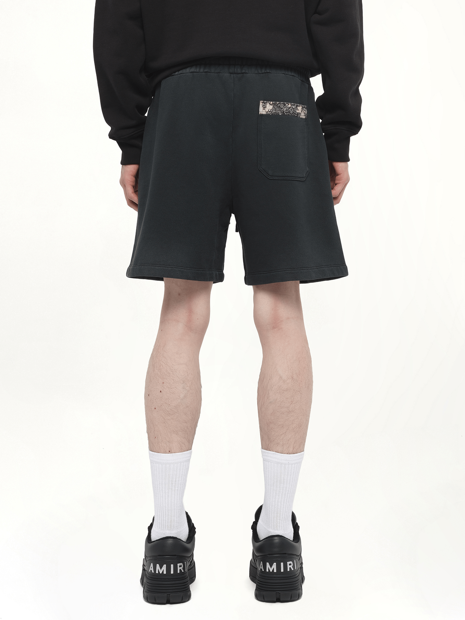 Amiri's Bleach Bandana Shorts in Black offer a unique blend of street style and luxury fashion, featuring a distinctive bleach pattern that sets them apart. These shorts are perfect for making a bold statement, whether you're hitting the city streets or relaxing on a casual day out. With their comfortable fit and eye-catching design, they are a must-have addition to any modern wardrobe.