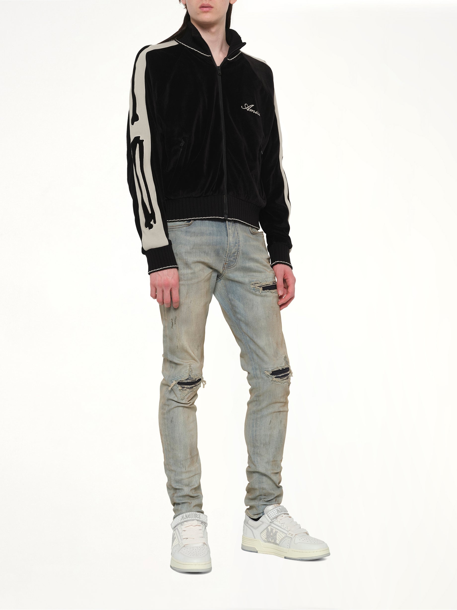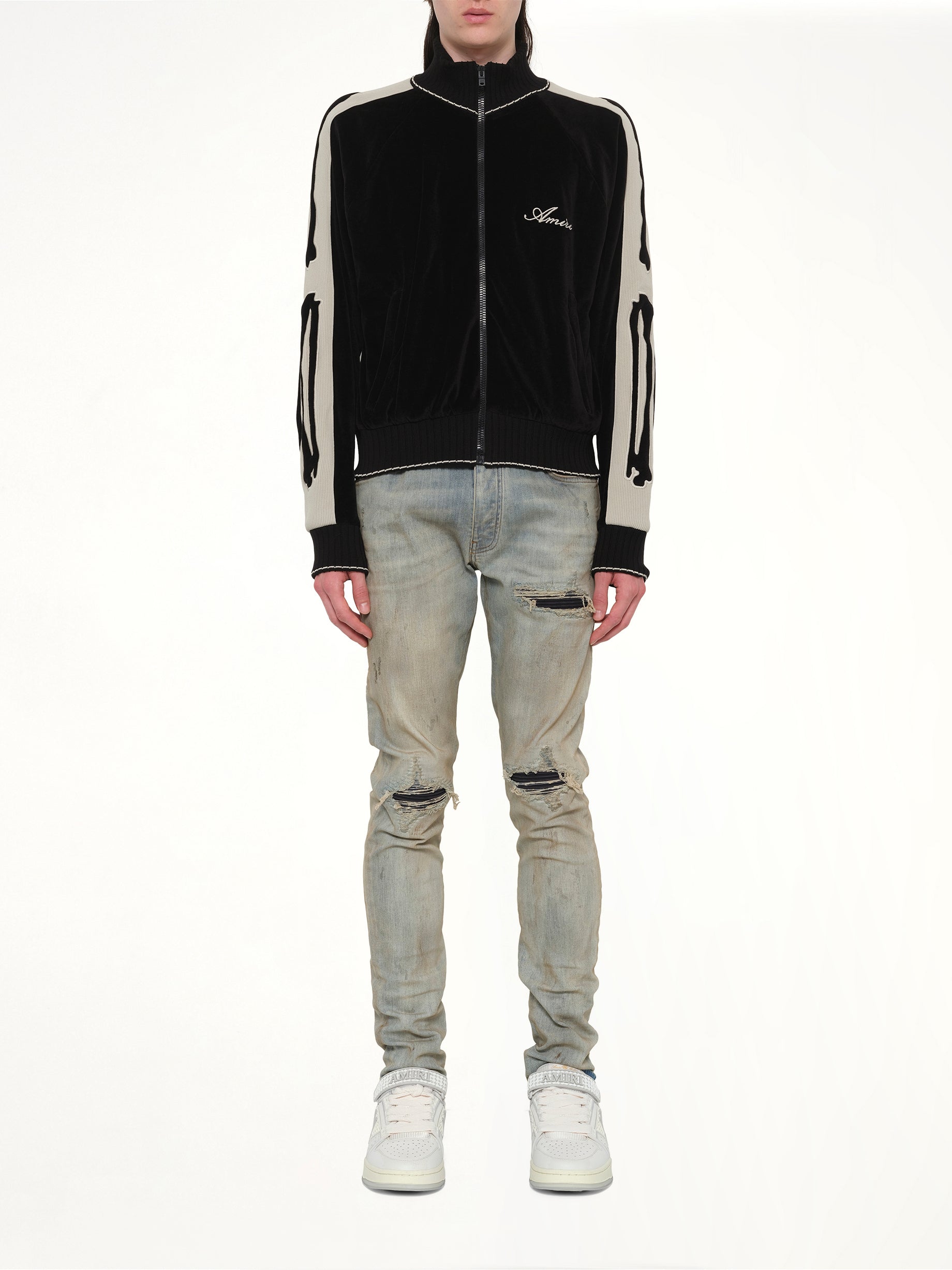 Amiri's Bones Track Jacket in Black is a stylish and contemporary piece that combines comfort with a bold design. Perfect for making a statement, this jacket features unique detailing that sets it apart from the rest.