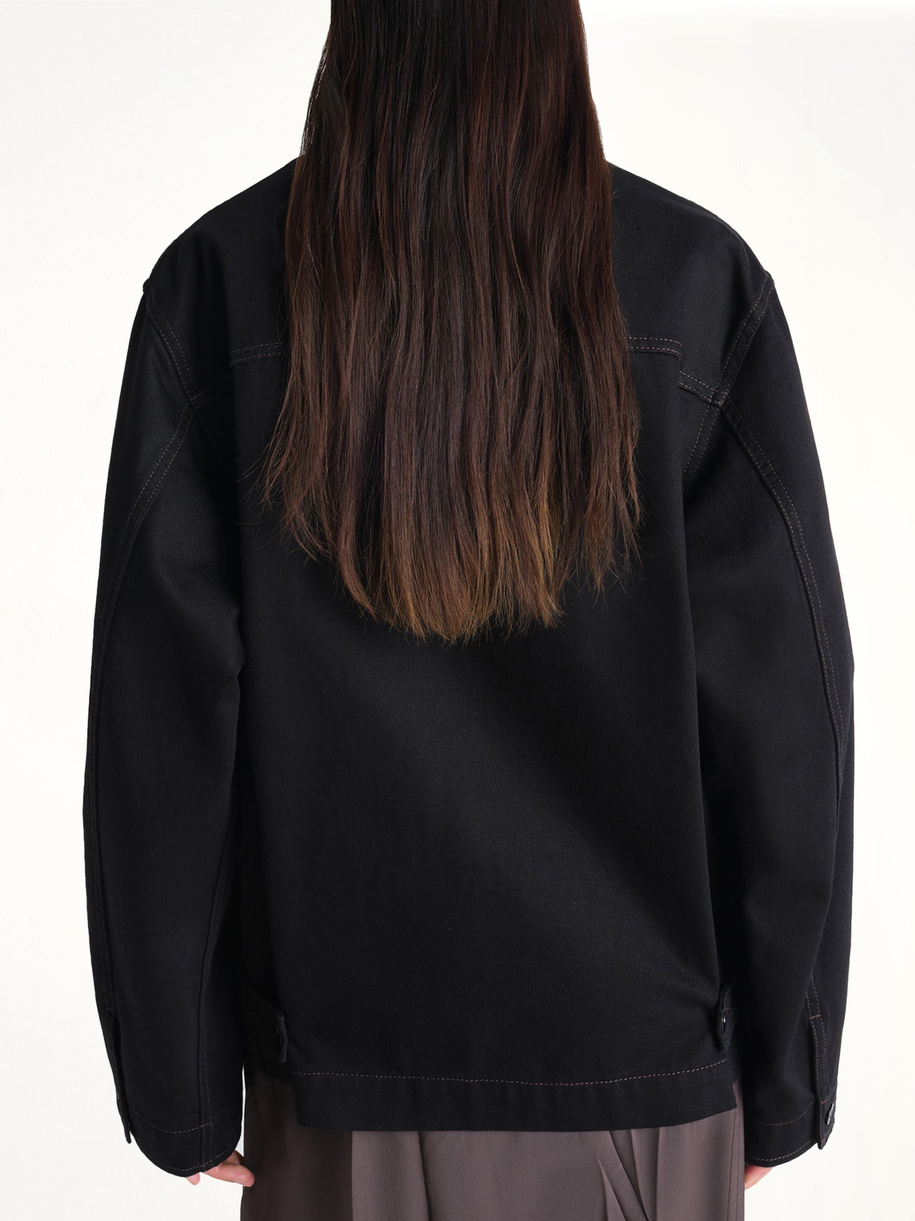 Lemaire's Boxy Heavy Jacket in Black is a versatile outerwear piece designed for both style and functionality. Its structured silhouette and minimalist design make it a timeless addition to any wardrobe.