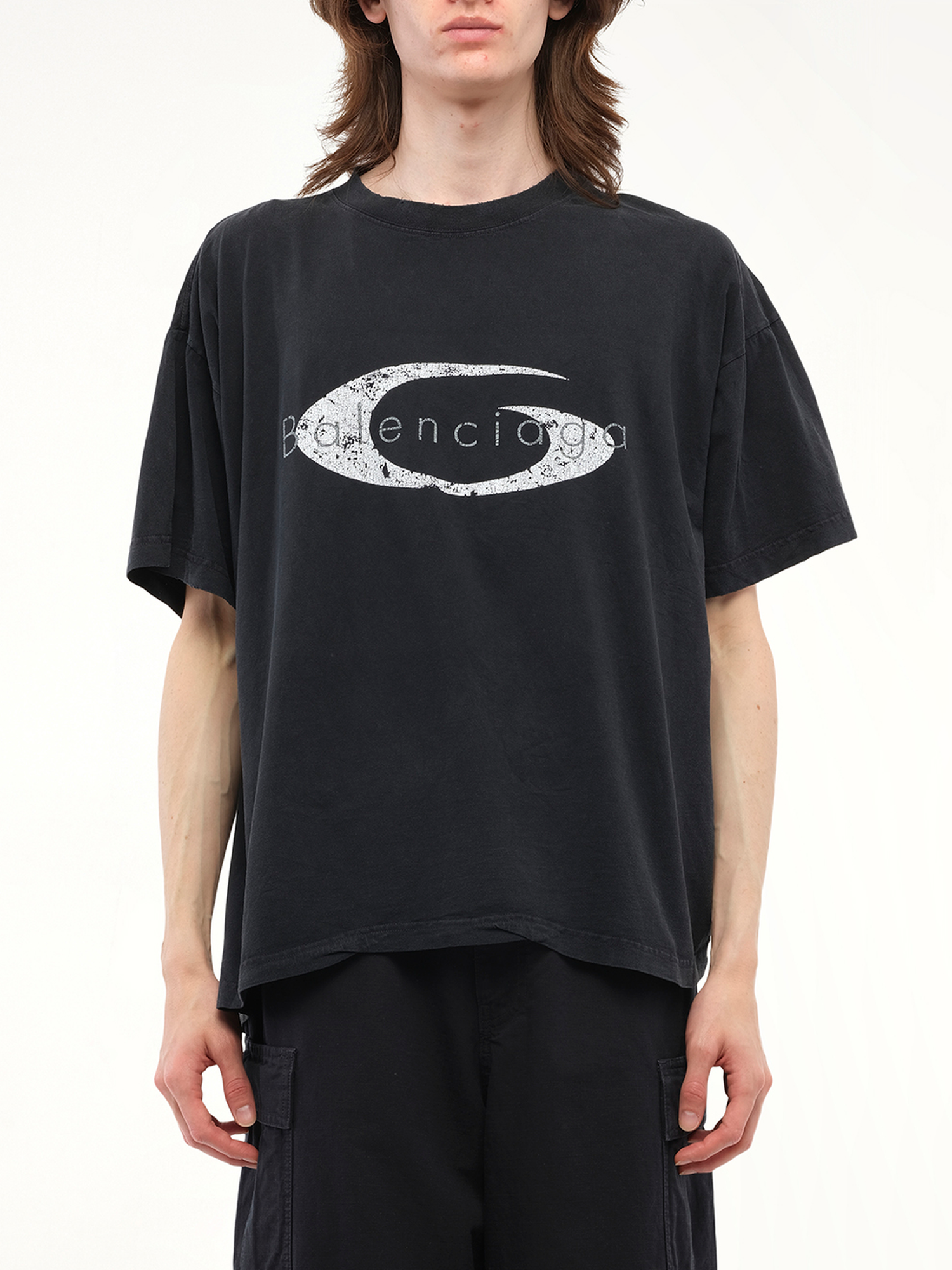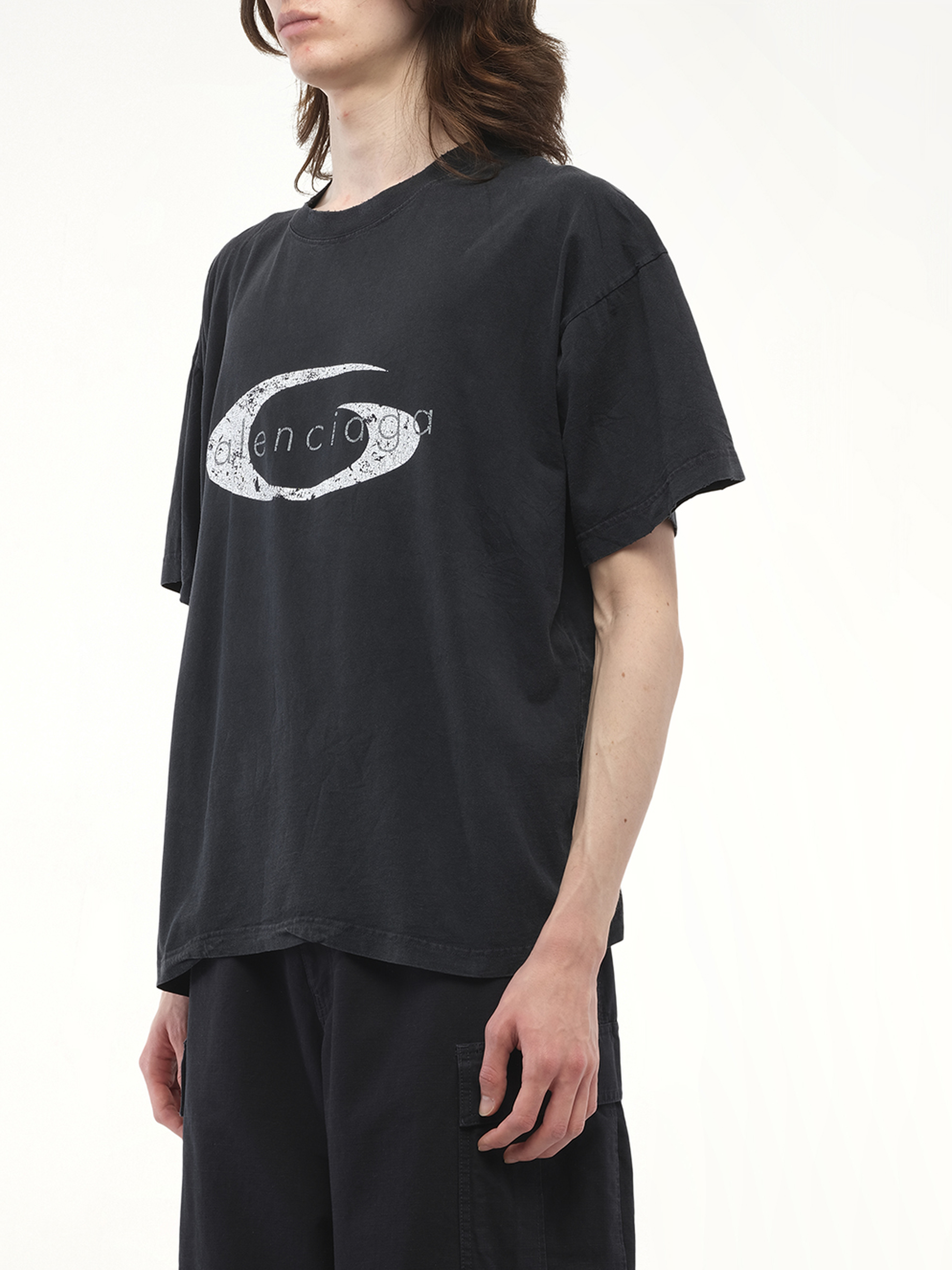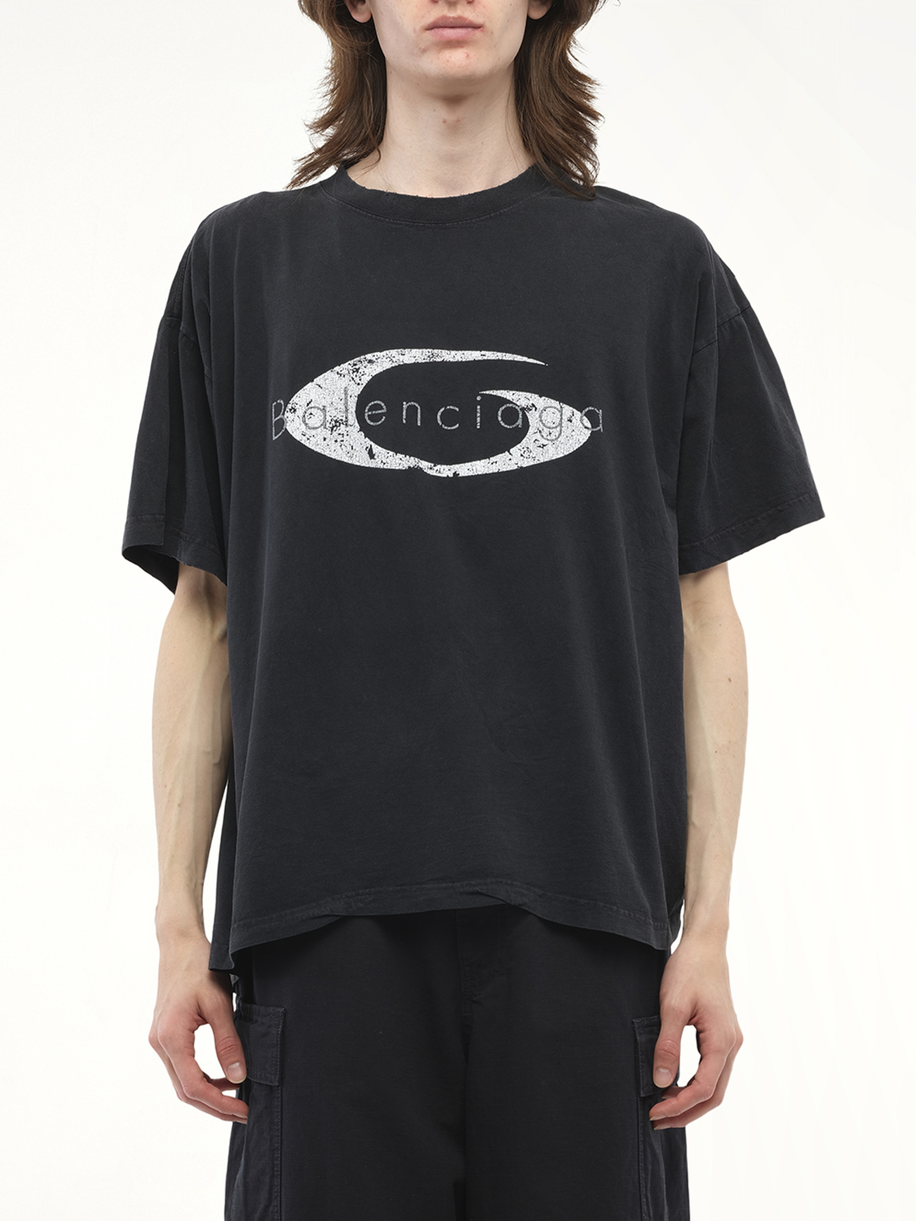 Balenciaga's Boxy T-Shirt in Faded Washed Black/White is a stylish and versatile addition to any wardrobe, offering a relaxed fit with a contemporary edge. Perfect for casual outings or layering, this t-shirt combines comfort with high-fashion appeal.