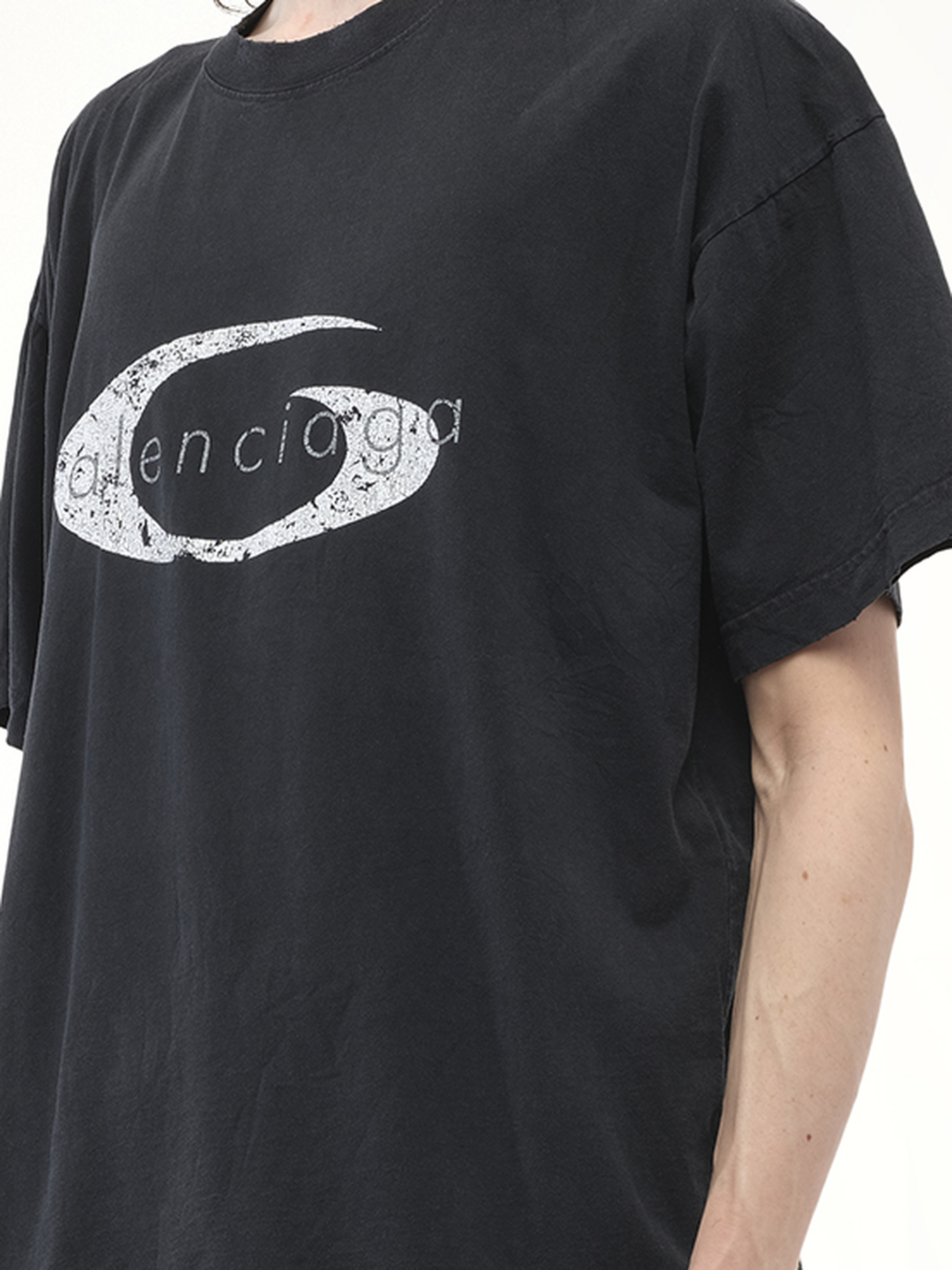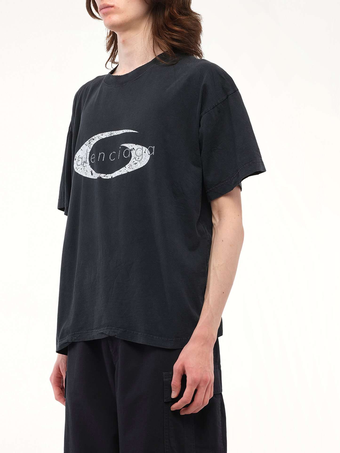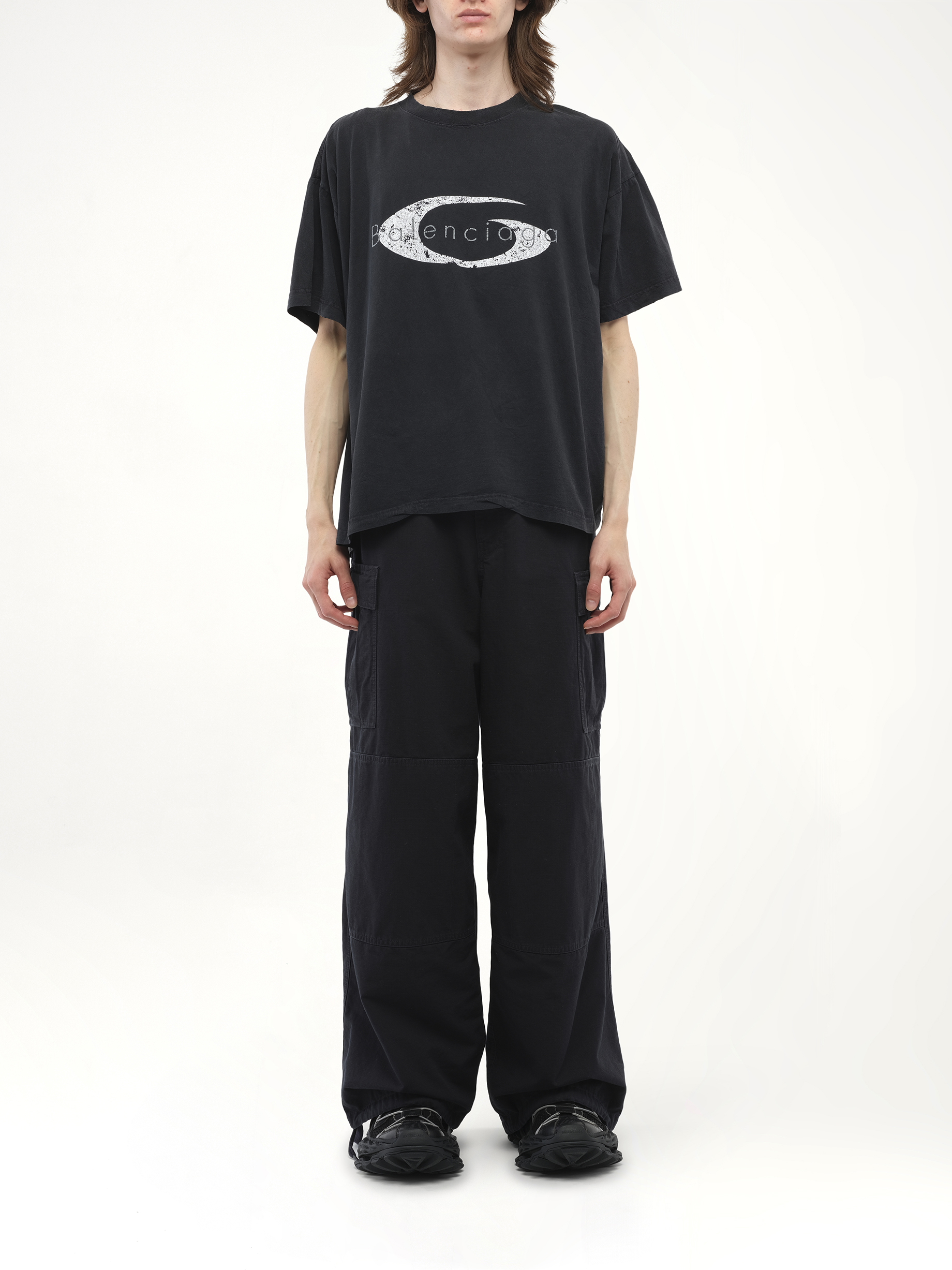 Balenciaga's Boxy T-Shirt in Faded Washed Black/White is a stylish and versatile addition to any wardrobe, offering a relaxed fit with a contemporary edge. Perfect for casual outings or layering, this t-shirt combines comfort with high-fashion appeal.
