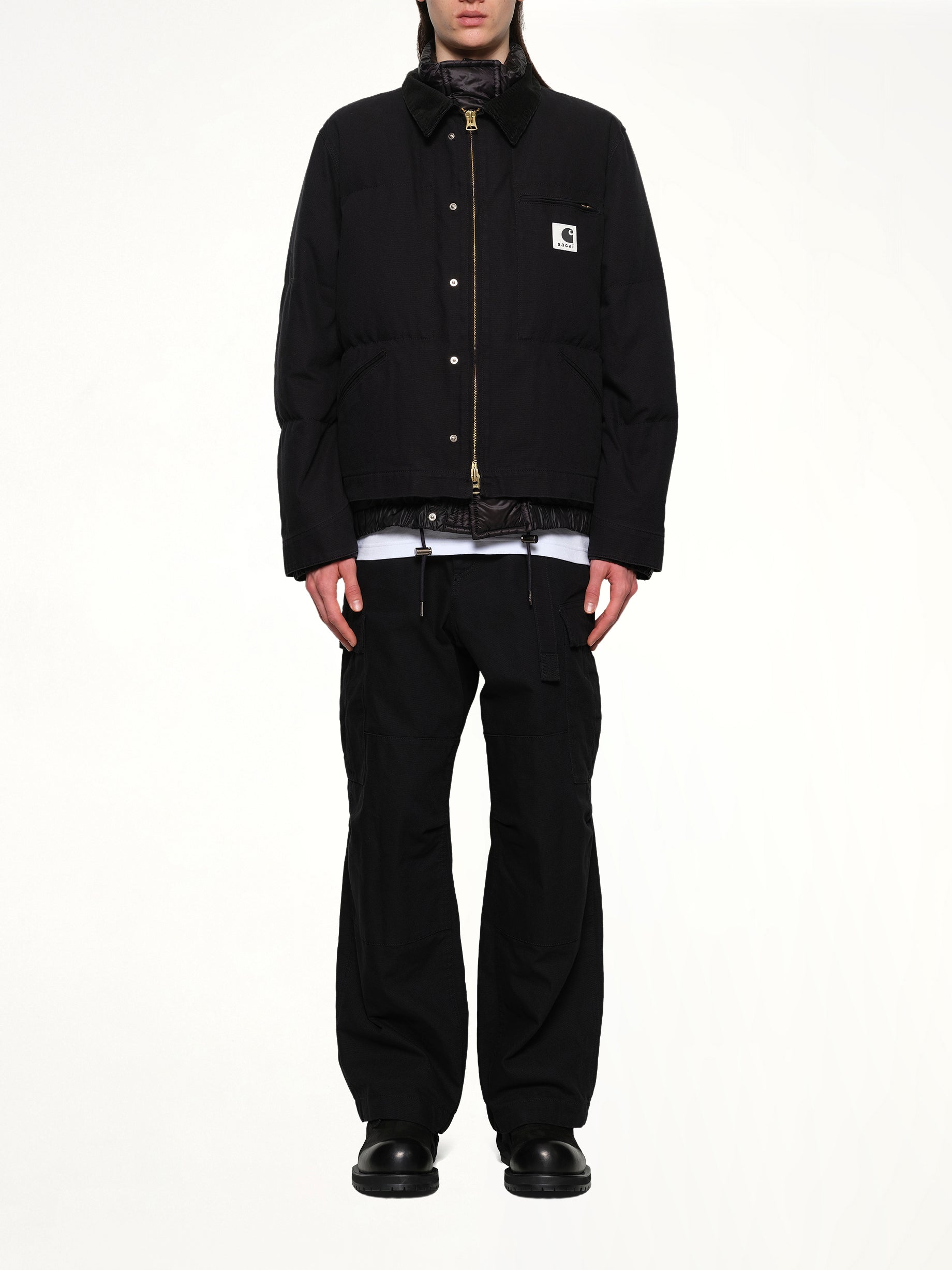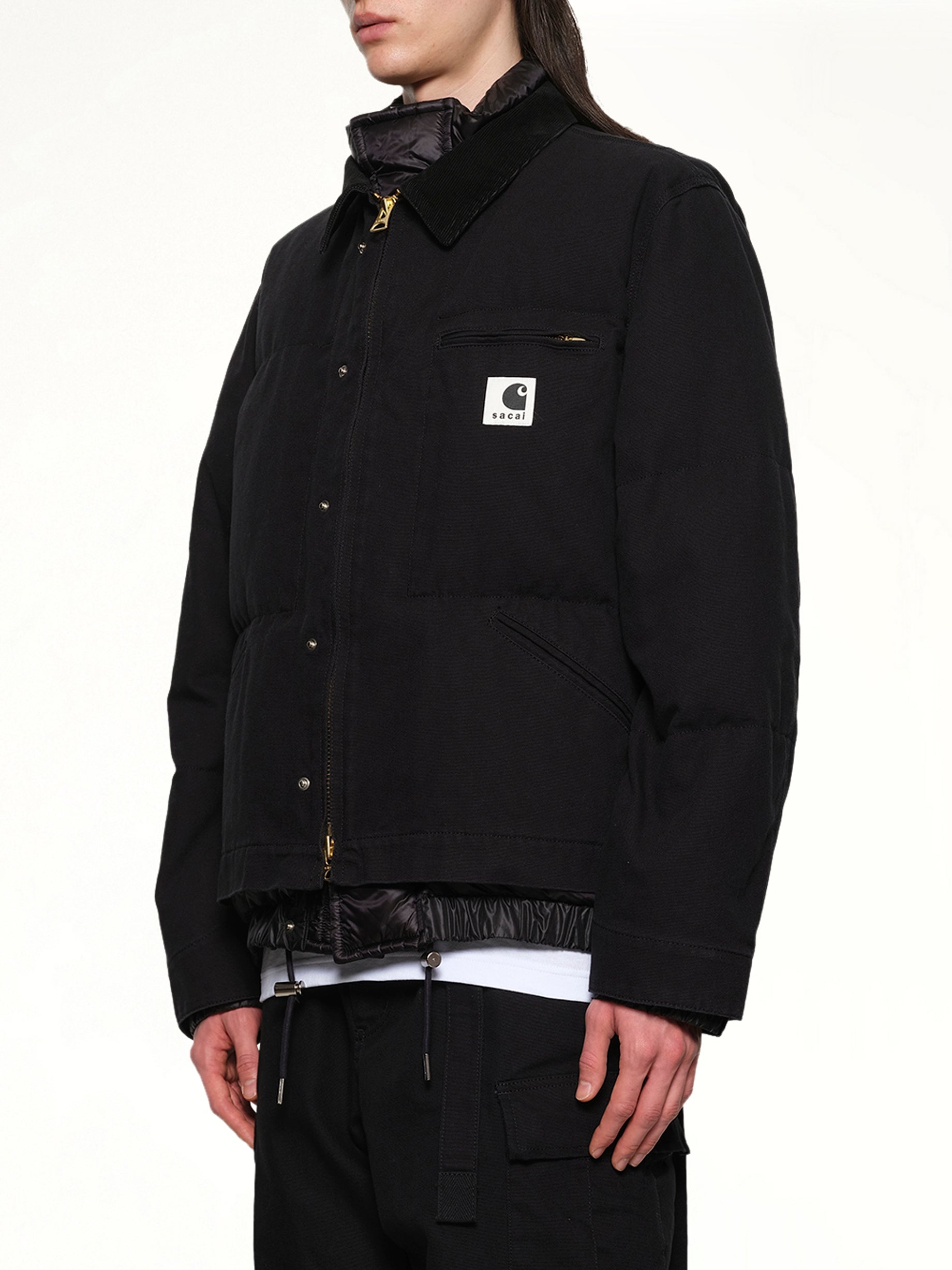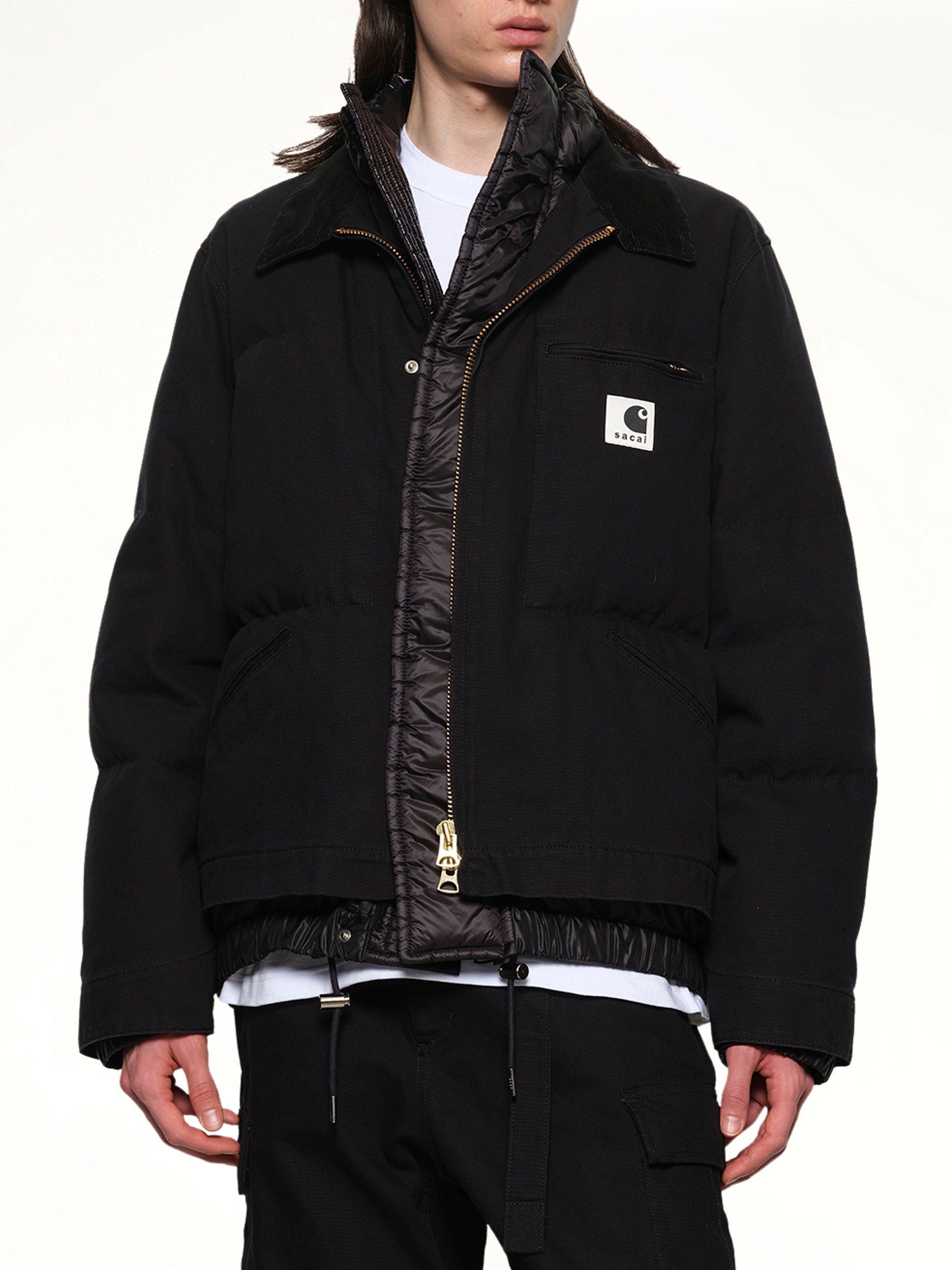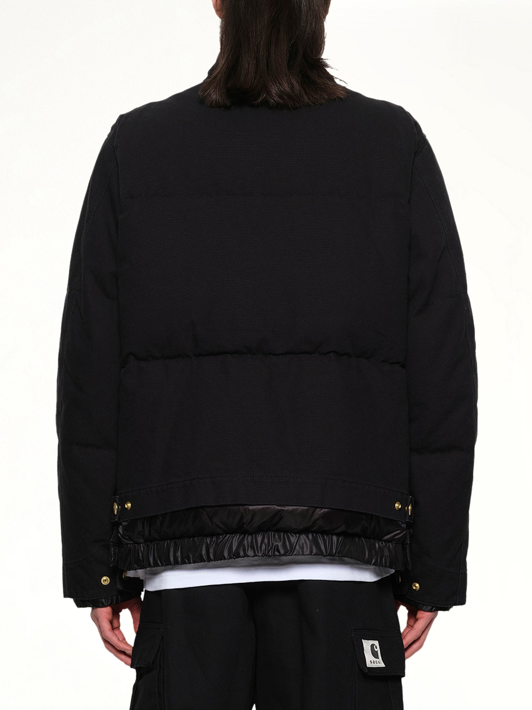 Sacai's Carhartt WIP Washed Duck Puffer Jacket in Black is a stylish and functional outerwear piece designed for both warmth and durability. This jacket combines Carhartt's rugged aesthetic with Sacai's innovative design approach.
