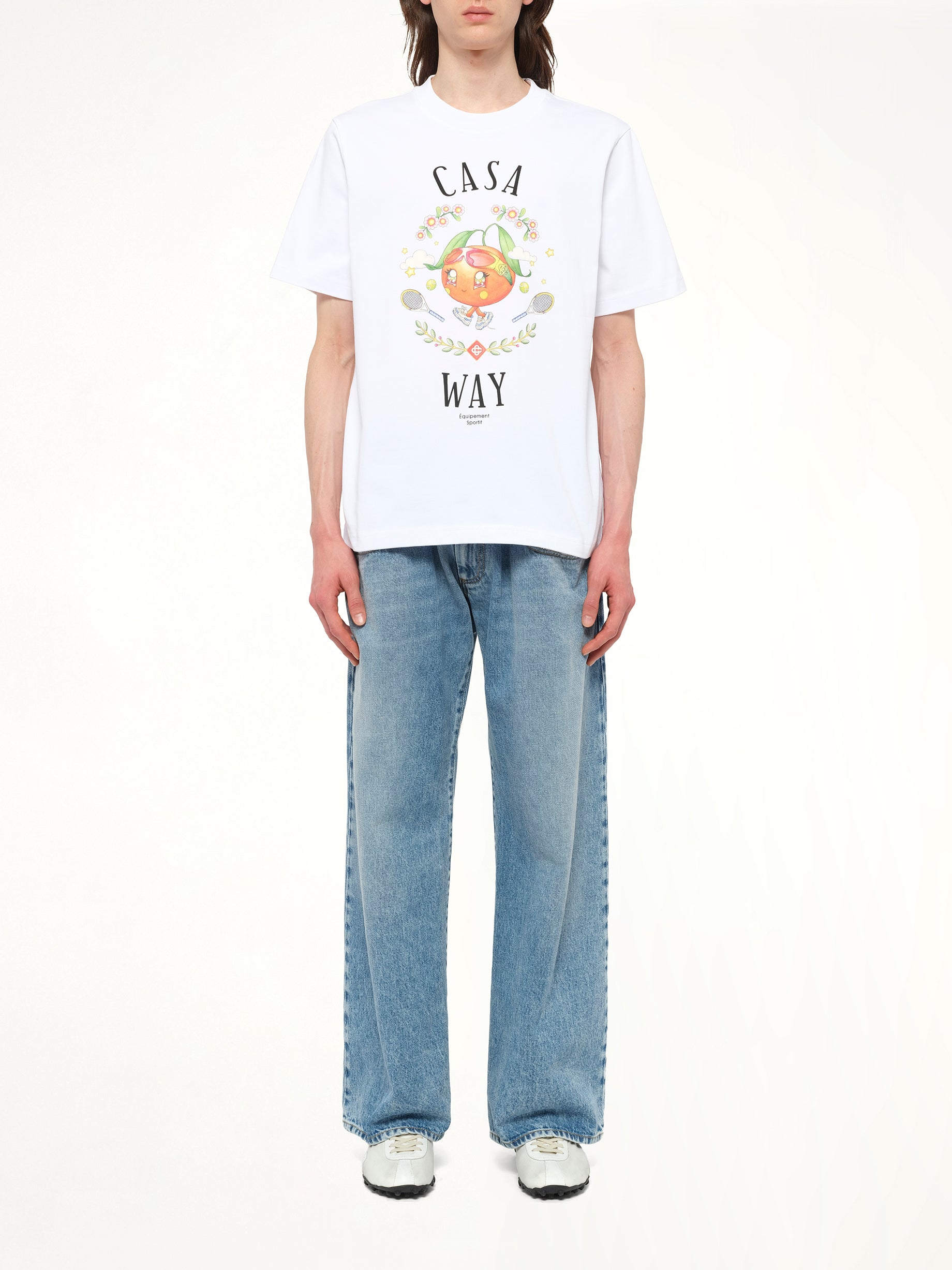 Casablanca's Casa Way Kawaii Printed T-Shirt in White is a playful and stylish addition to any wardrobe. Featuring a unique and vibrant design, this t-shirt is perfect for casual outings or making a statement.