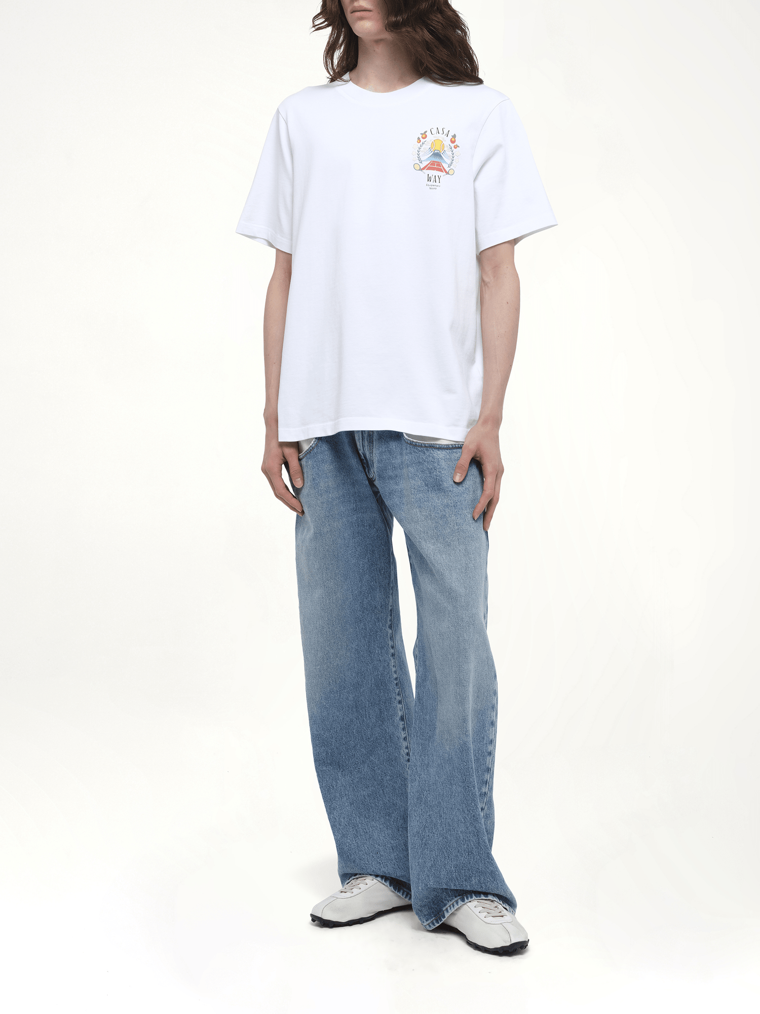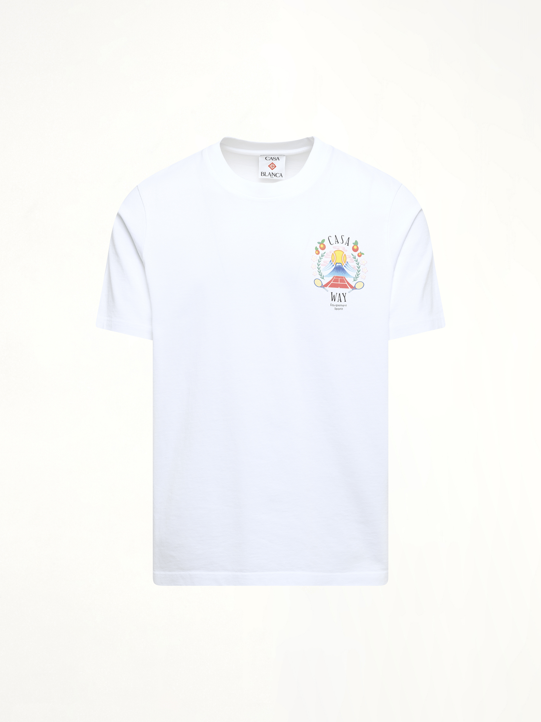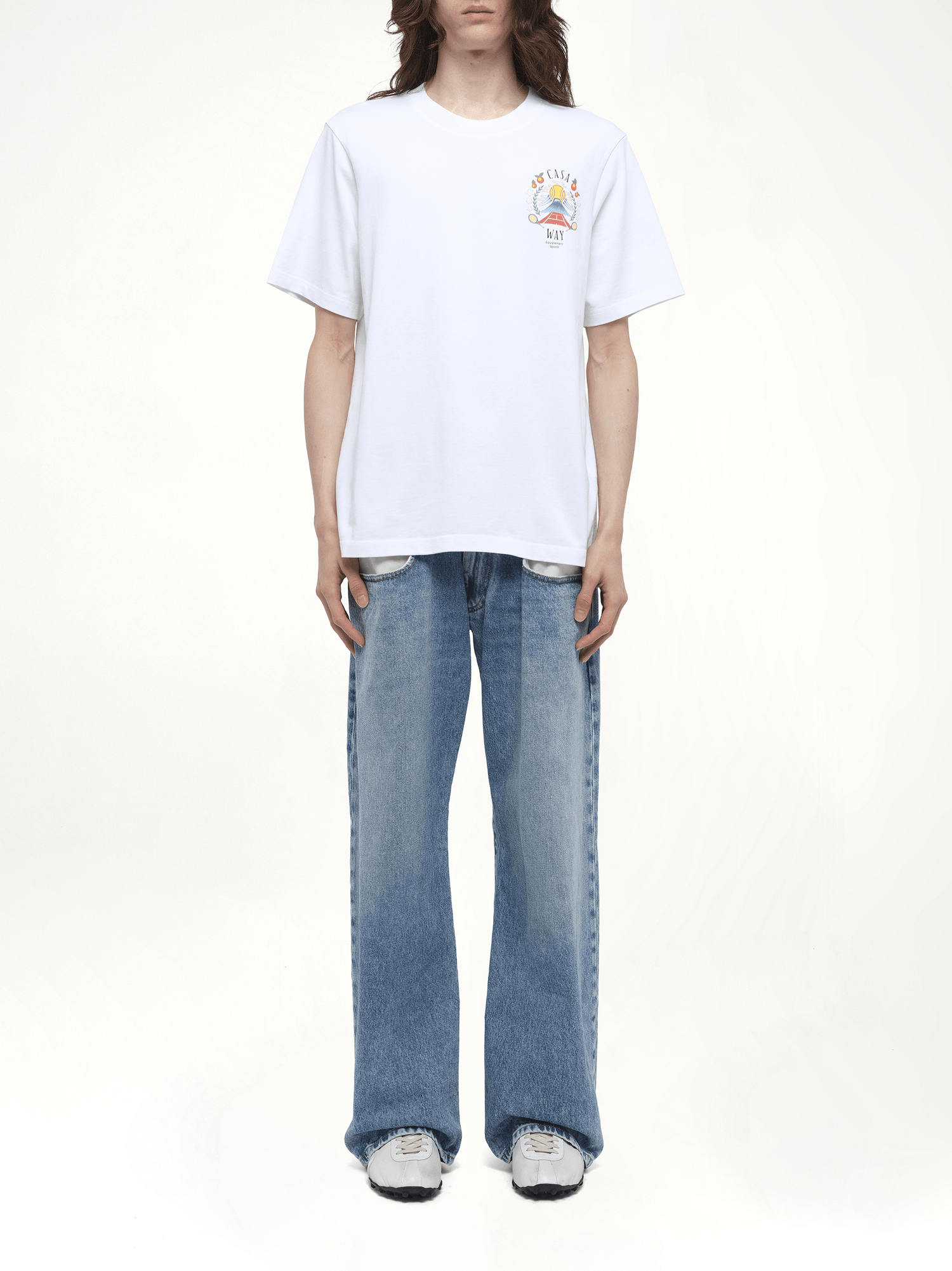 CASABLANCA's Casaway Mountain T-Shirt in White is a stylish and versatile piece that captures the essence of casual luxury. Perfect for any occasion, this t-shirt combines comfort with a modern aesthetic.