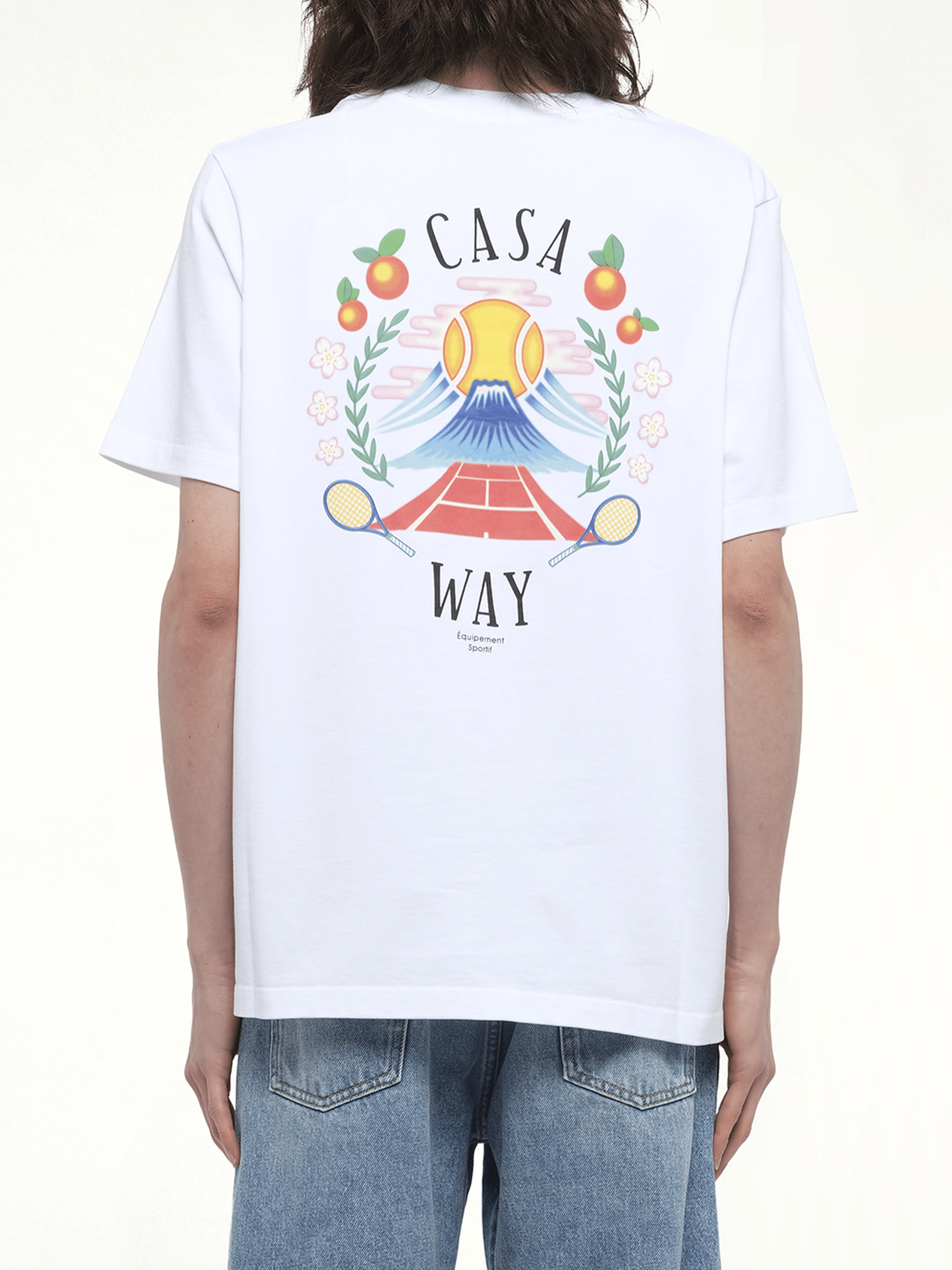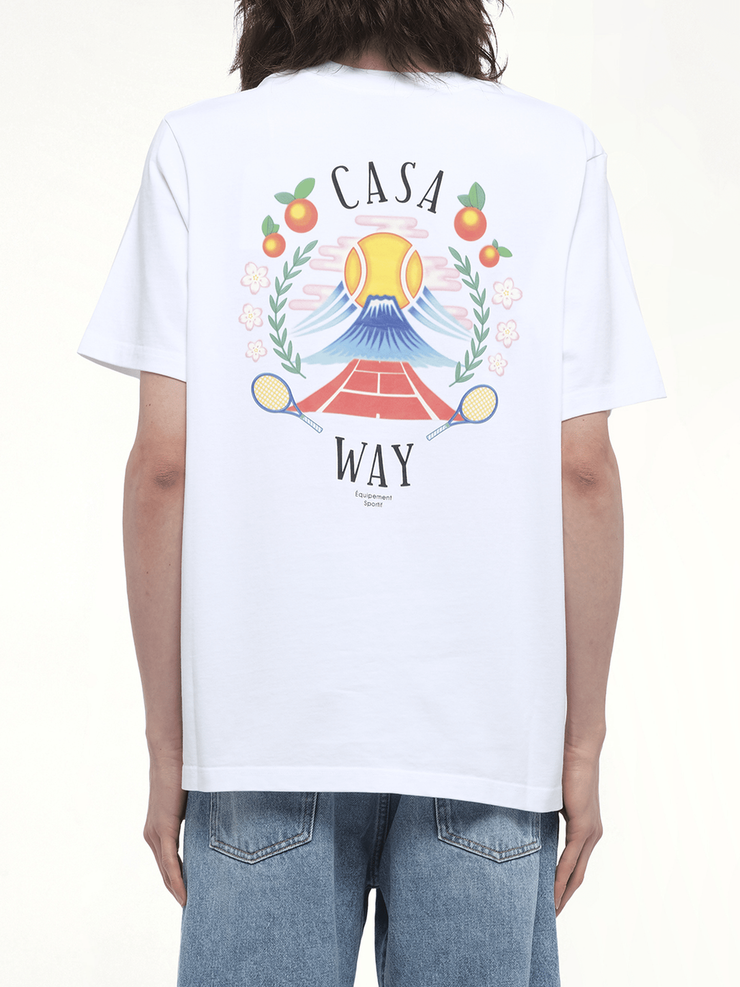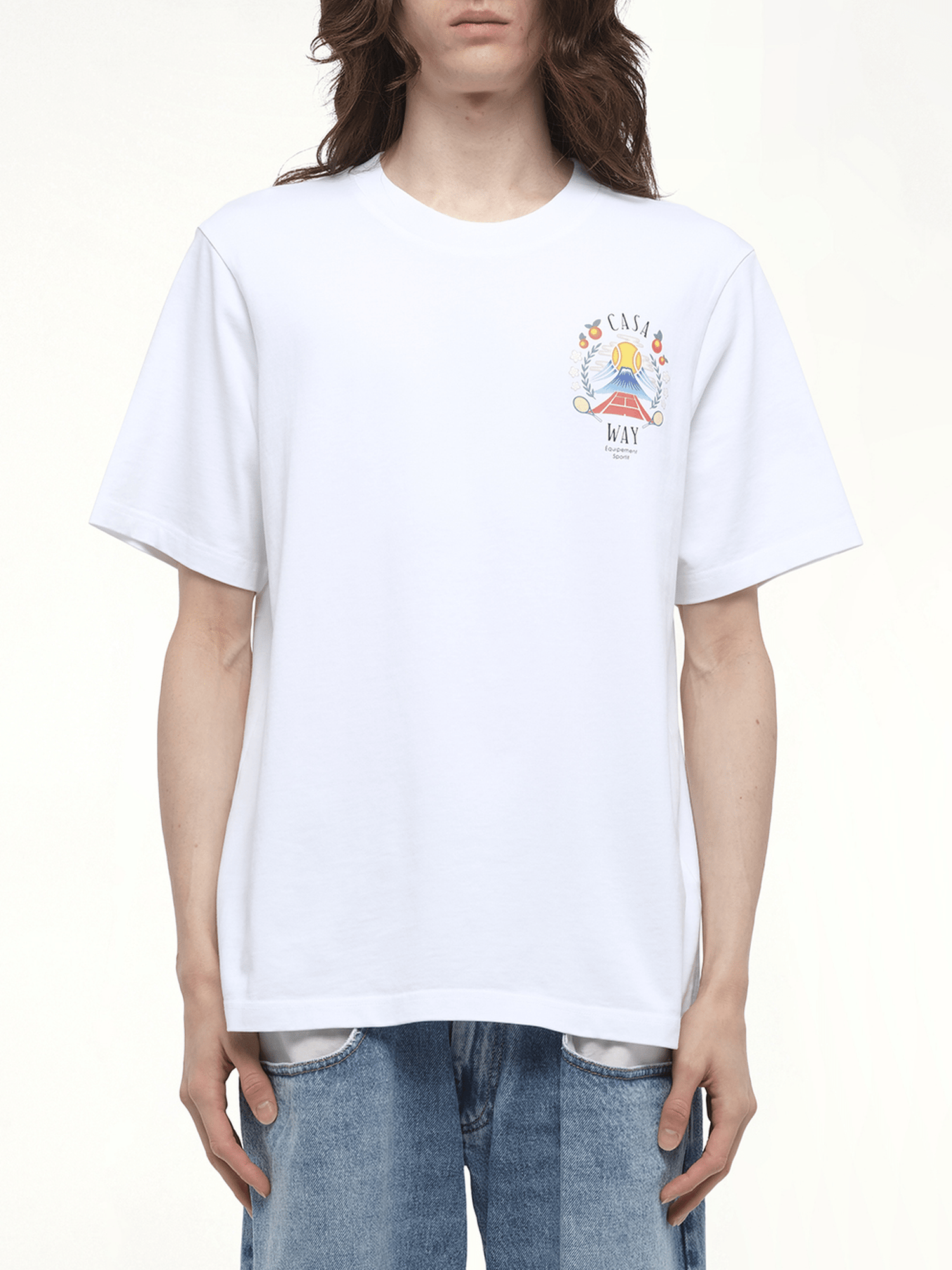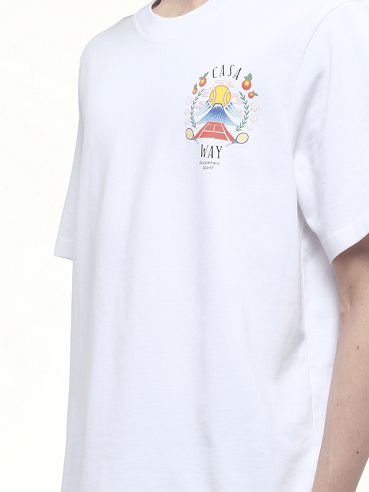 CASABLANCA's Casaway Mountain T-Shirt in White is a stylish and versatile piece that captures the essence of casual luxury. Perfect for any occasion, this t-shirt combines comfort with a modern aesthetic.