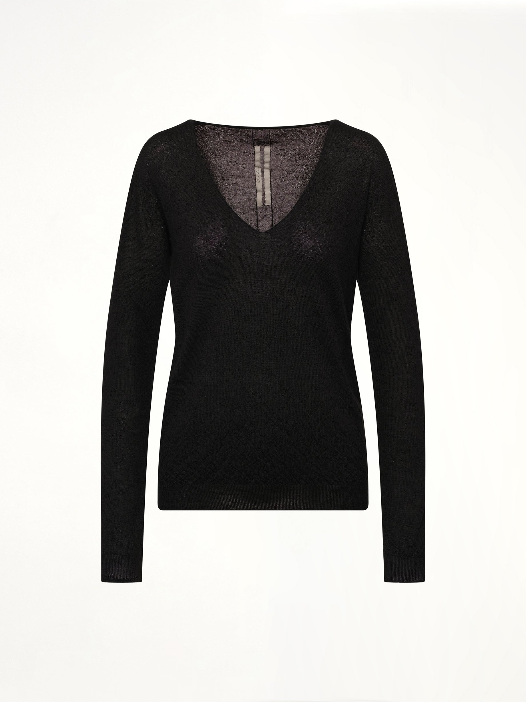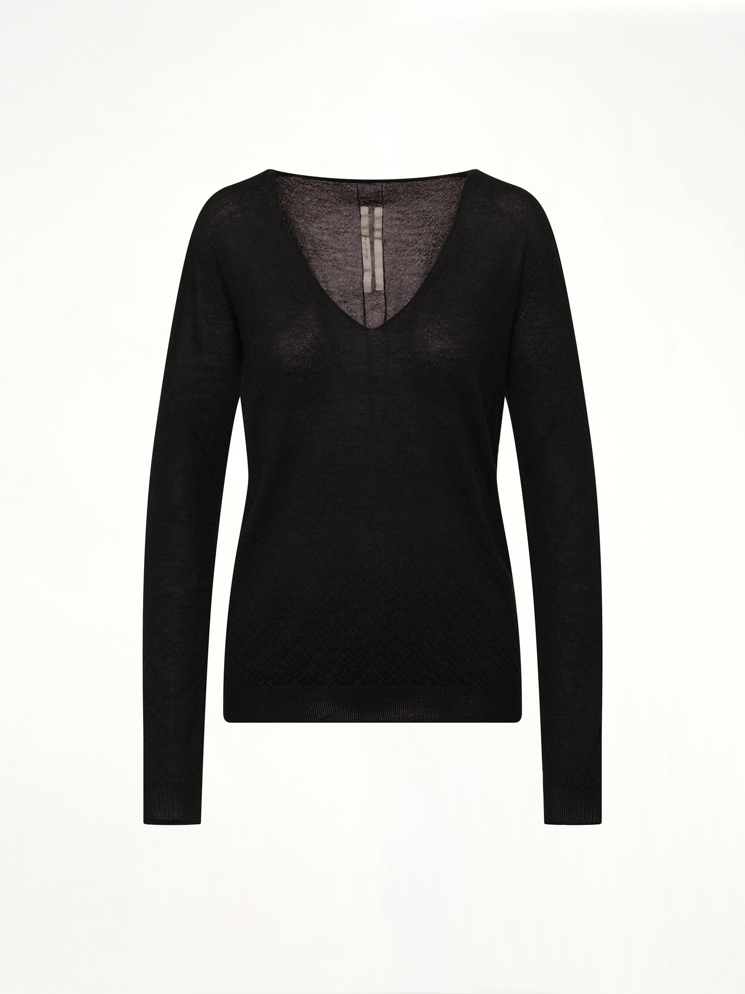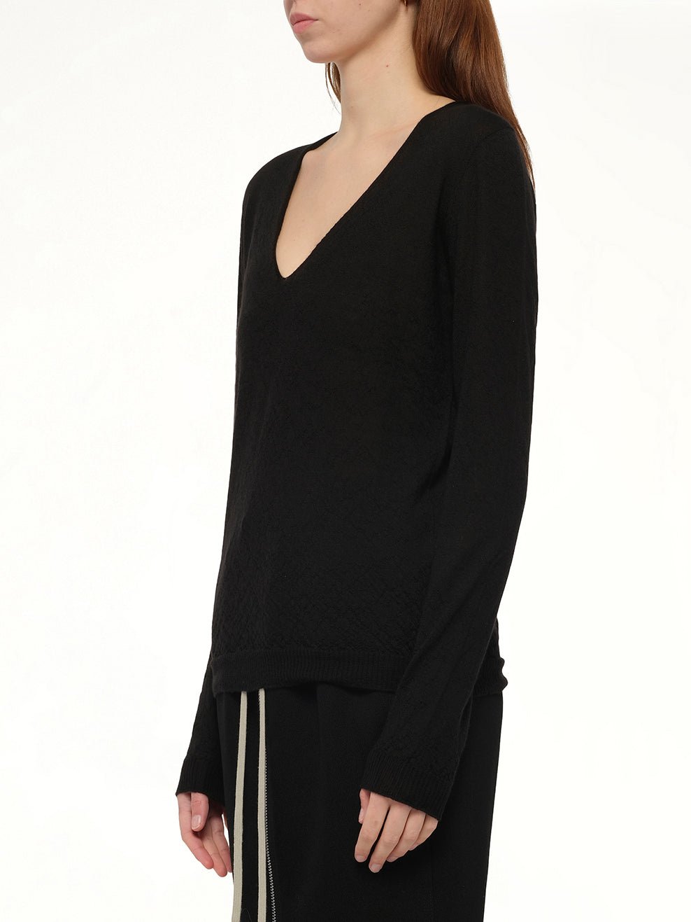 Rick Owens's Cashmere V-Neck Pull in Black is a luxurious and versatile addition to any wardrobe. Its minimalist design and premium craftsmanship make it a timeless piece for any occasion.