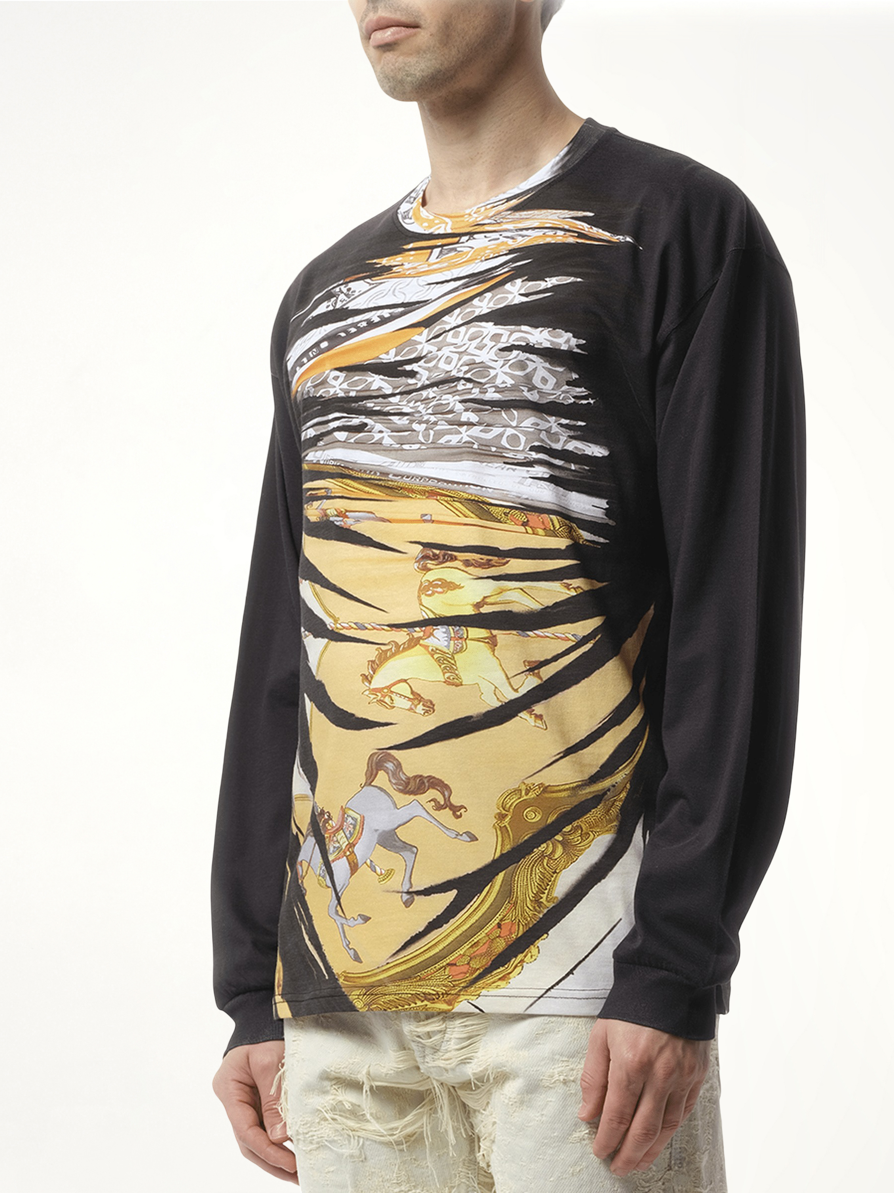 Collage Print Long Sleeve T-Shirt in Multicolour