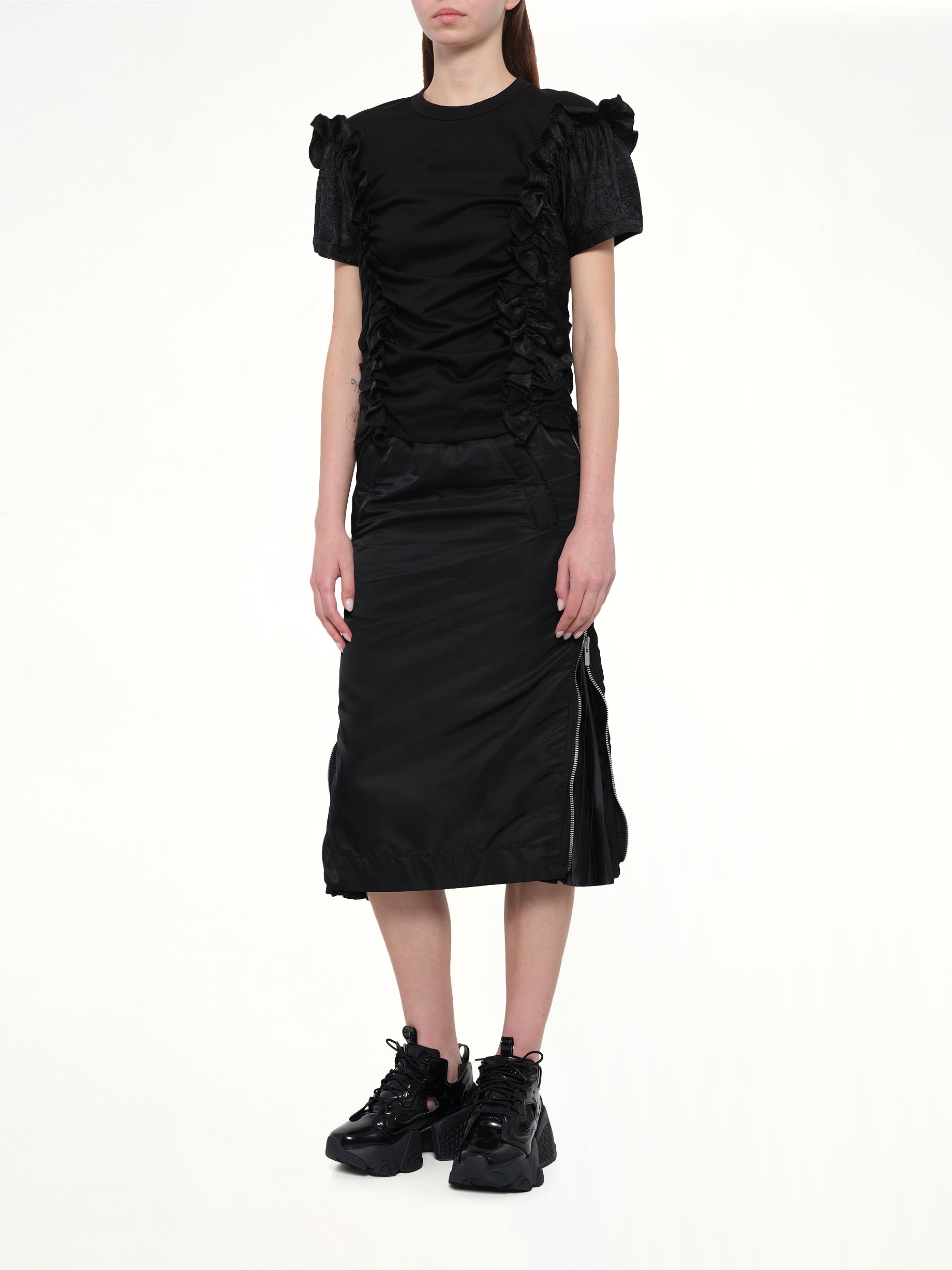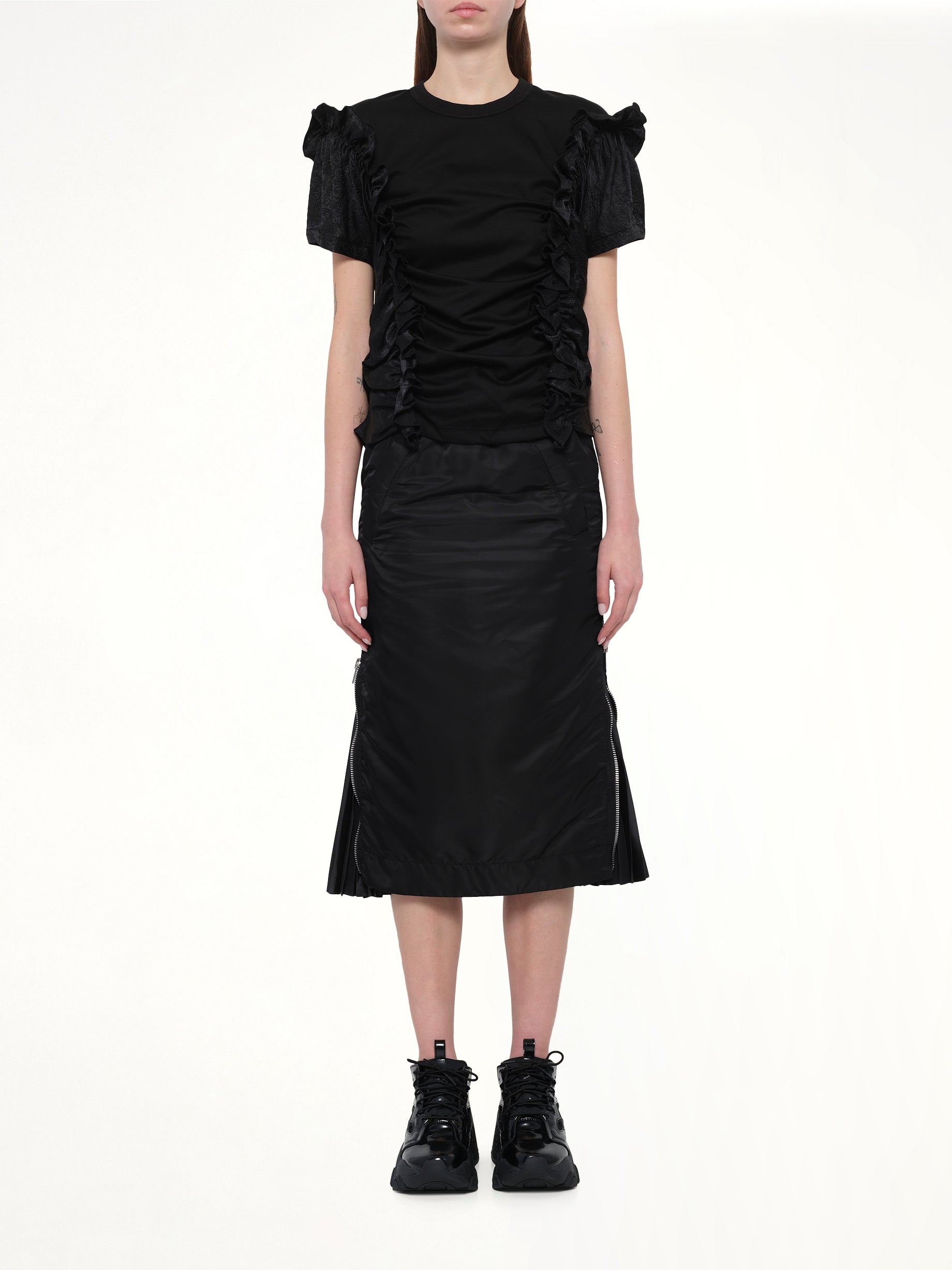 NOIR KEI NINOMIYA's Cotton Ponte T-Shirt in Black is a sophisticated blend of comfort and style. This versatile piece is perfect for both casual and formal settings, offering a sleek silhouette.