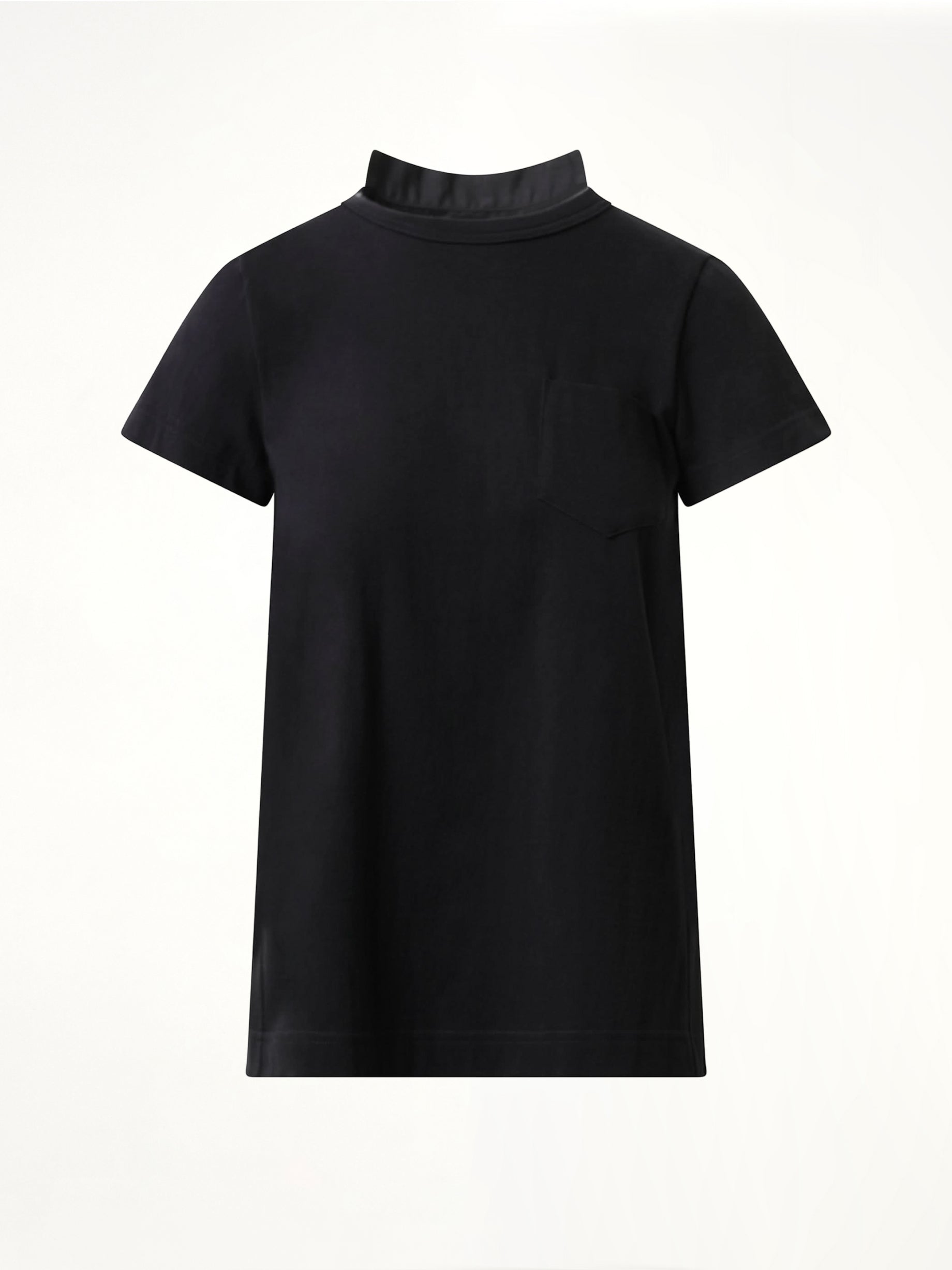 Made with a unique blend of cotton poplin and jersey fabric, this t-shirt offers both comfort and style. Perfect for any occasion, this versatile piece will elevate your look and keep you cool throughout the day.