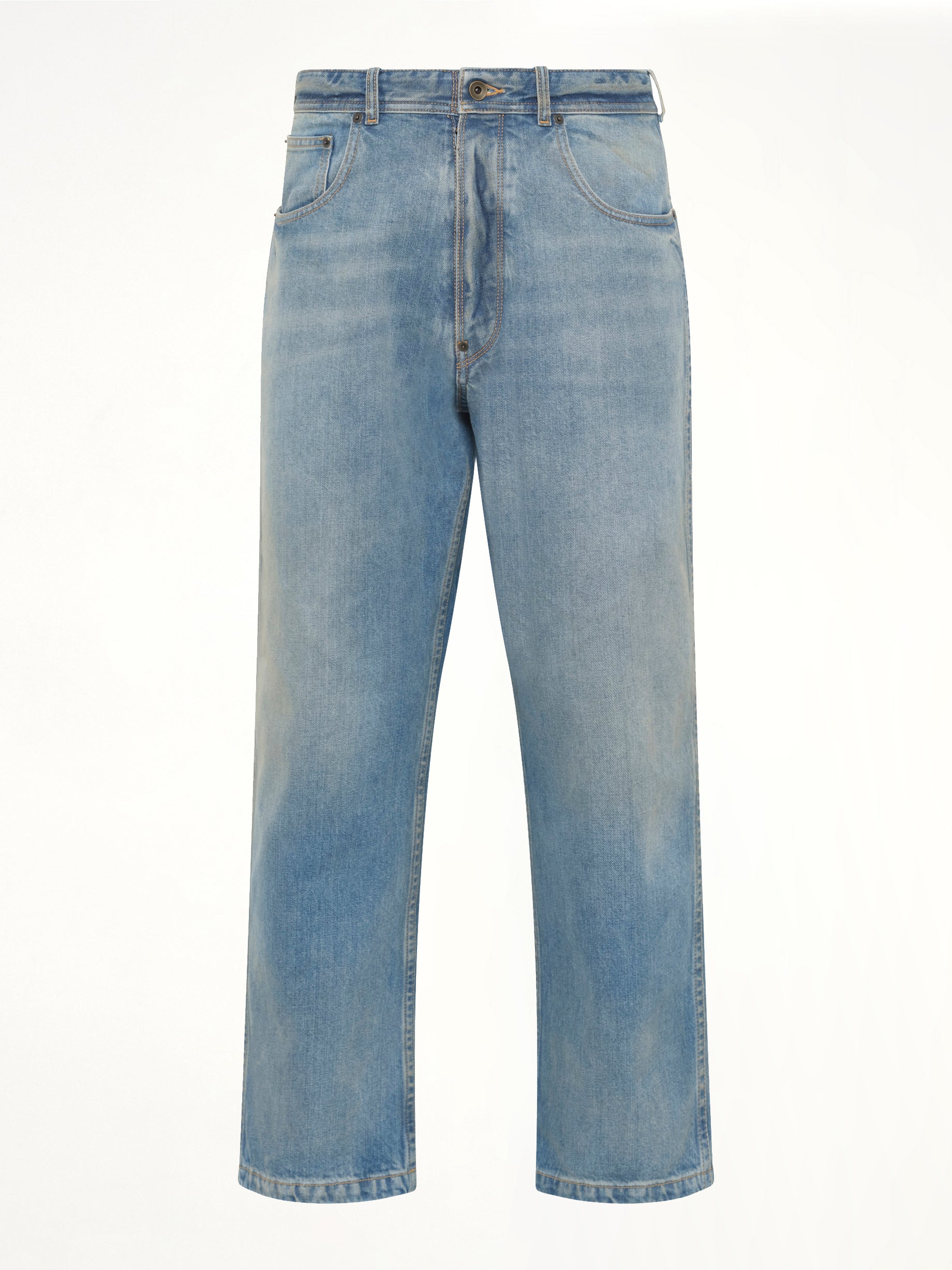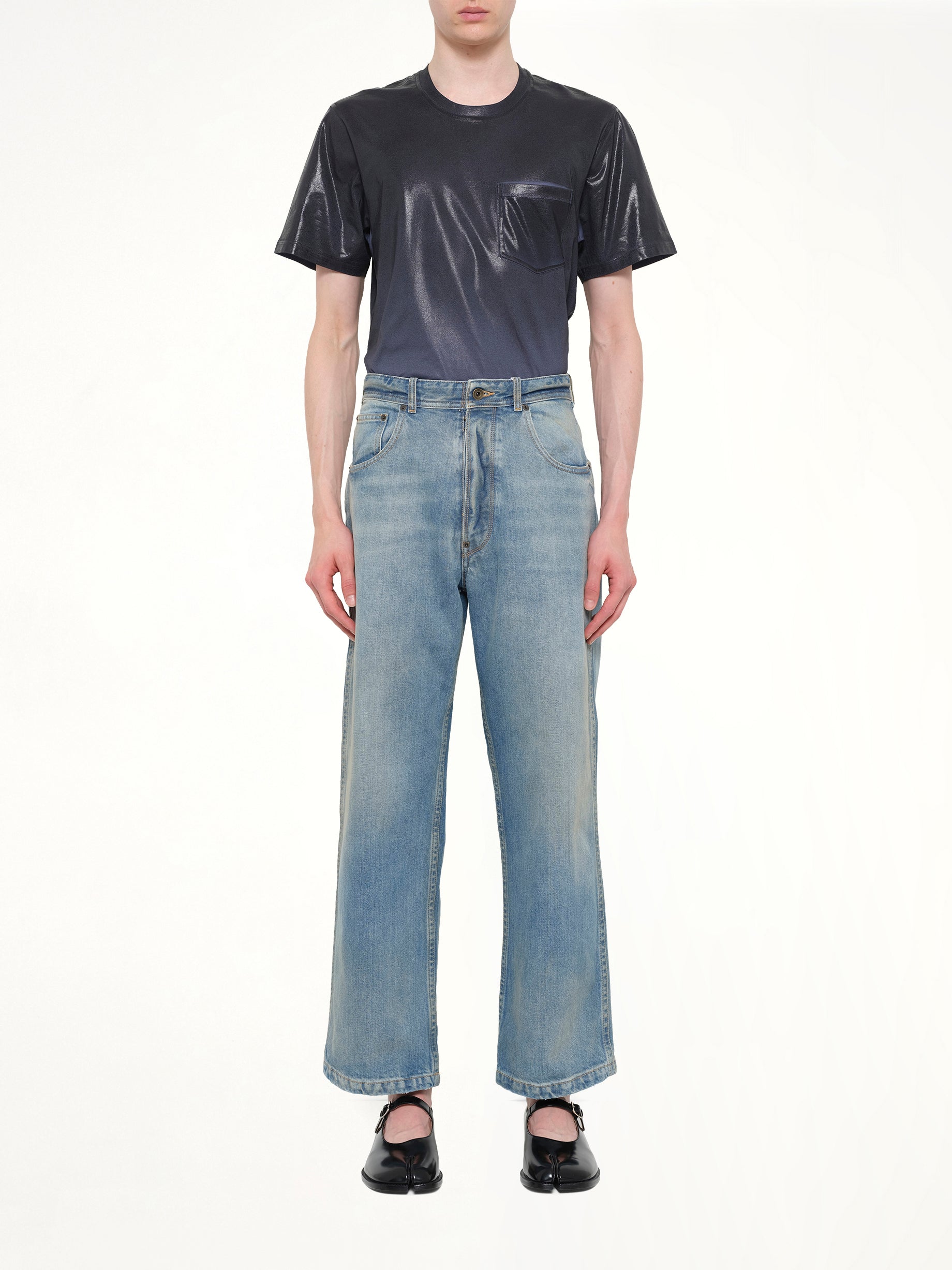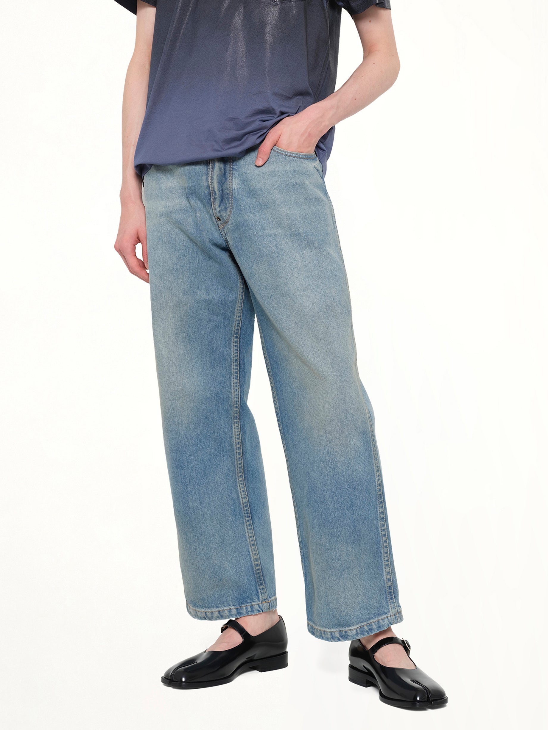 Maison Margiela's Cropped Denim Jeans in Washed Blue is a stylish addition to any wardrobe, offering a modern twist on a classic design. These jeans feature a unique cropped length that pairs well with both casual and dressy outfits.
