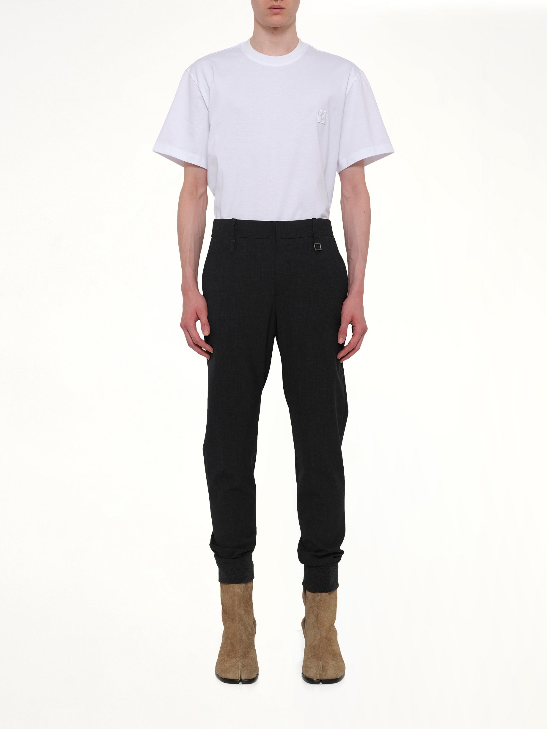 Wooyoungmi's Cuffed Trouser in Grey is a sophisticated addition to any wardrobe, offering a modern silhouette with a tailored fit. These trousers are designed for both comfort and style, making them perfect for various occasions.