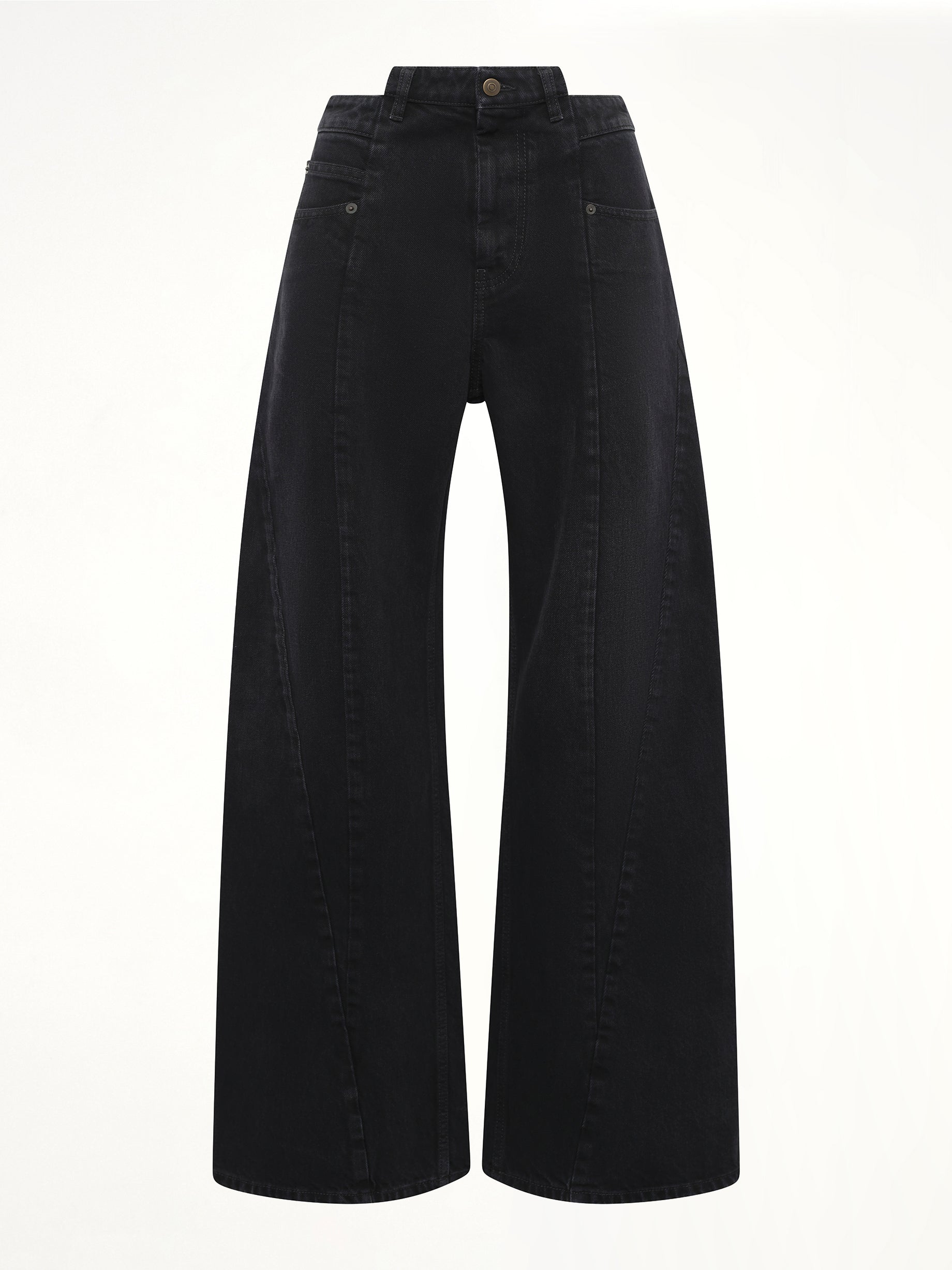Cut Out Waistband Relaxed Fit Denim Jeans in Washed Black