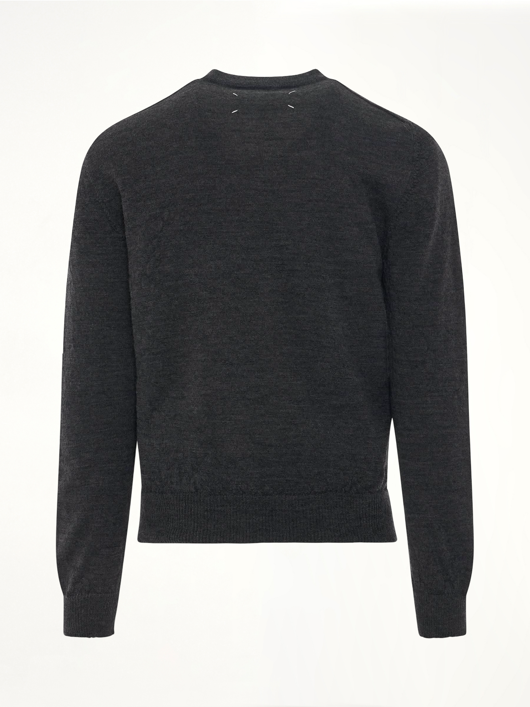 Long sleeves distressed wool jumper in dark grey with fine knit, ripped detailing, ruched detailing and crew neck