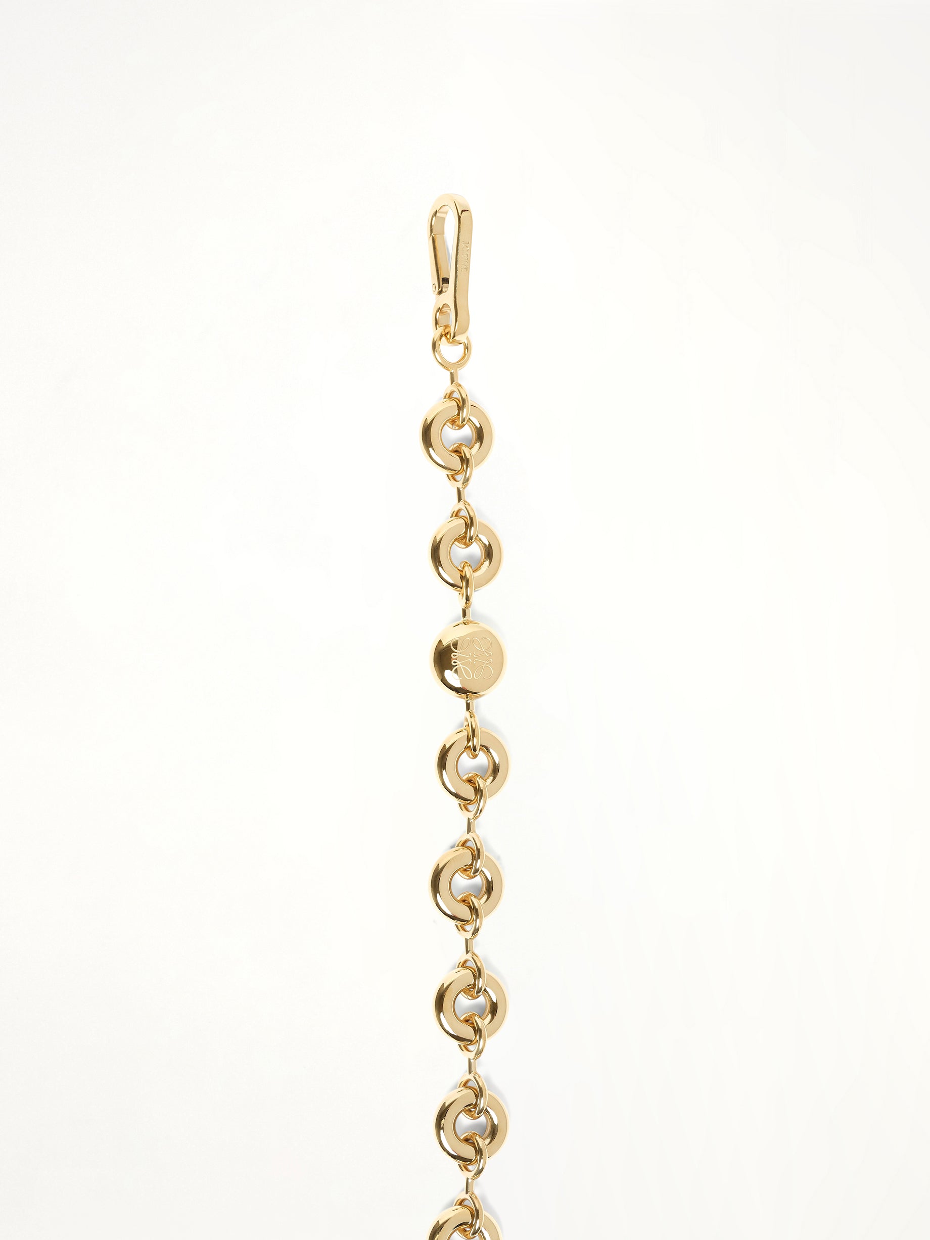 Loewe's Donut Chain in Gold is a striking accessory that adds a touch of elegance to any ensemble. Its unique design and luxurious finish make it a standout piece for fashion enthusiasts.