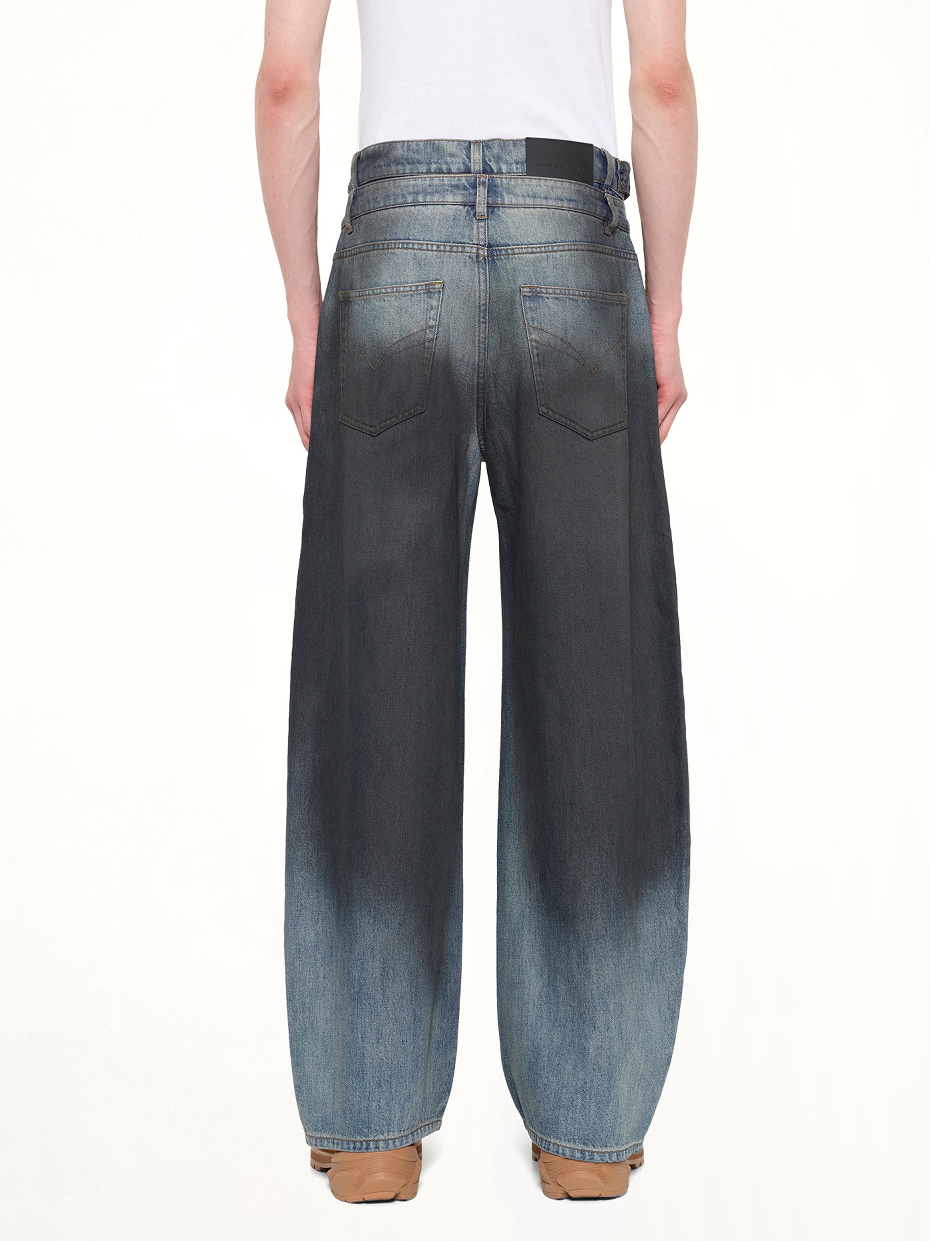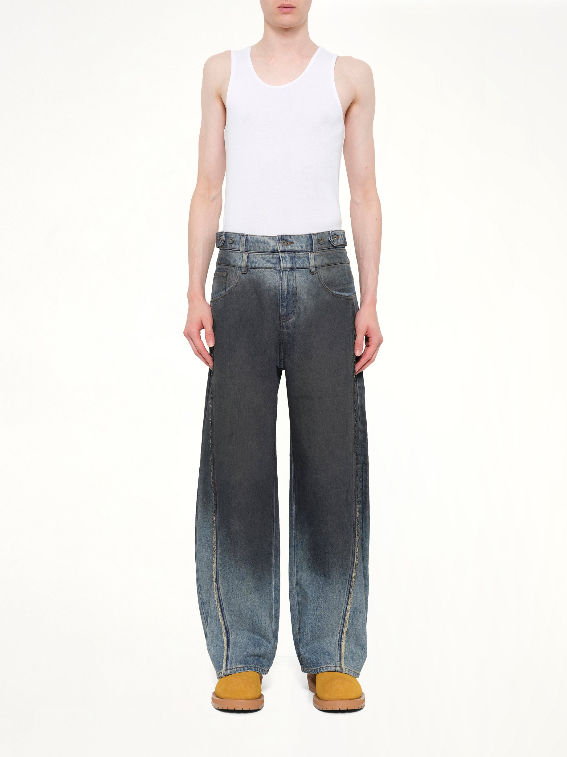 Double Waist Gradient Denim Trousers in Blue/Black