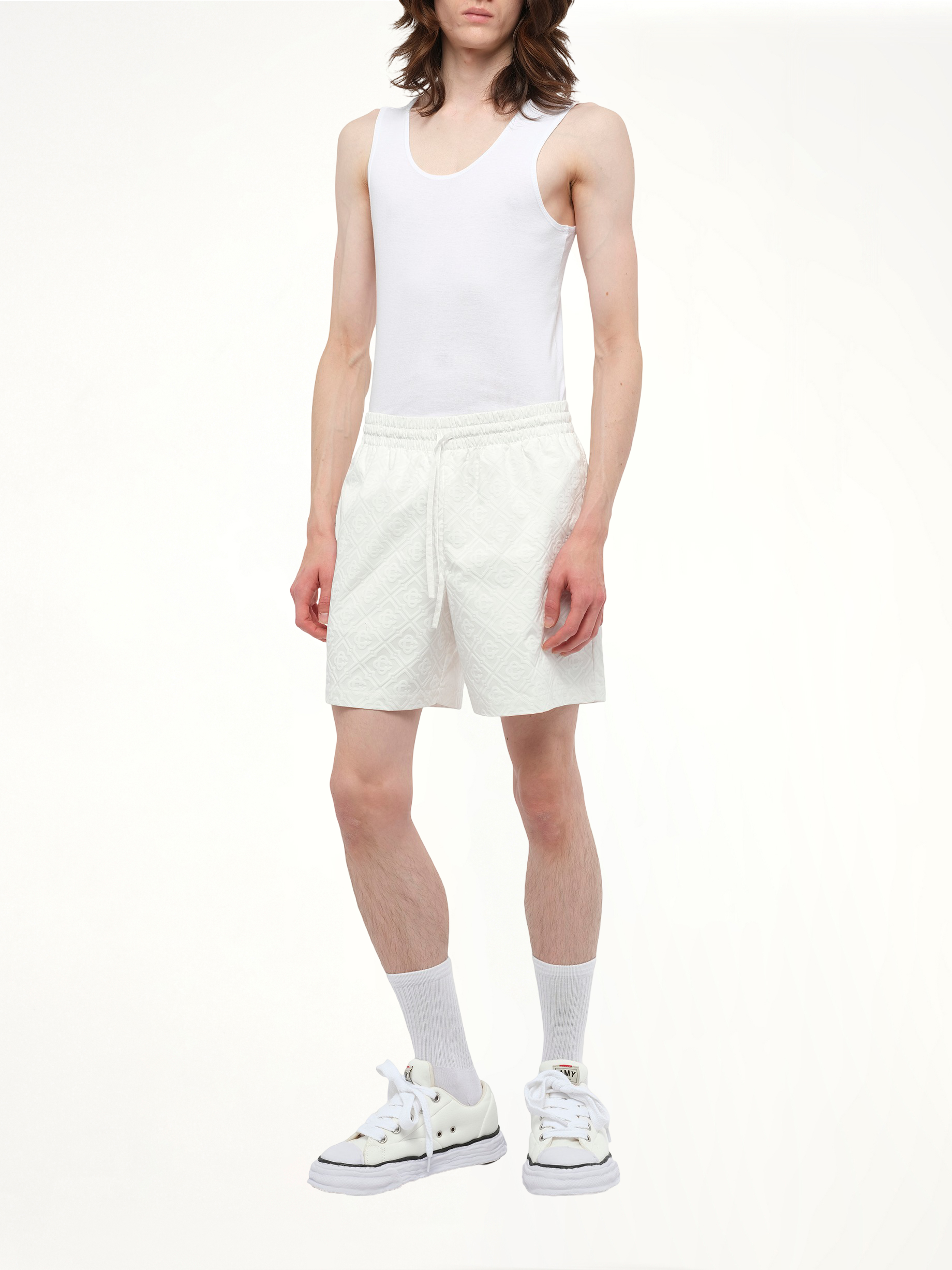 Casablanca's Drawstring Shorts in White offer a clean, effortless silhouette ideal for warm-weather dressing. The lightweight fabric and elasticated waistband provide all-day comfort with understated style.