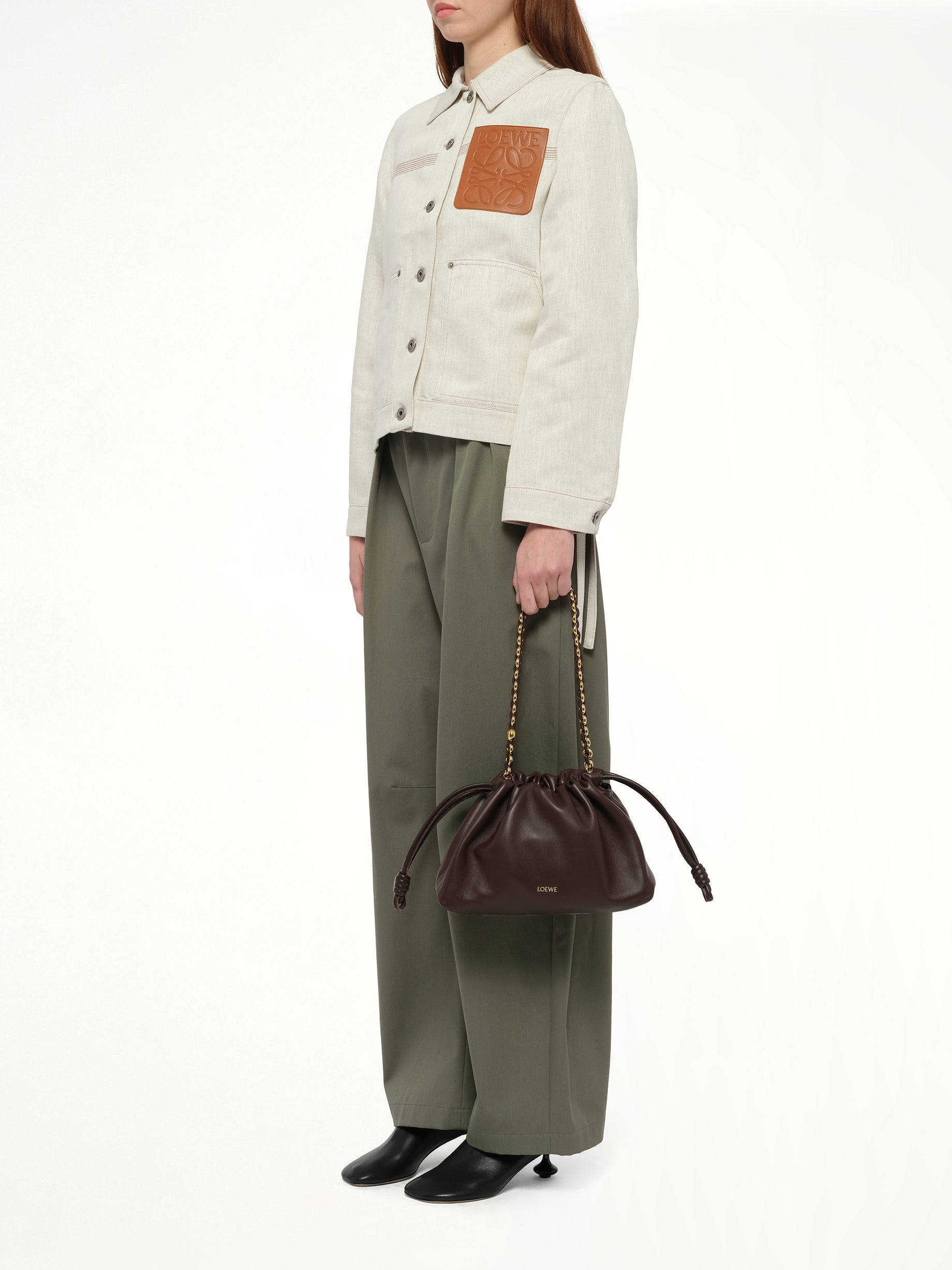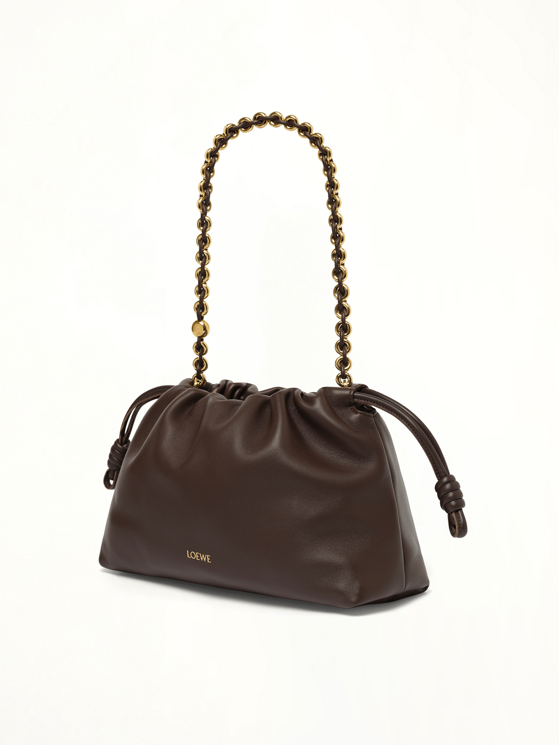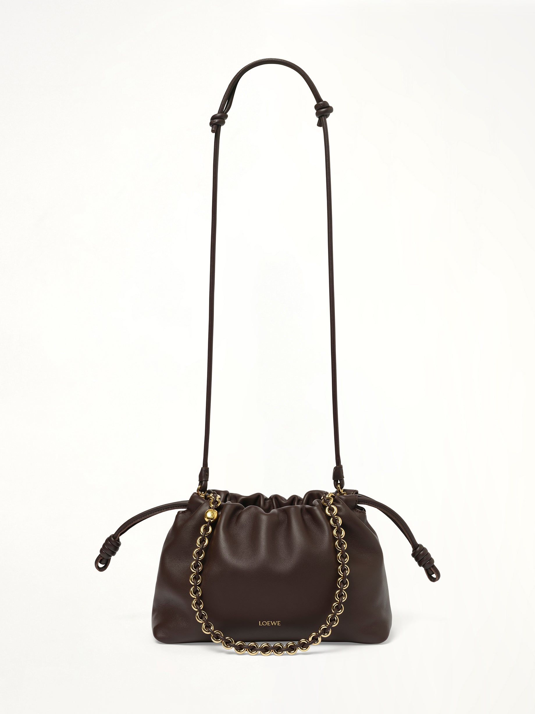 LOEWE's Flamenco Purse Medium in Dark Brownie is a sophisticated accessory that combines timeless elegance with modern functionality. Perfect for any occasion, this purse is a testament to LOEWE's commitment to quality and style.