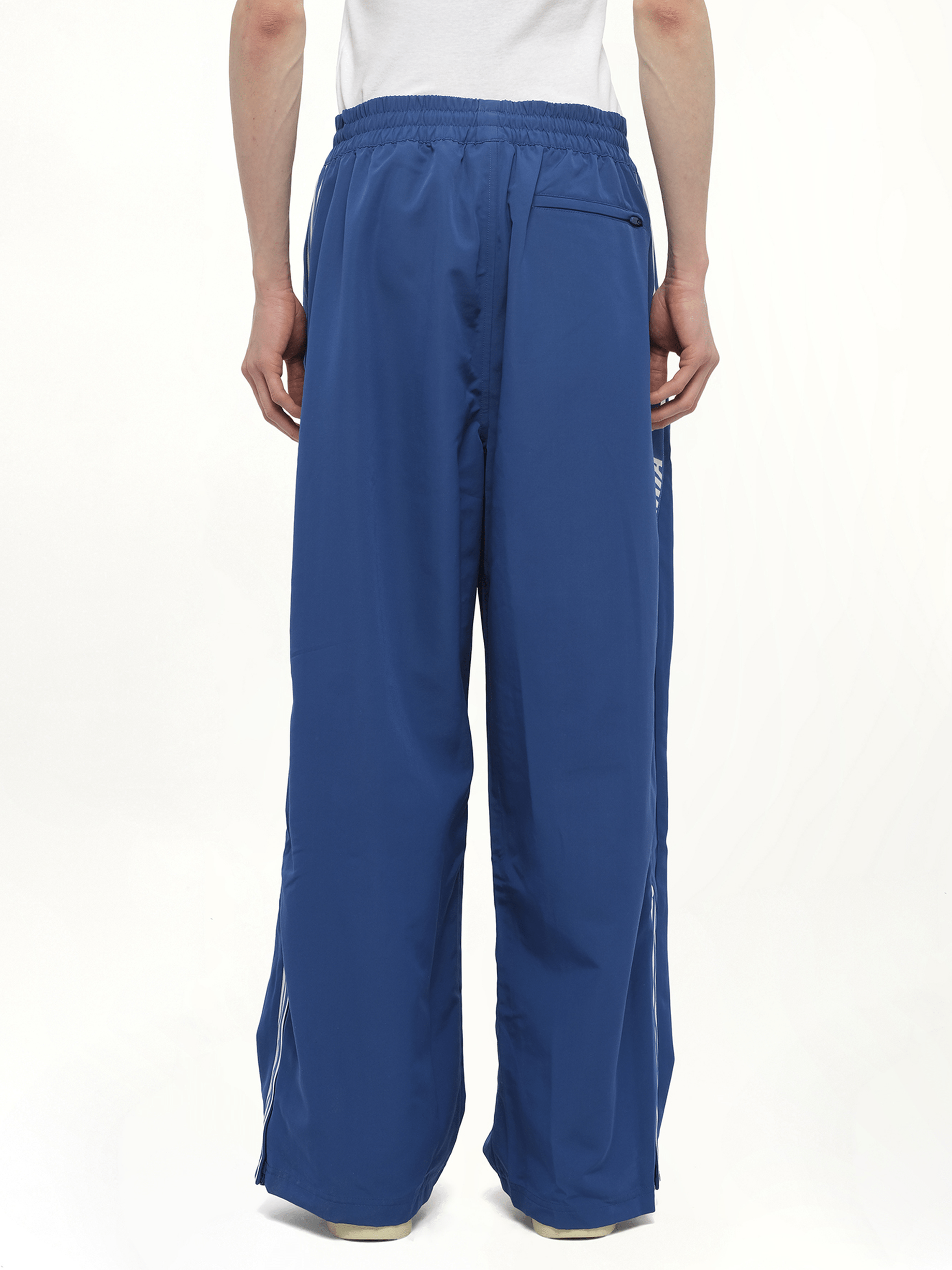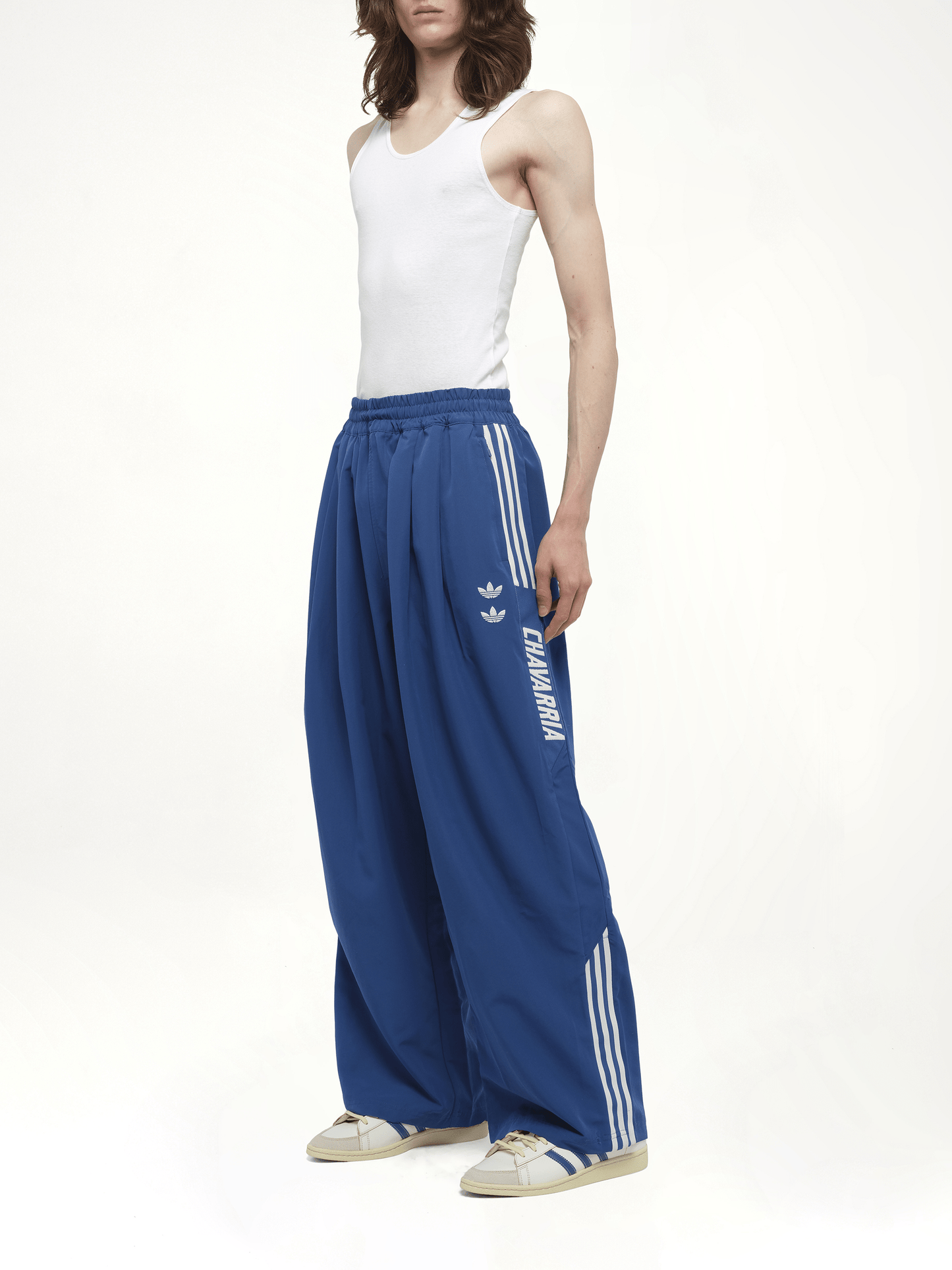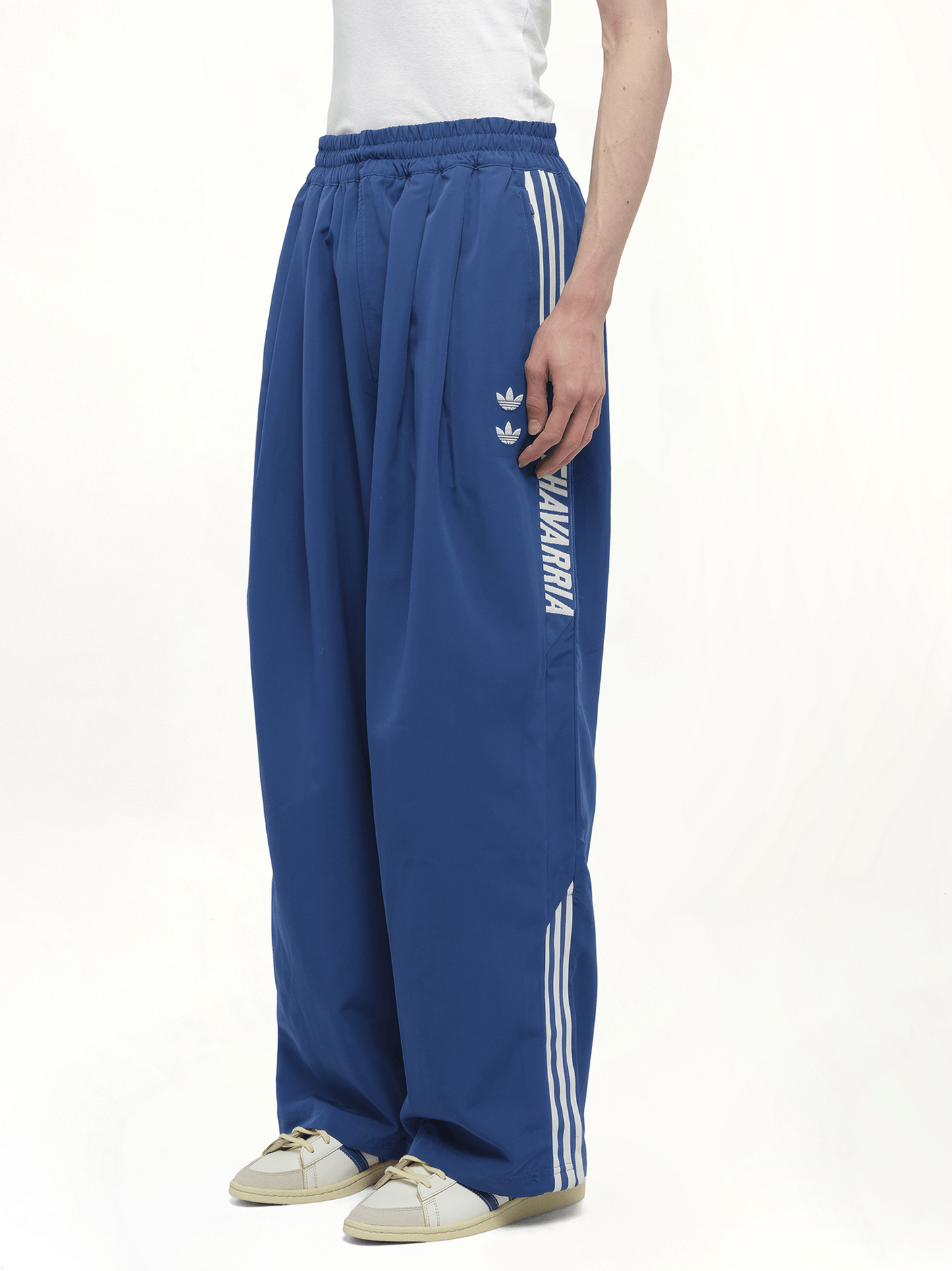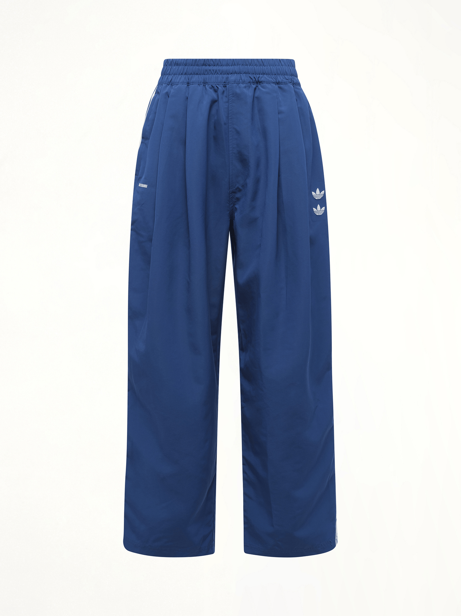 The Adidas x Willy Chavarria Track Pants in Dark Marine are a standout piece from the collaboration between Adidas Originals and the designer Willy Chavarria. These pants blend Chavarria's signature elevated streetwear aesthetic with Adidas' classic sportswear elements.