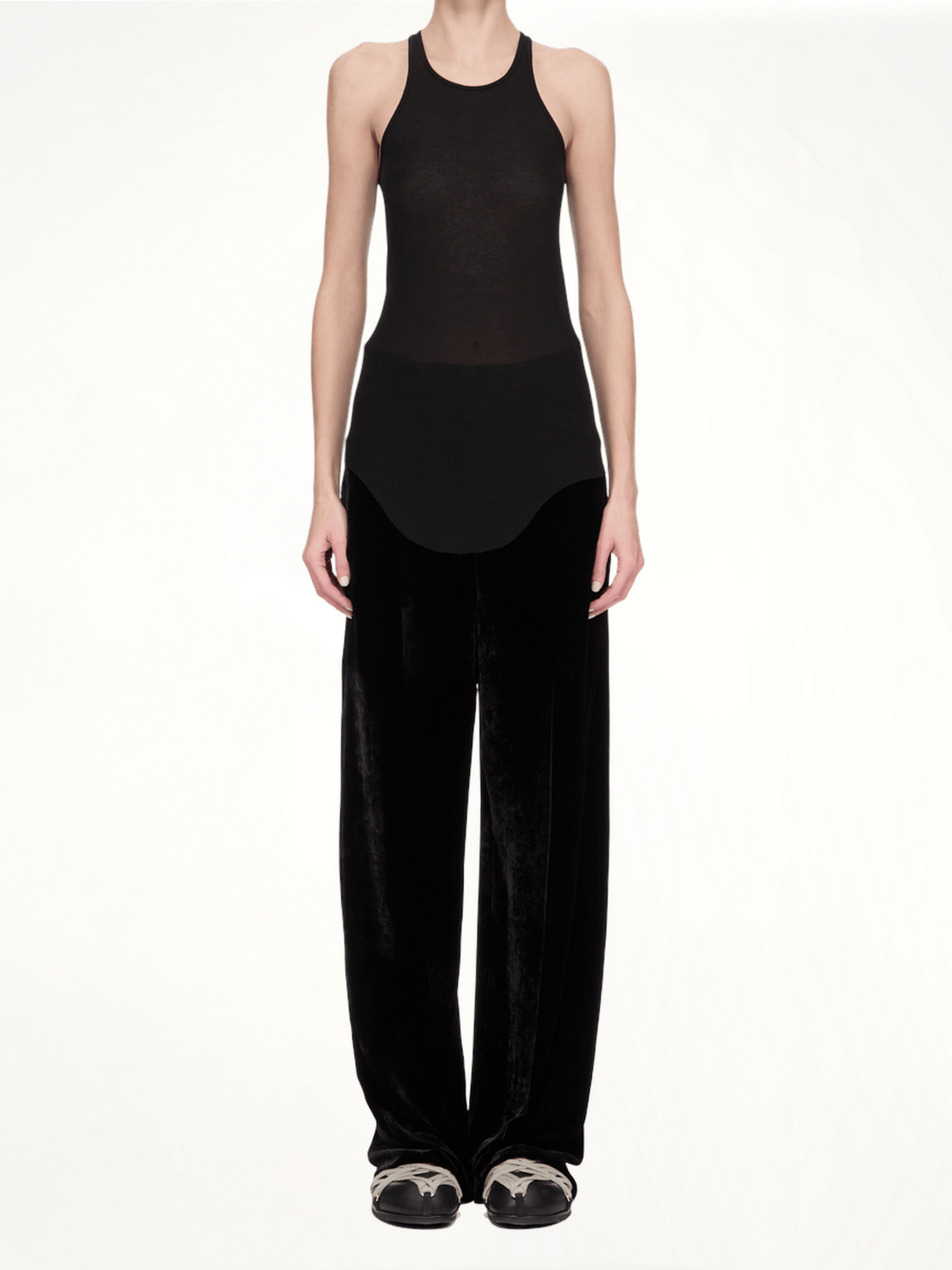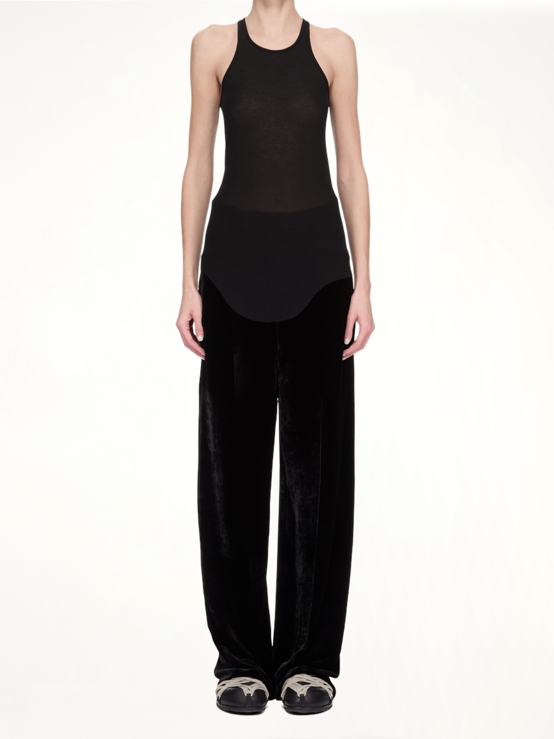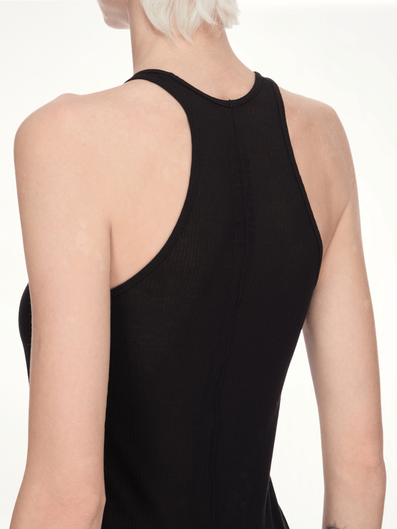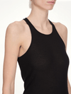 Rick Owens's Basic Rib Tank in Black is a versatile and essential piece for any wardrobe. Its minimalist design and comfortable fit make it perfect for layering or wearing on its own.