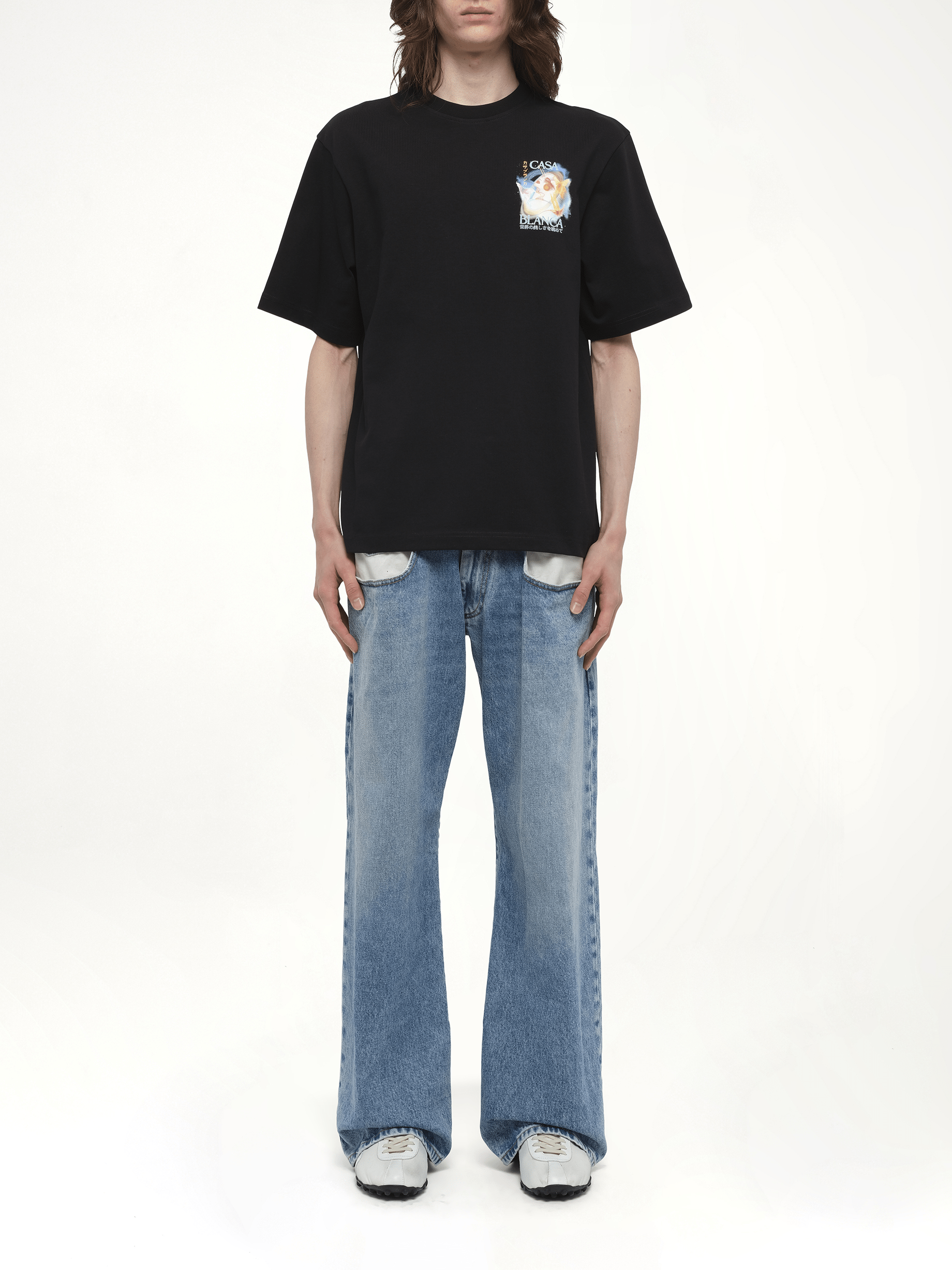 CASABLANCA's Galactic Connection T-Shirt in Black is a stylish and modern piece that effortlessly combines comfort with a cosmic aesthetic. Perfect for those who want to make a statement, this t-shirt is a must-have for any fashion-forward wardrobe.