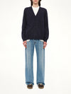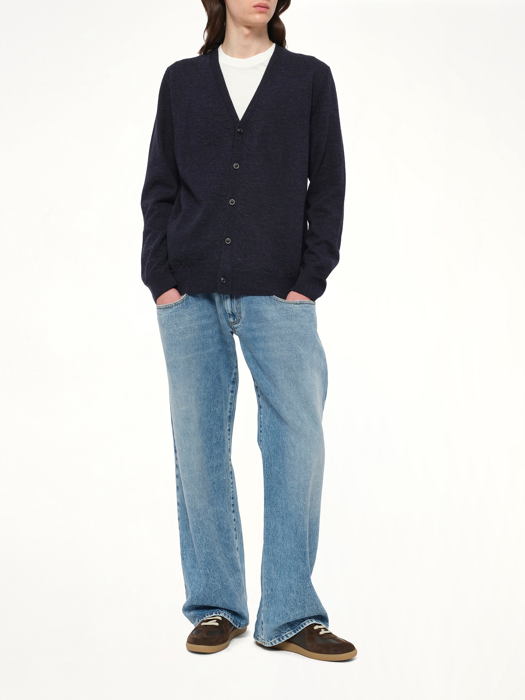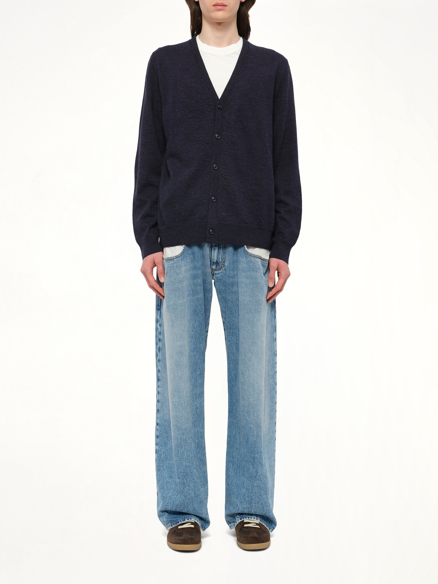 Maison Margiela's Gauge 12 Elbow Patch Cardigan in Navy is a sophisticated addition to any wardrobe, offering both style and comfort. This cardigan features a classic design with modern details, making it a versatile piece for various occasions.